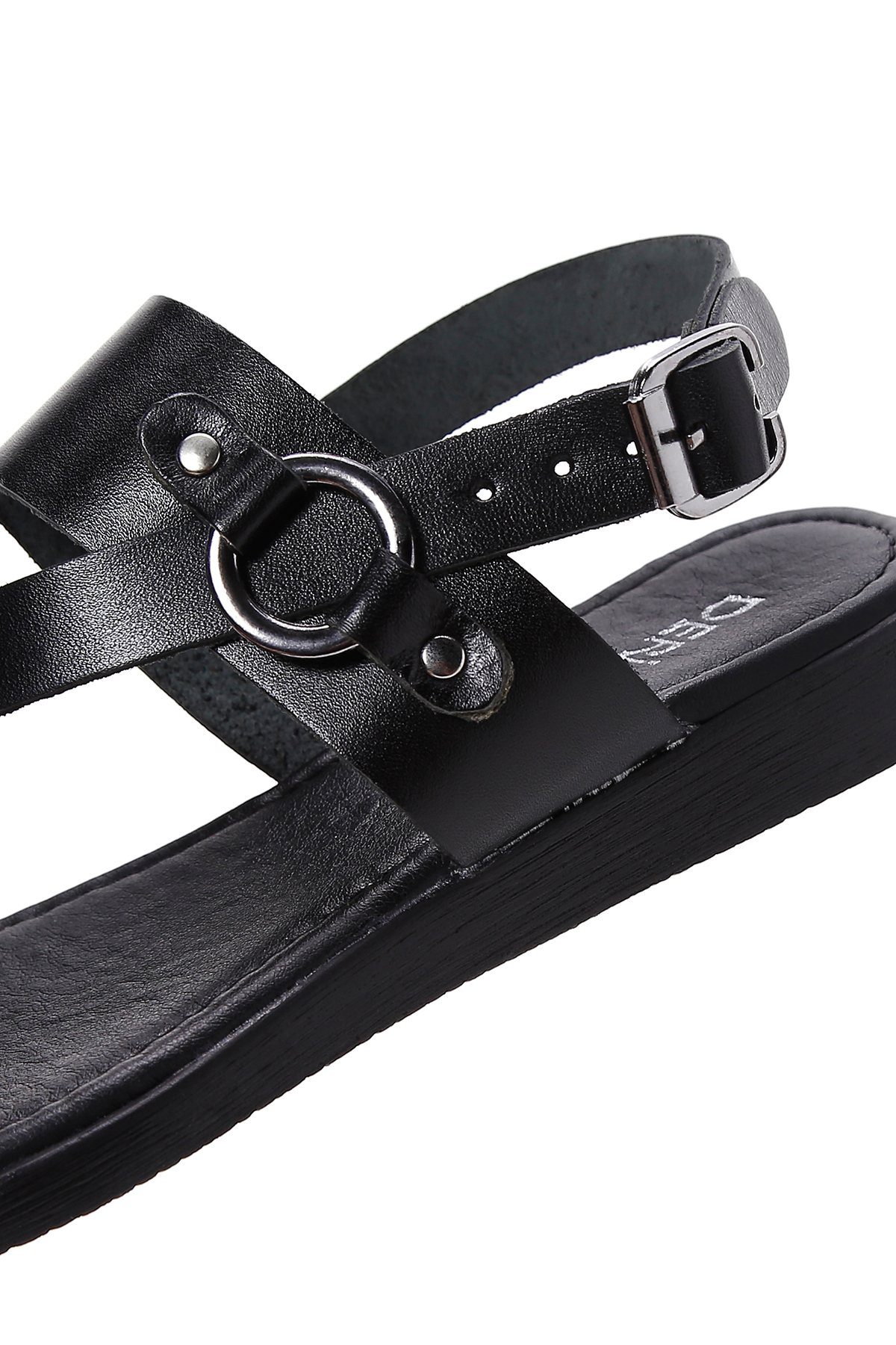 - نام : Kadın Siyah Bilekten Bantlı Deri Bodrum Sandaleti