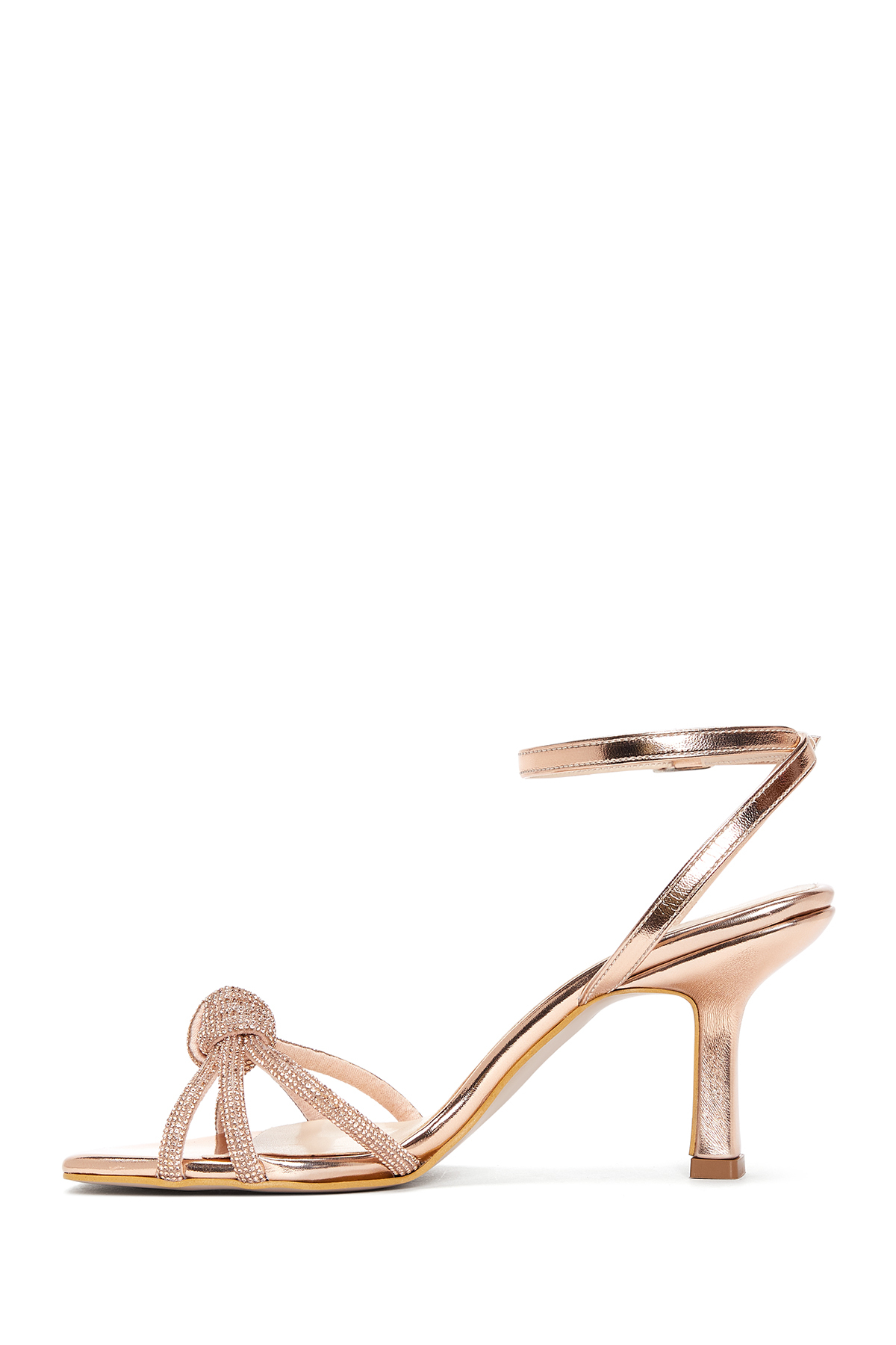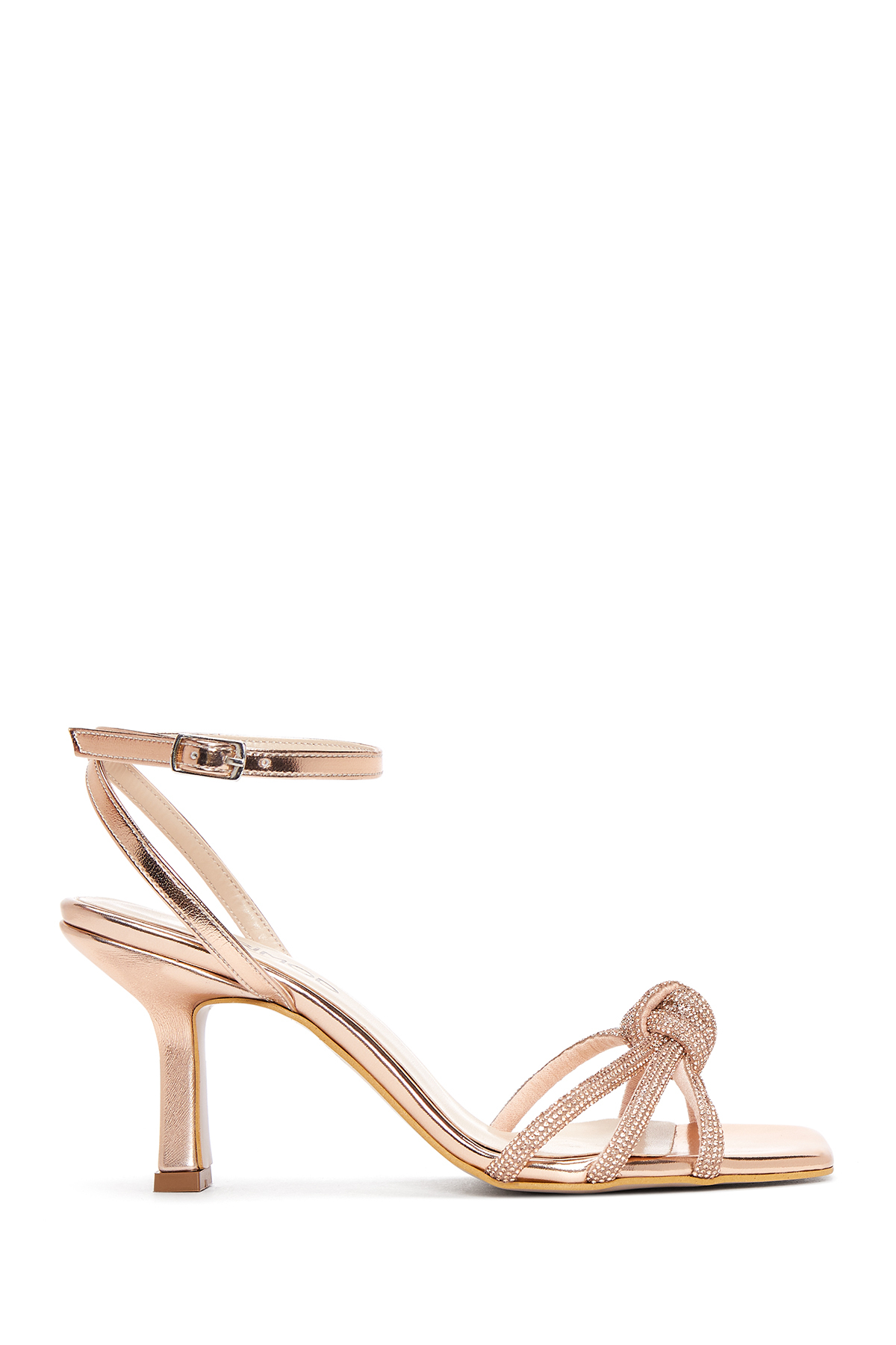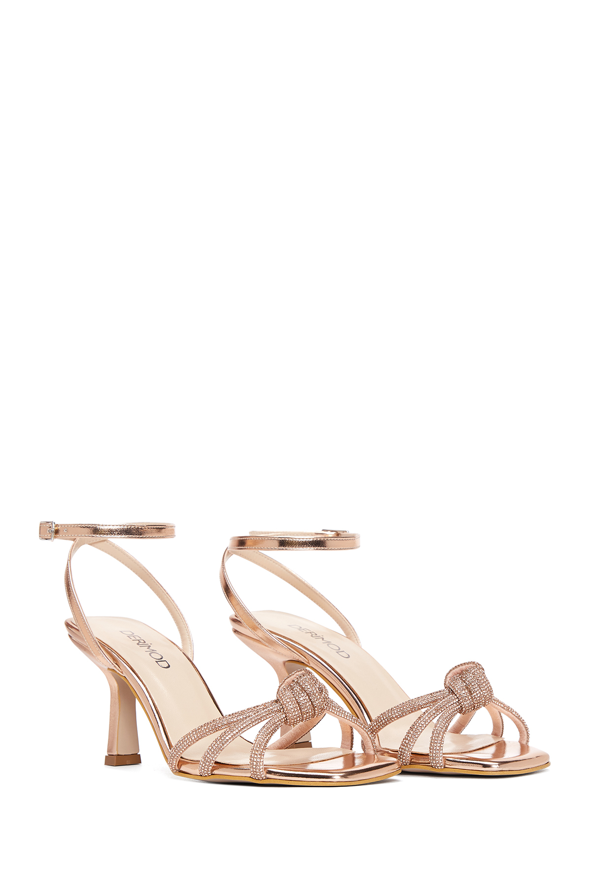 Kadın Pembe Bilekten Bantlı Taşlı Topuklu Sandalet