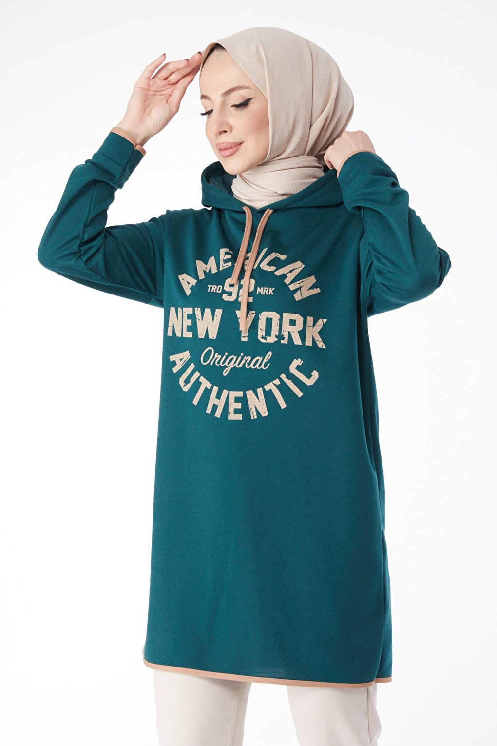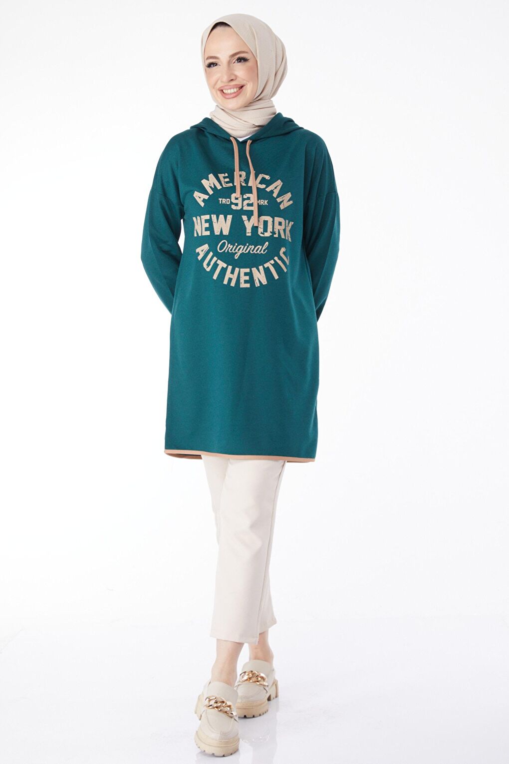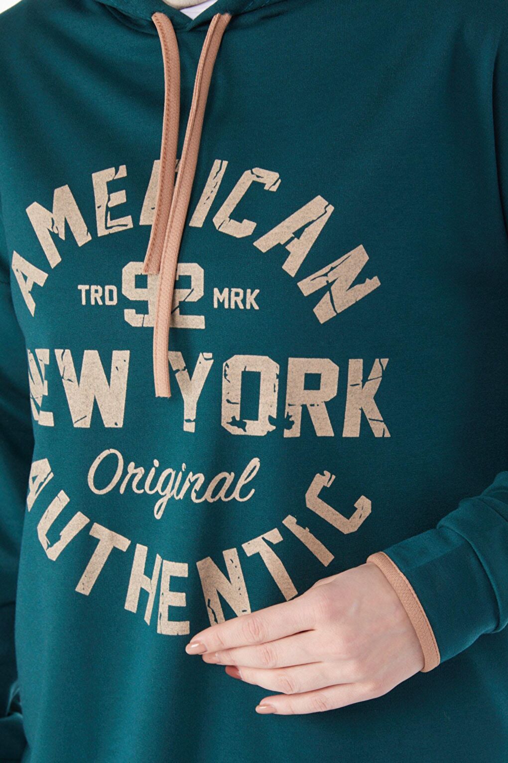 - نام : Düz Kapşonlu Yaka Kadın Yeşil Önü Baskılı Sweatshirt - 13130
