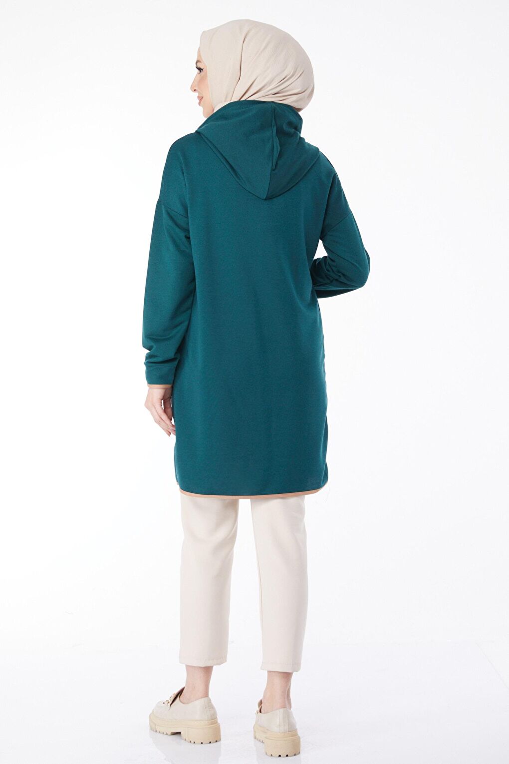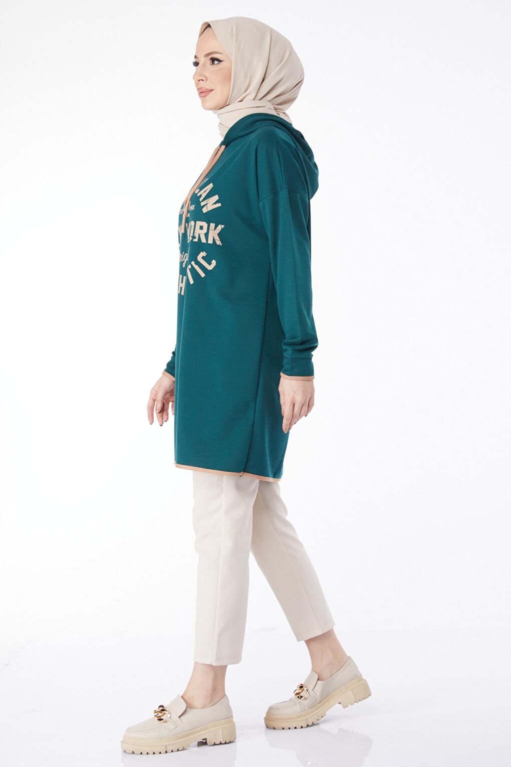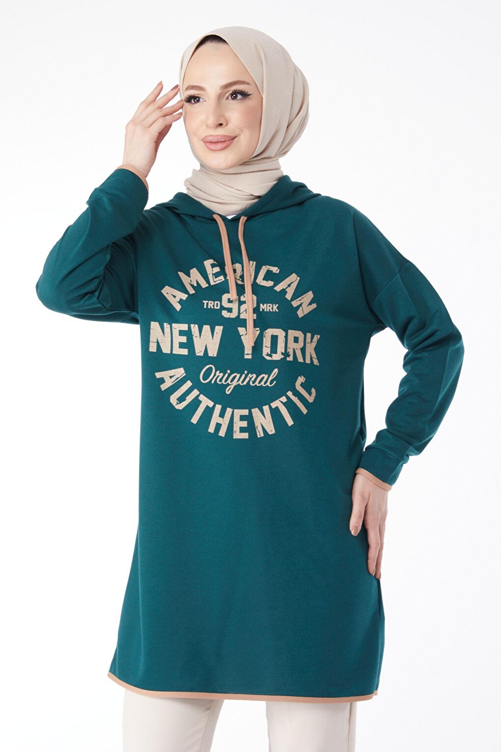 - نام : Düz Kapşonlu Yaka Kadın Yeşil Önü Baskılı Sweatshirt - 13130