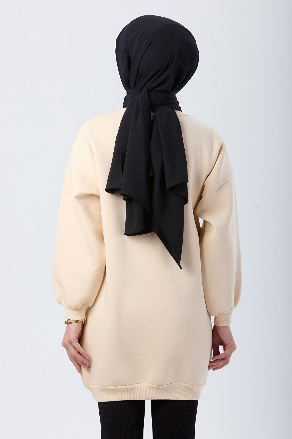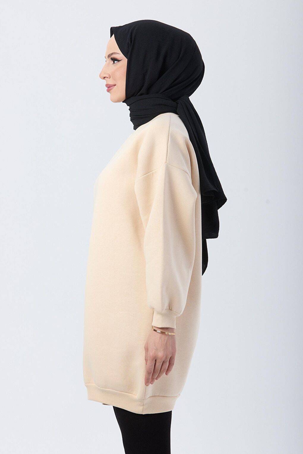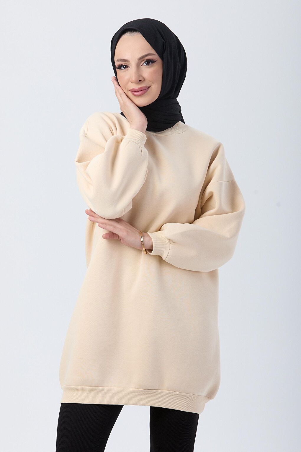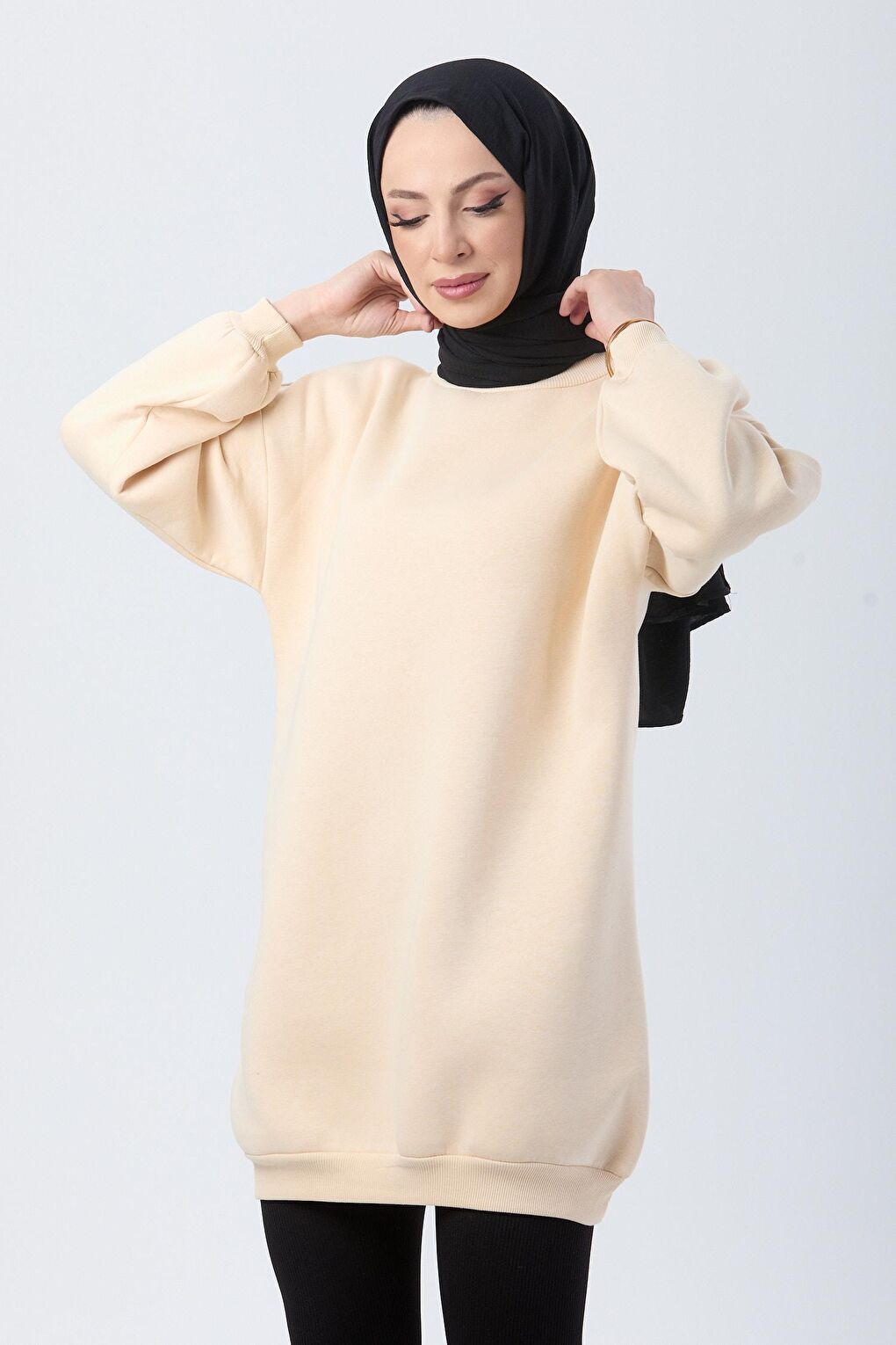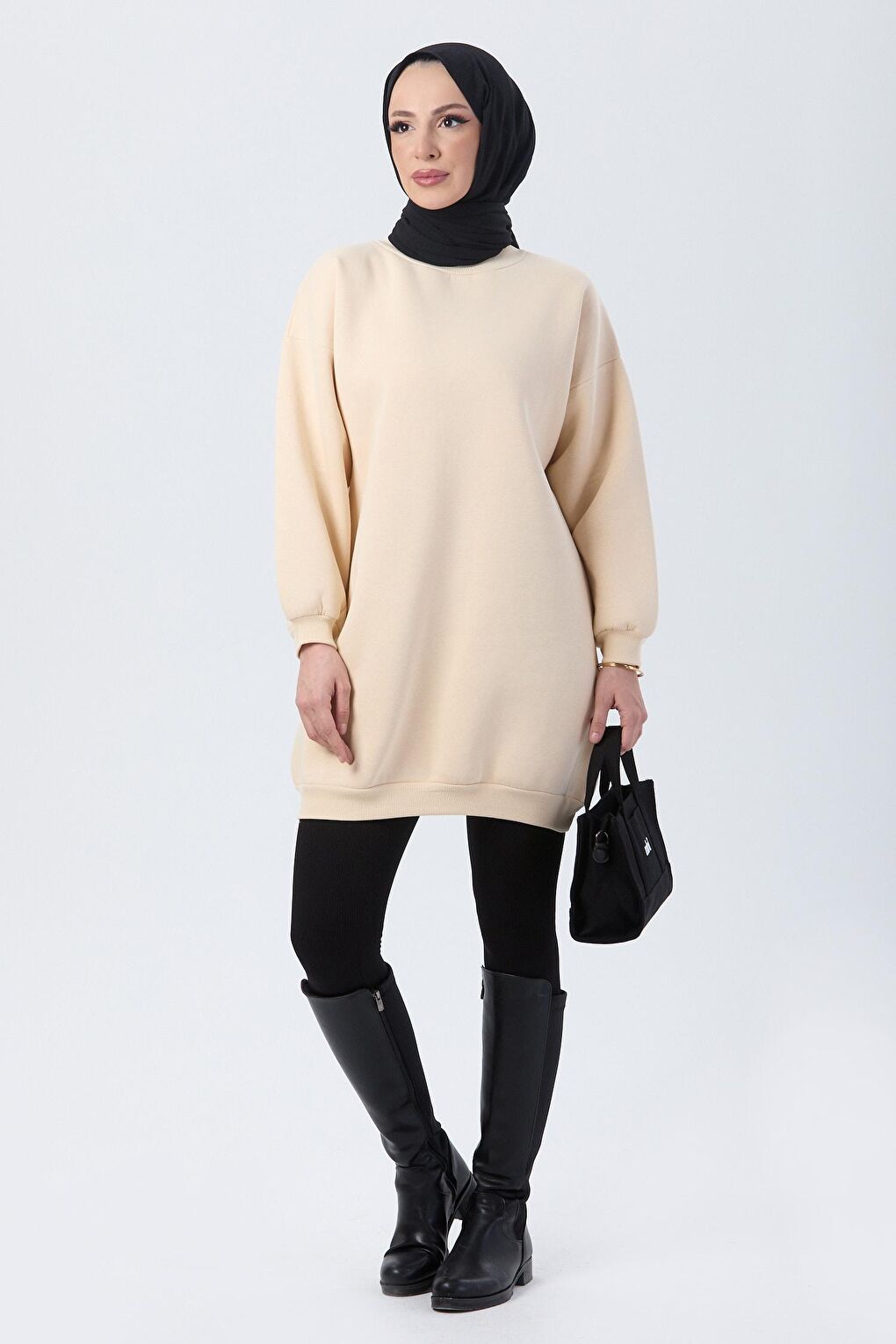 - نام : Düz Bisiklet Yaka Kadın Bej Sweat - 24111