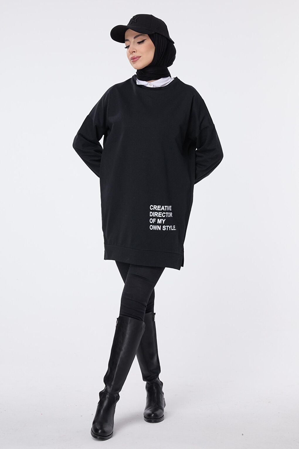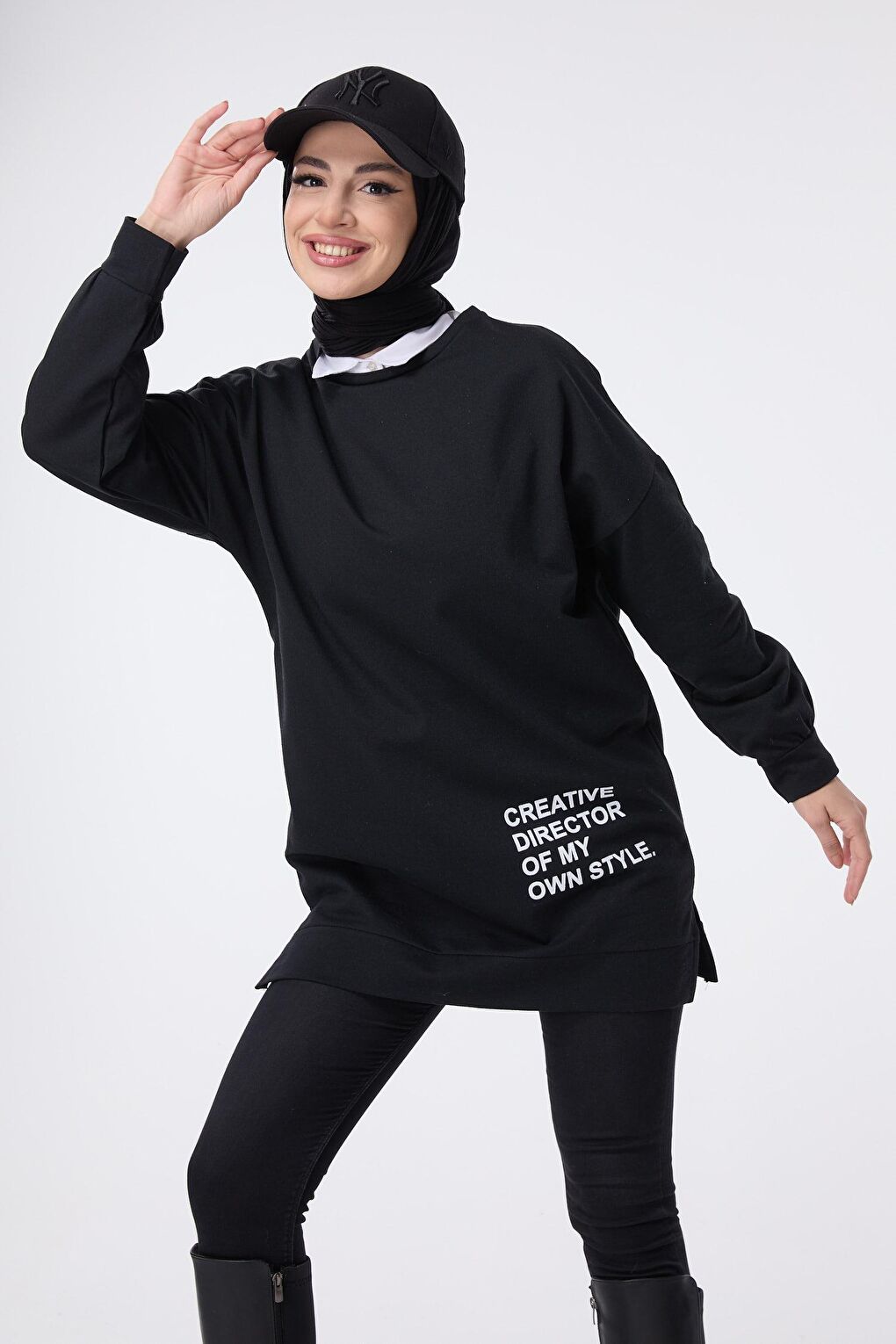 - نام : Düz Bisiklet Yaka Kadın Siyah Sweat - 13066