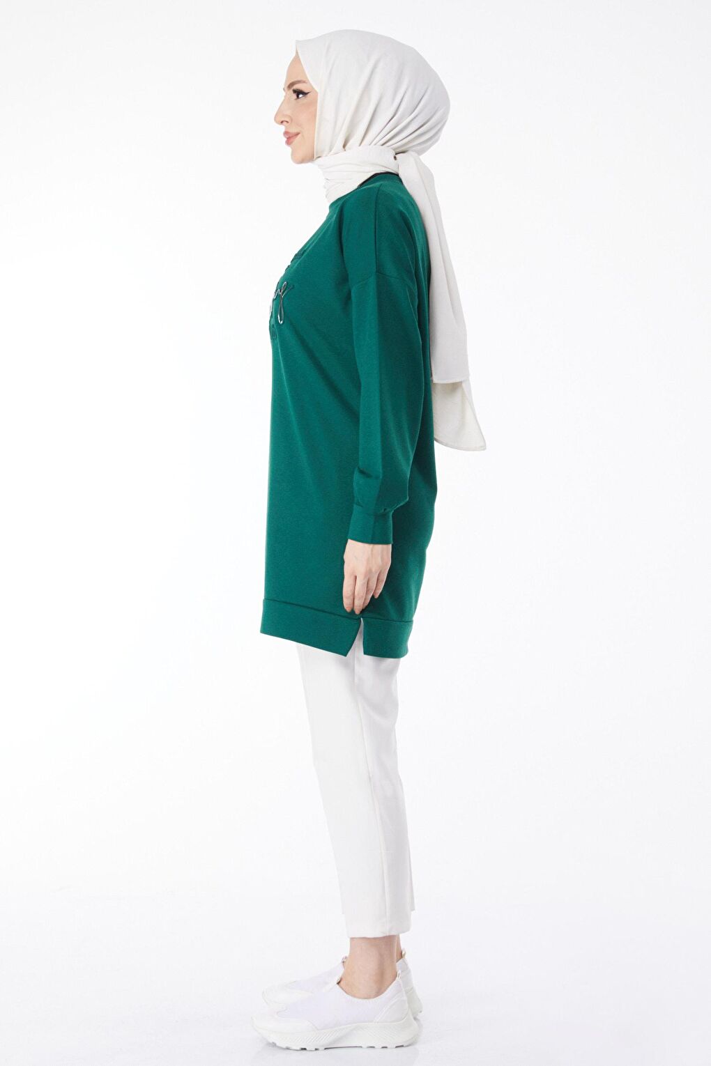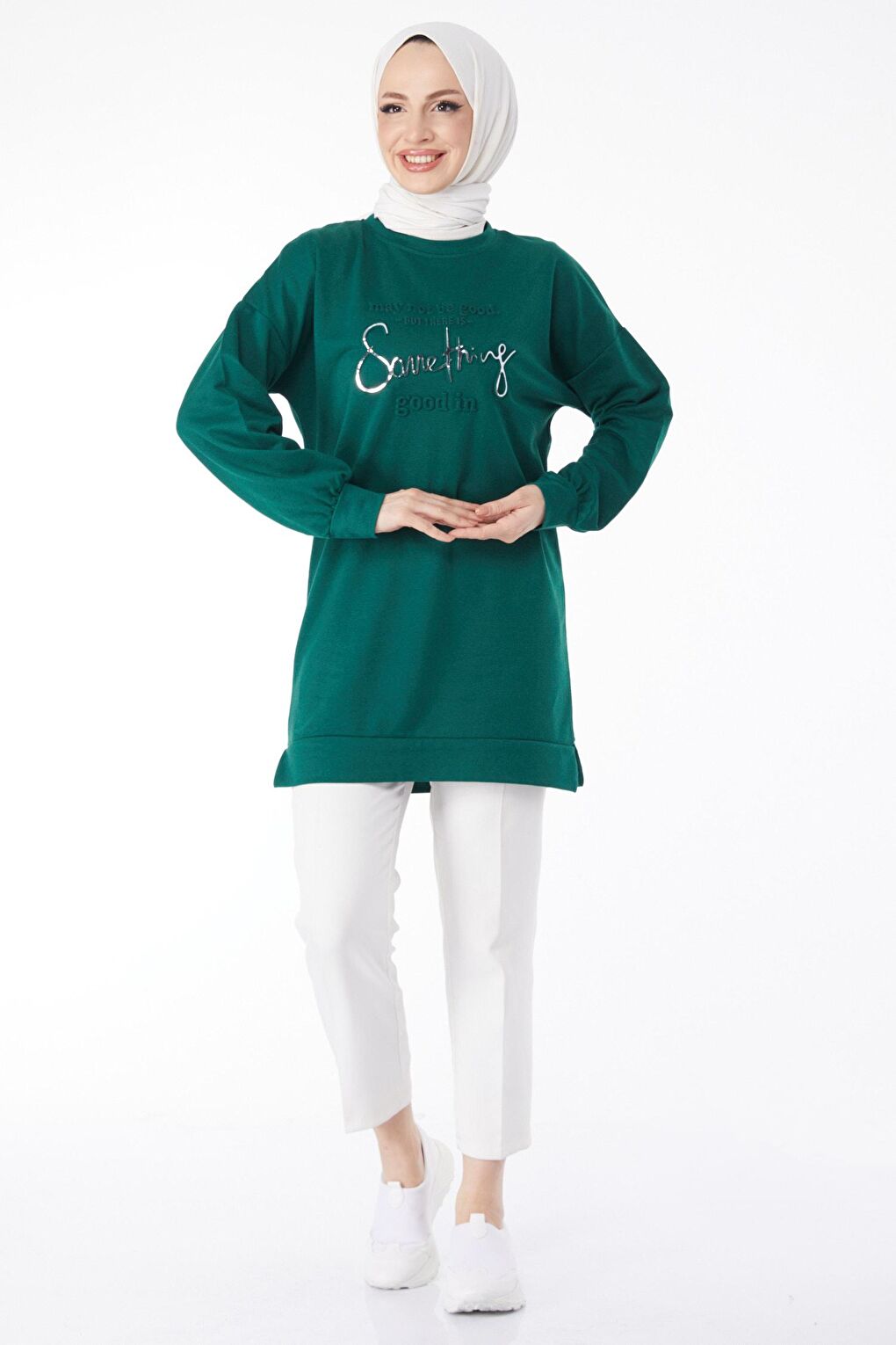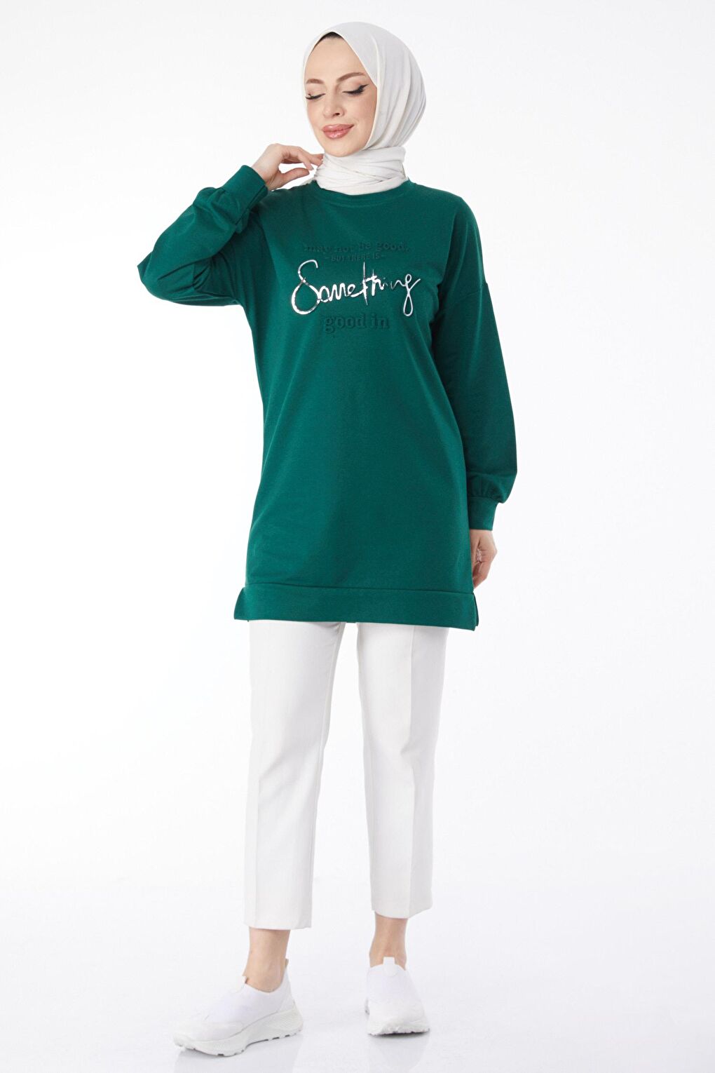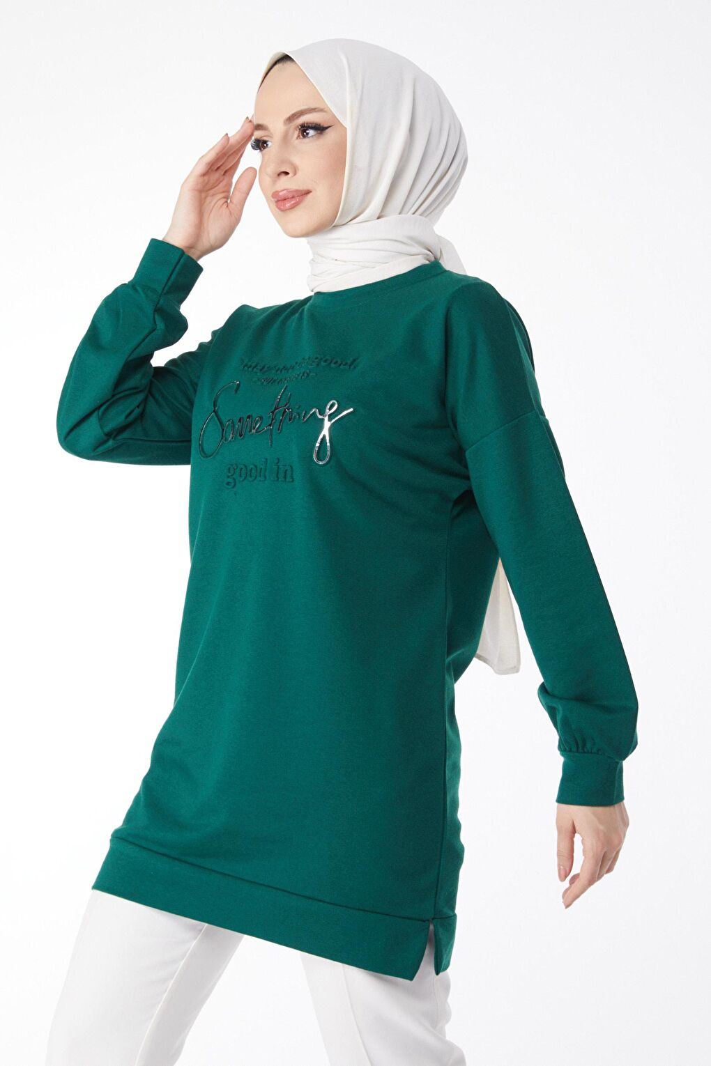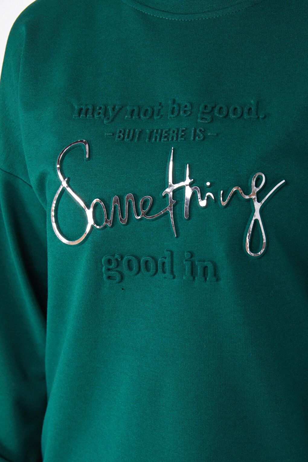 - نام : Düz Bisiklet Yaka Kadın Yeşil Baskılı Uzun Kollu Sweatshirt - 24609