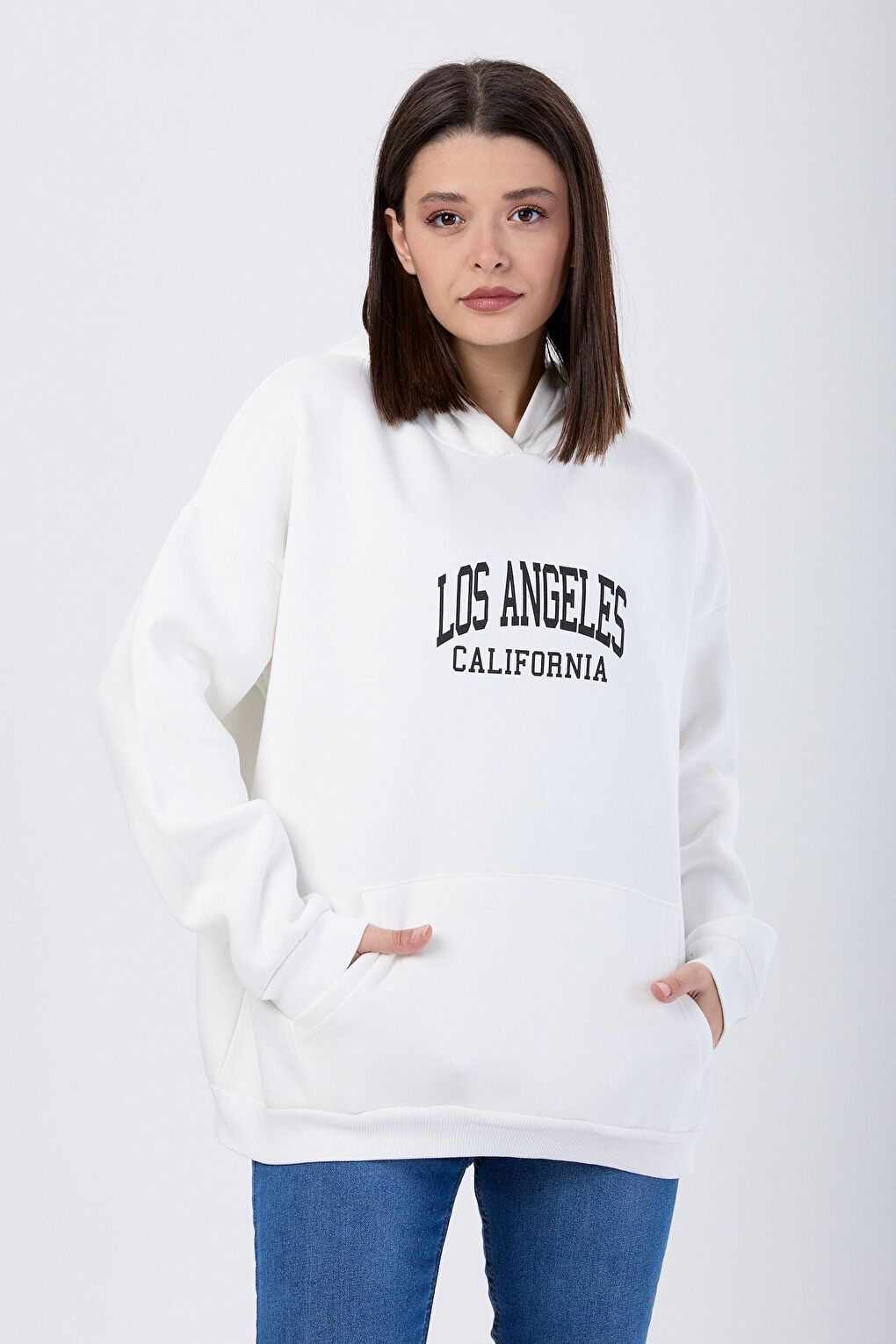 - نام : Düz Kapşonlu Yaka Kadın Beyaz Sweat - 24110