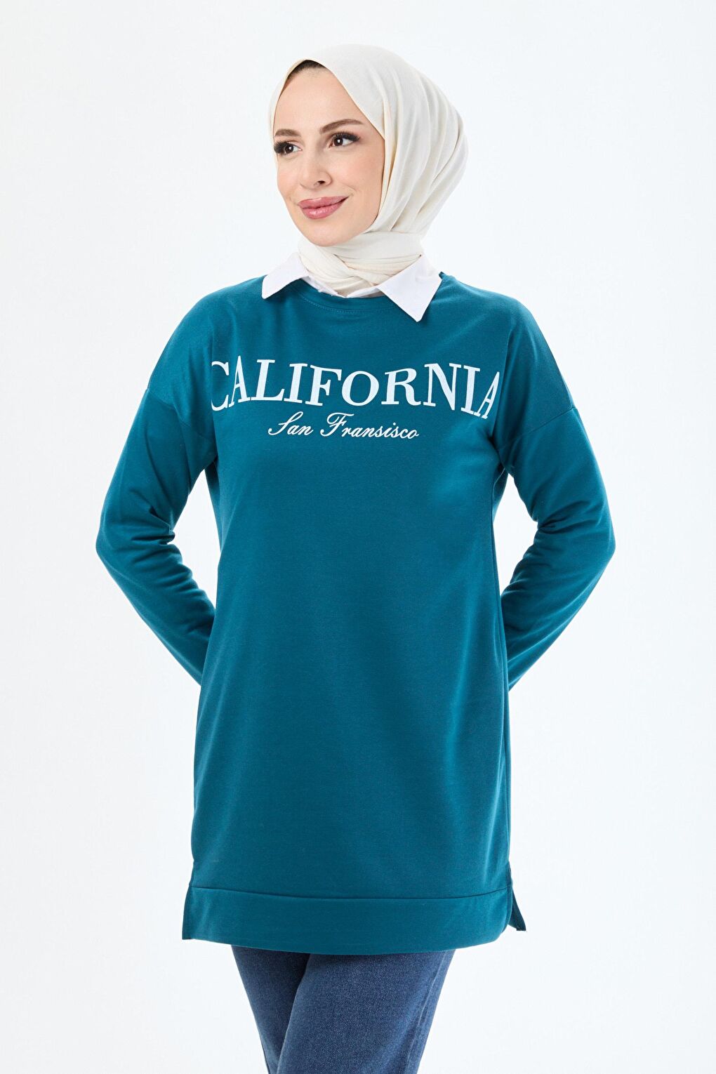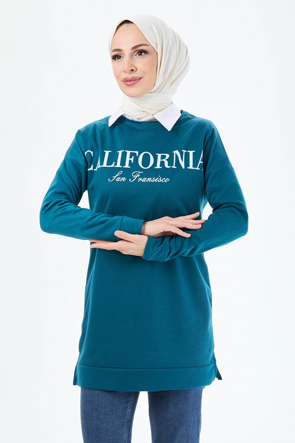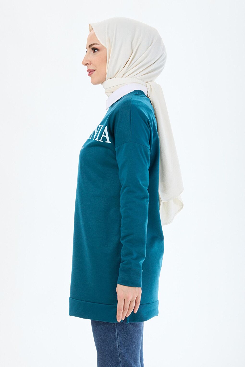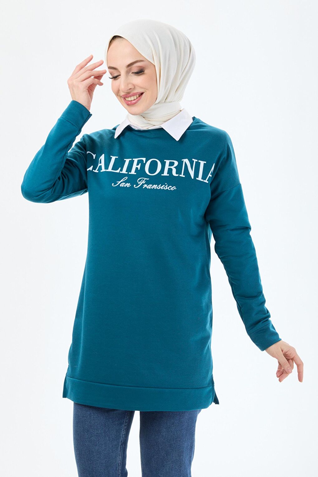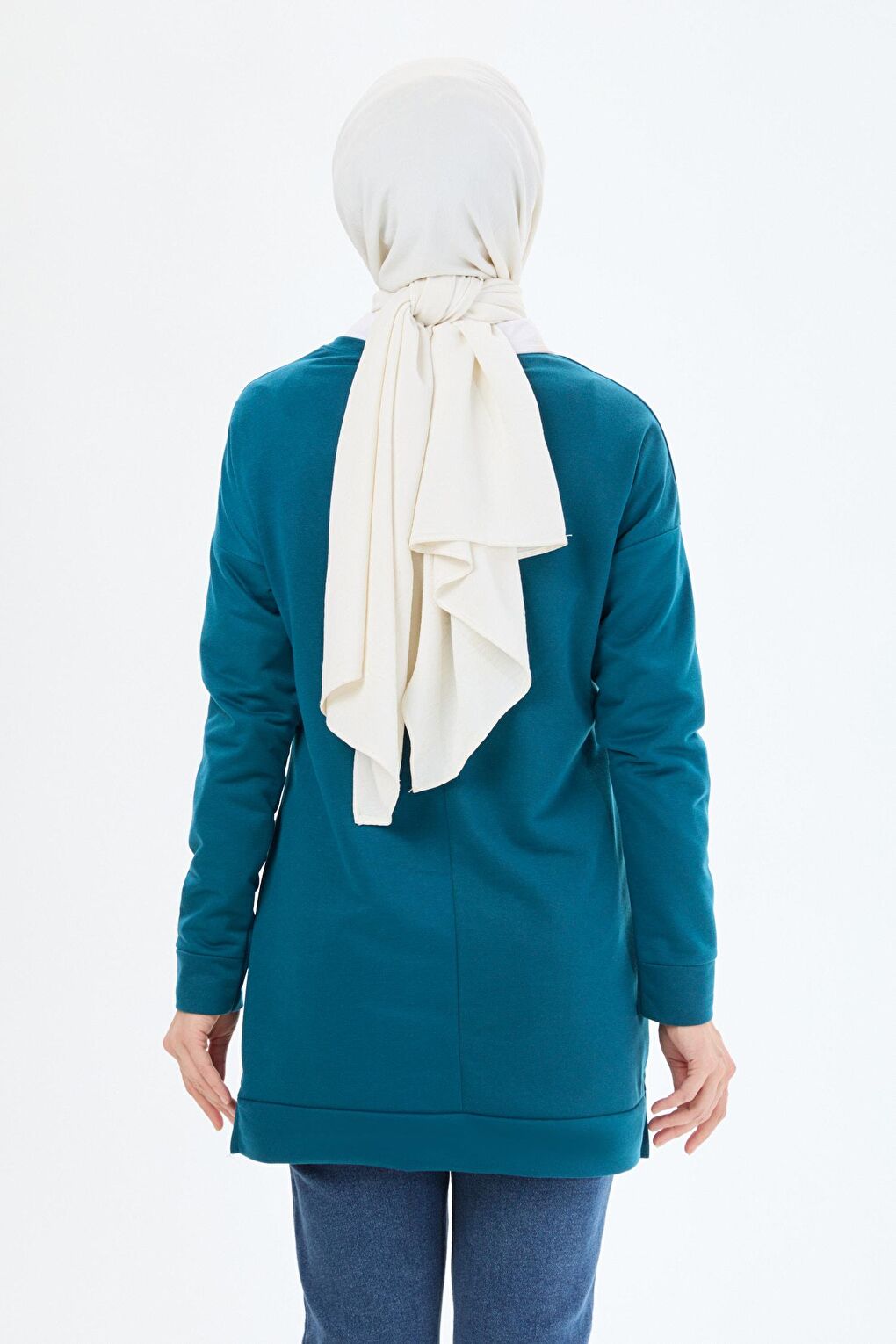 - نام : Düz Bisiklet Yaka Kadın Petrol Sweat - 23467