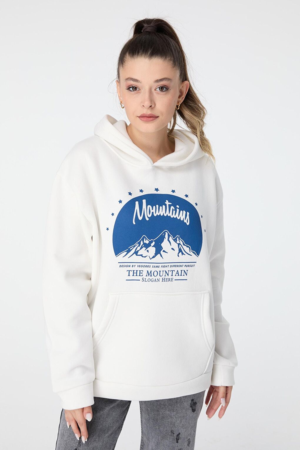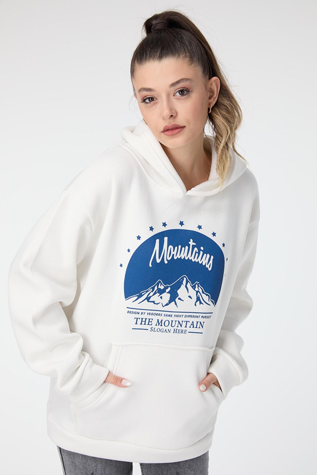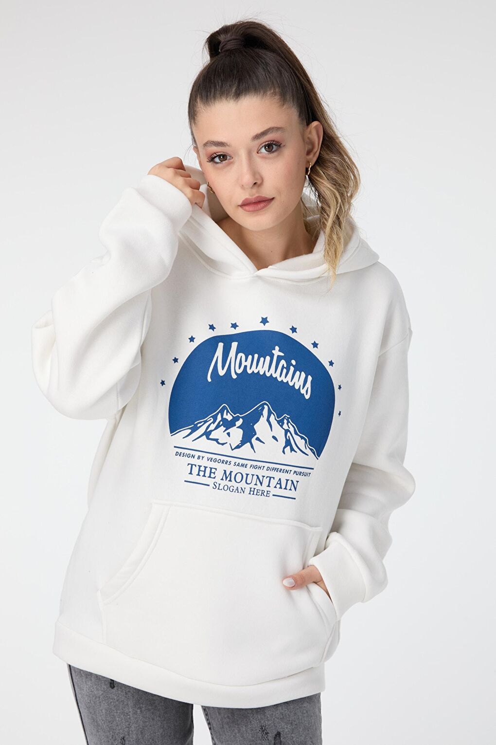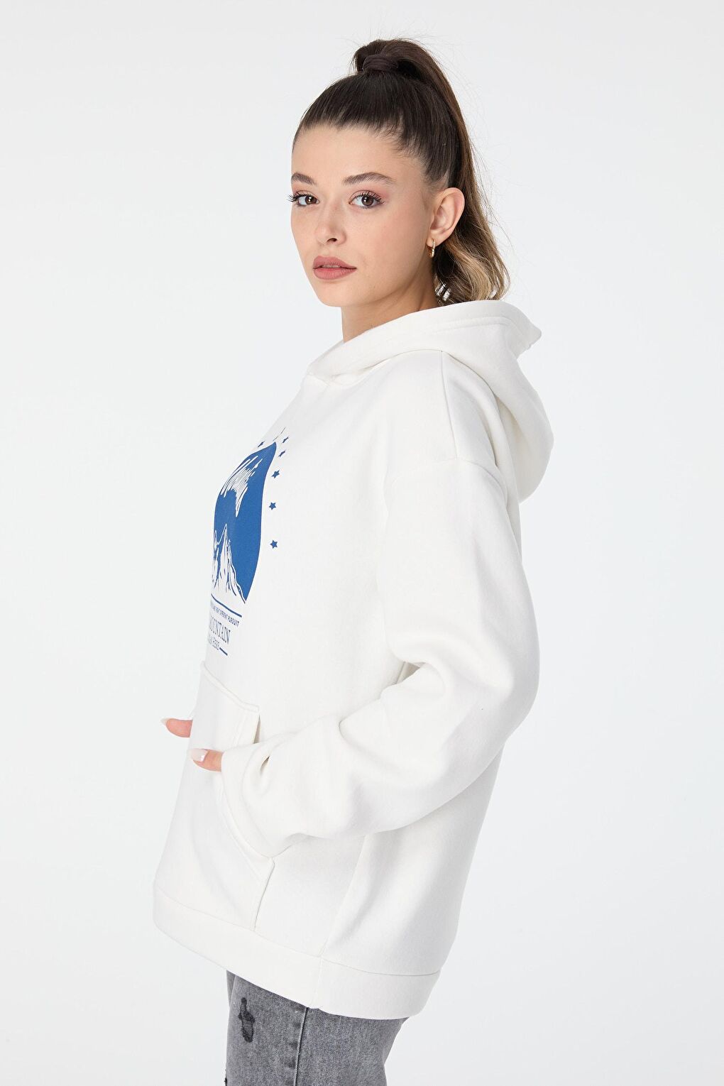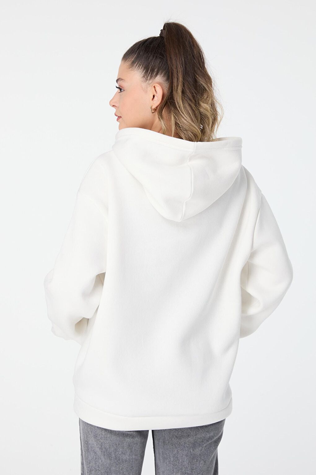 - نام : Düz Kapşonlu Yaka Kadın Beyaz Sweat - 23499