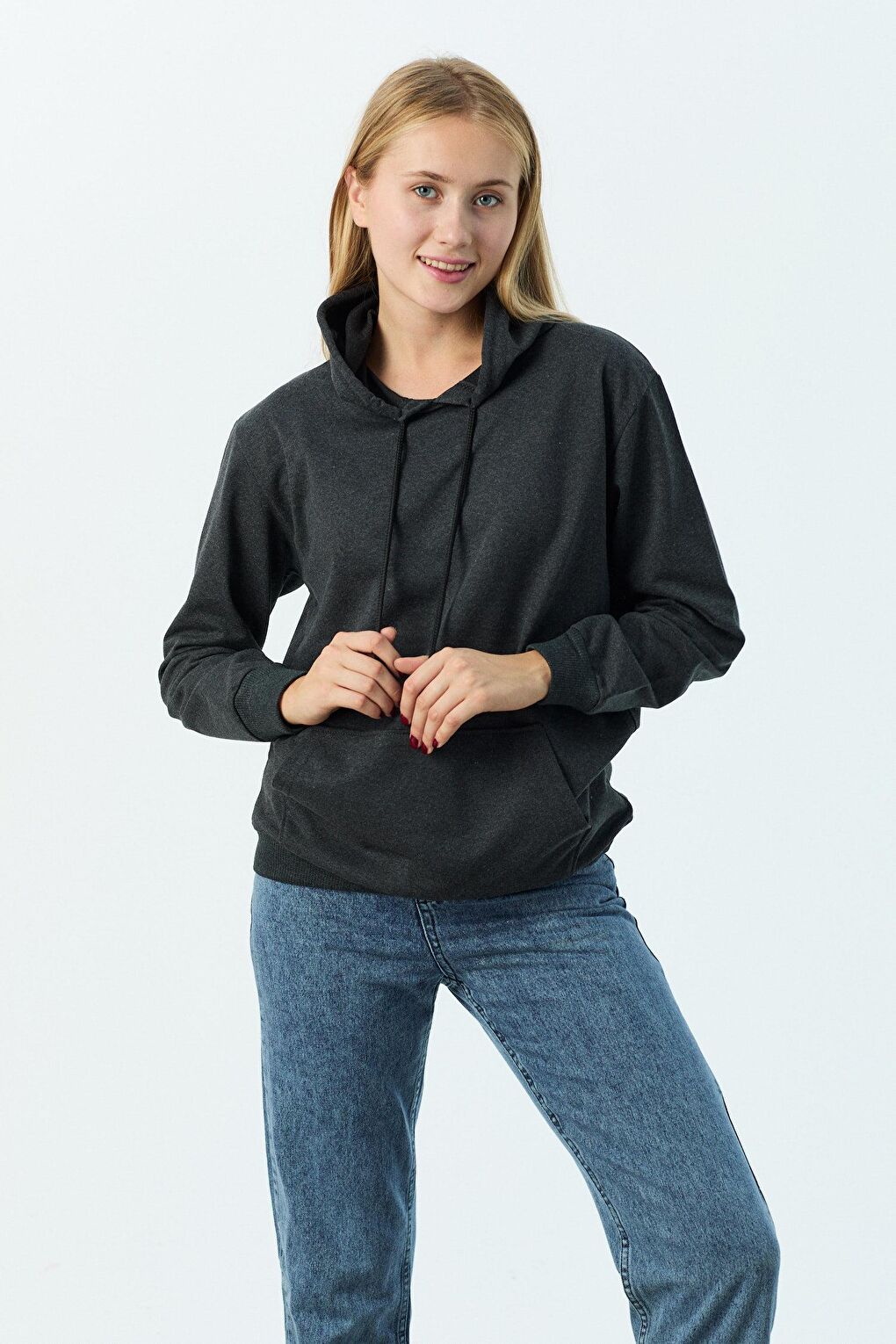 - نام : Düz Kapşonlu Yaka Kadın Antrasit Kapsonlu Sweat - 23003