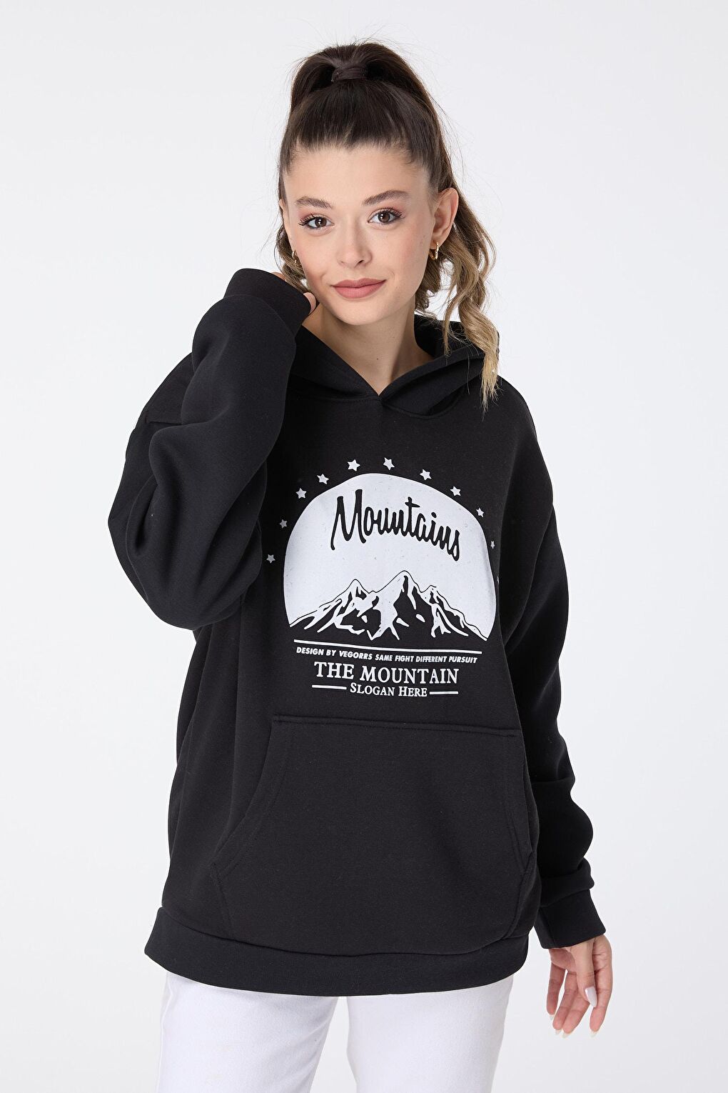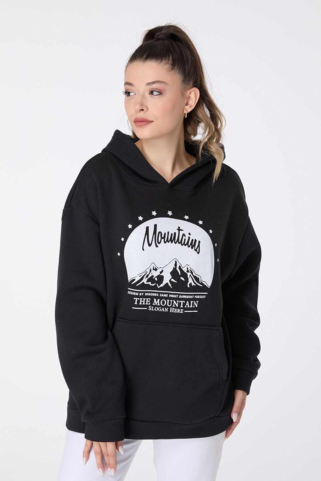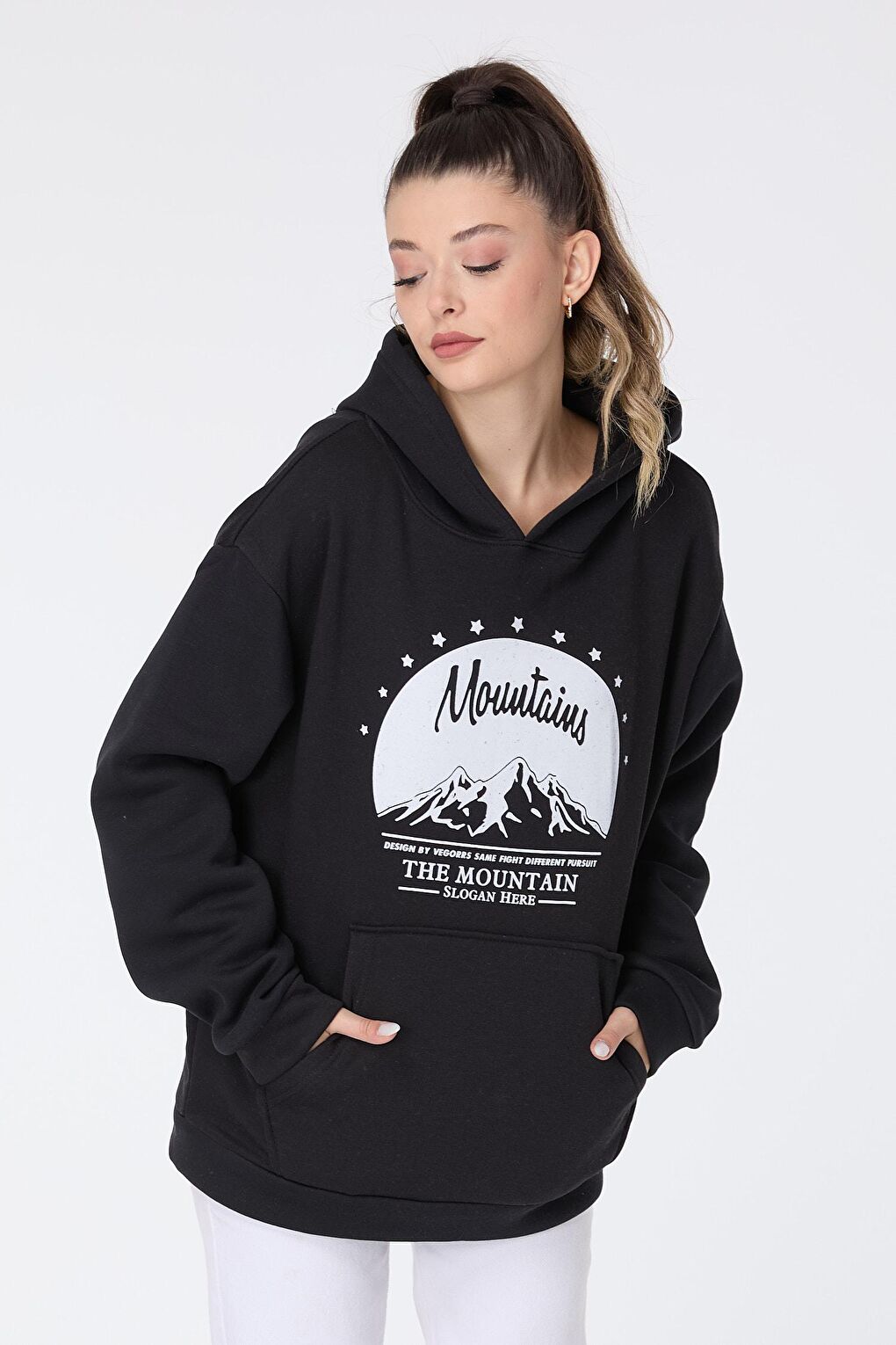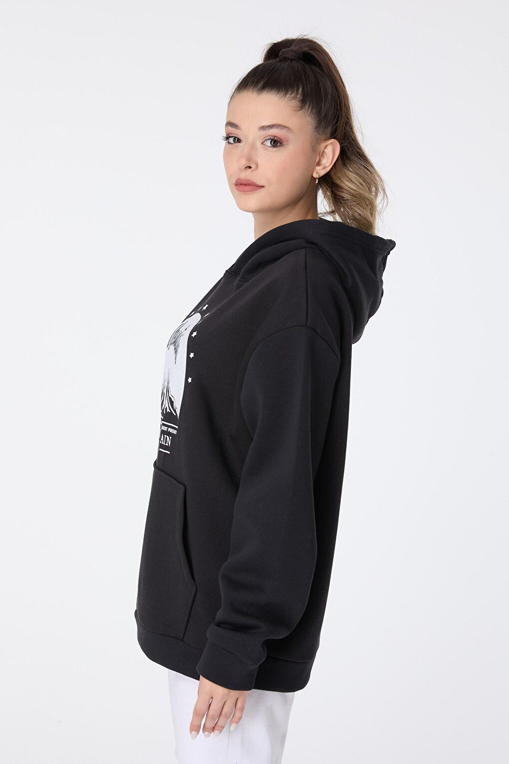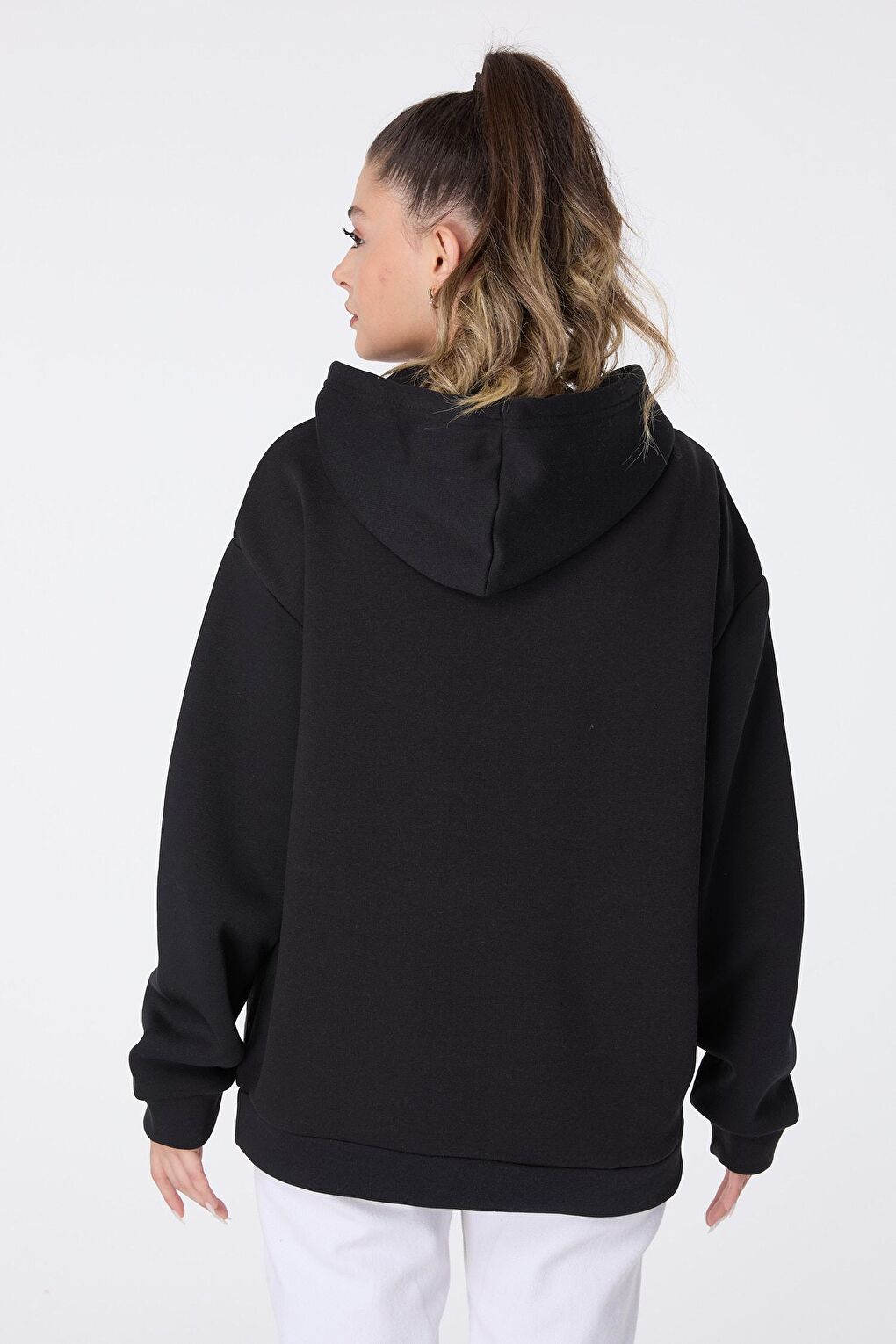 - نام : Düz Kapşonlu Yaka Kadın Siyah Sweat - 23499