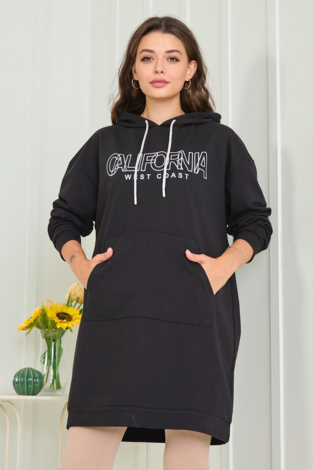 - نام : Düz Kapşonlu Yaka Kadın Siyah Kapşonlu Sweat - 23008