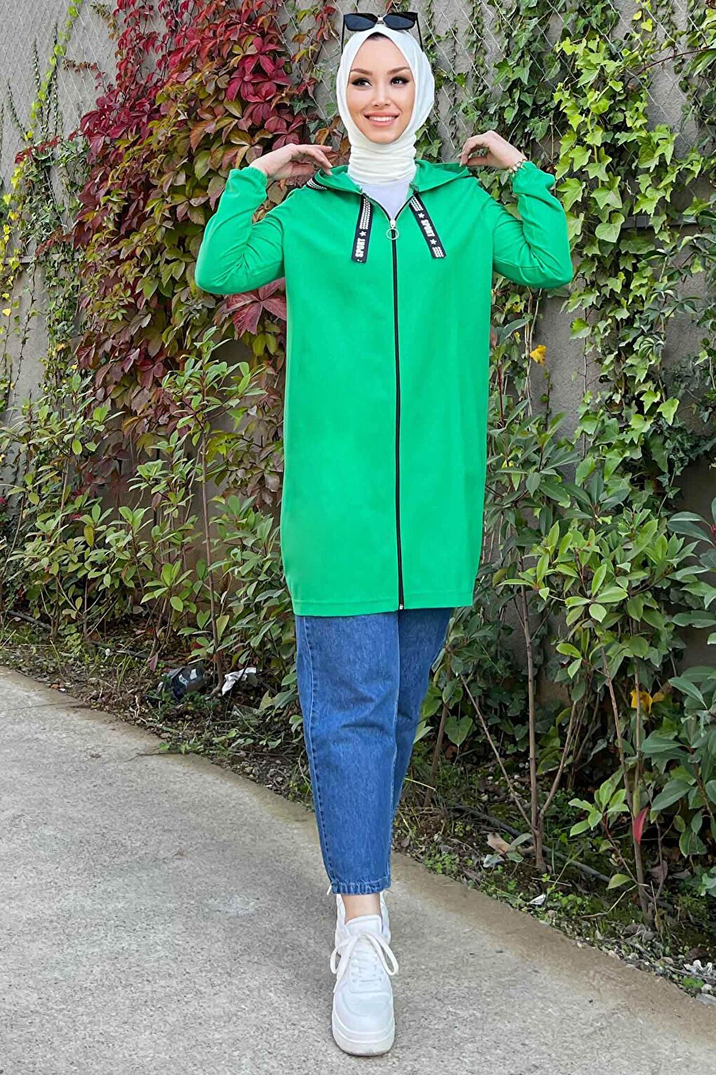 - نام : Düz Kapsonlu Yaka Kadın Yeşil Fermuarlı Hırka - 3038