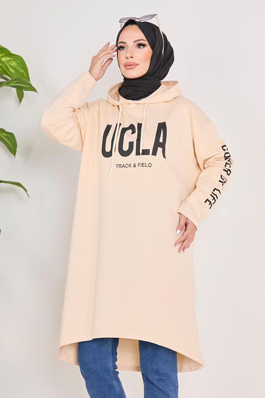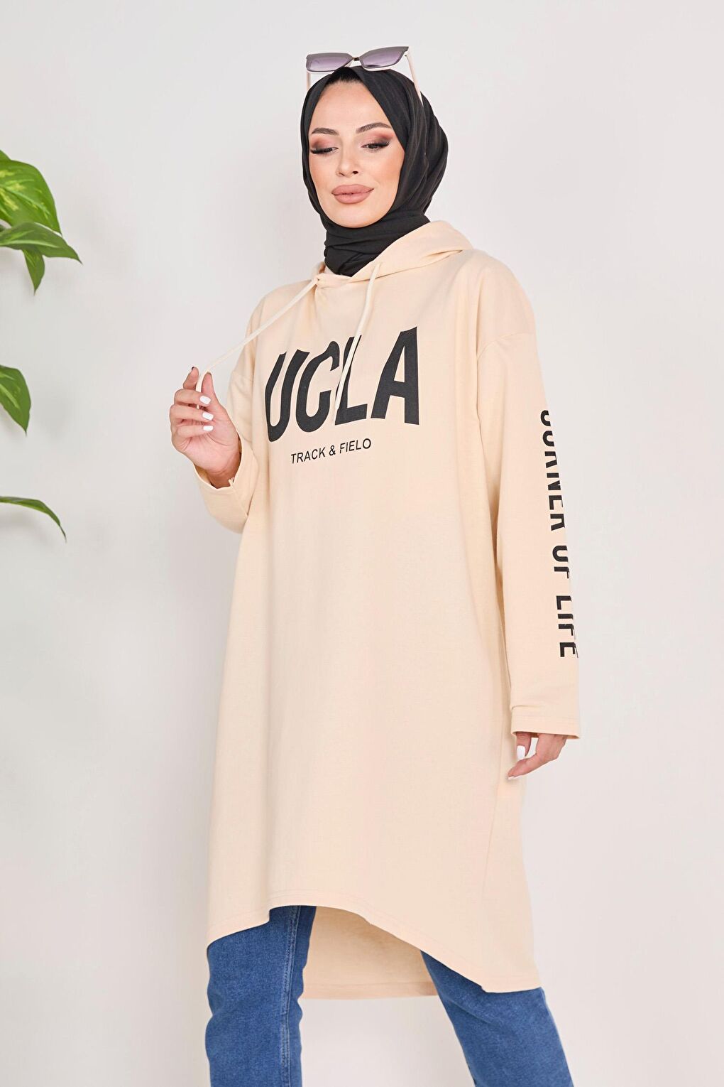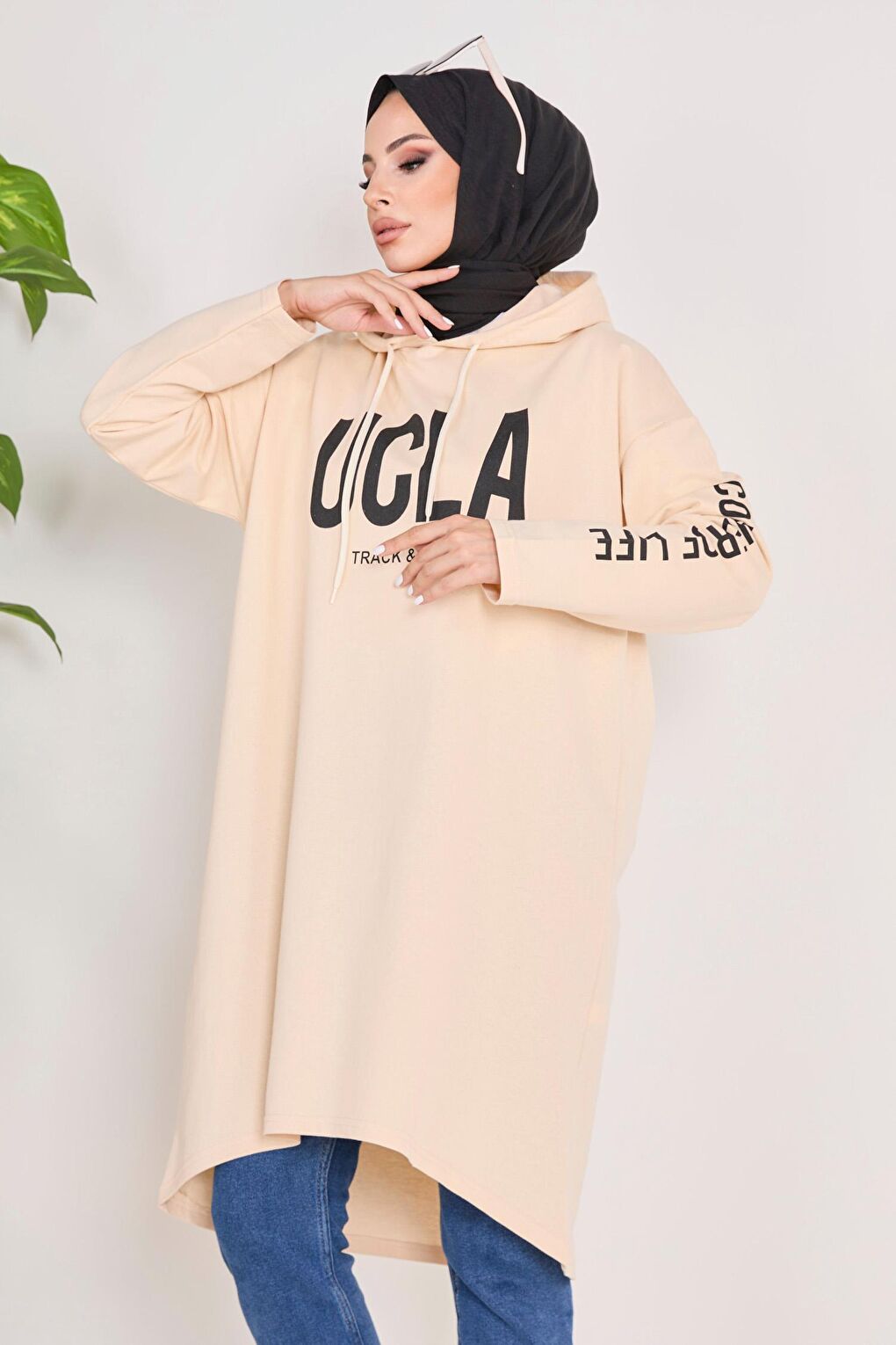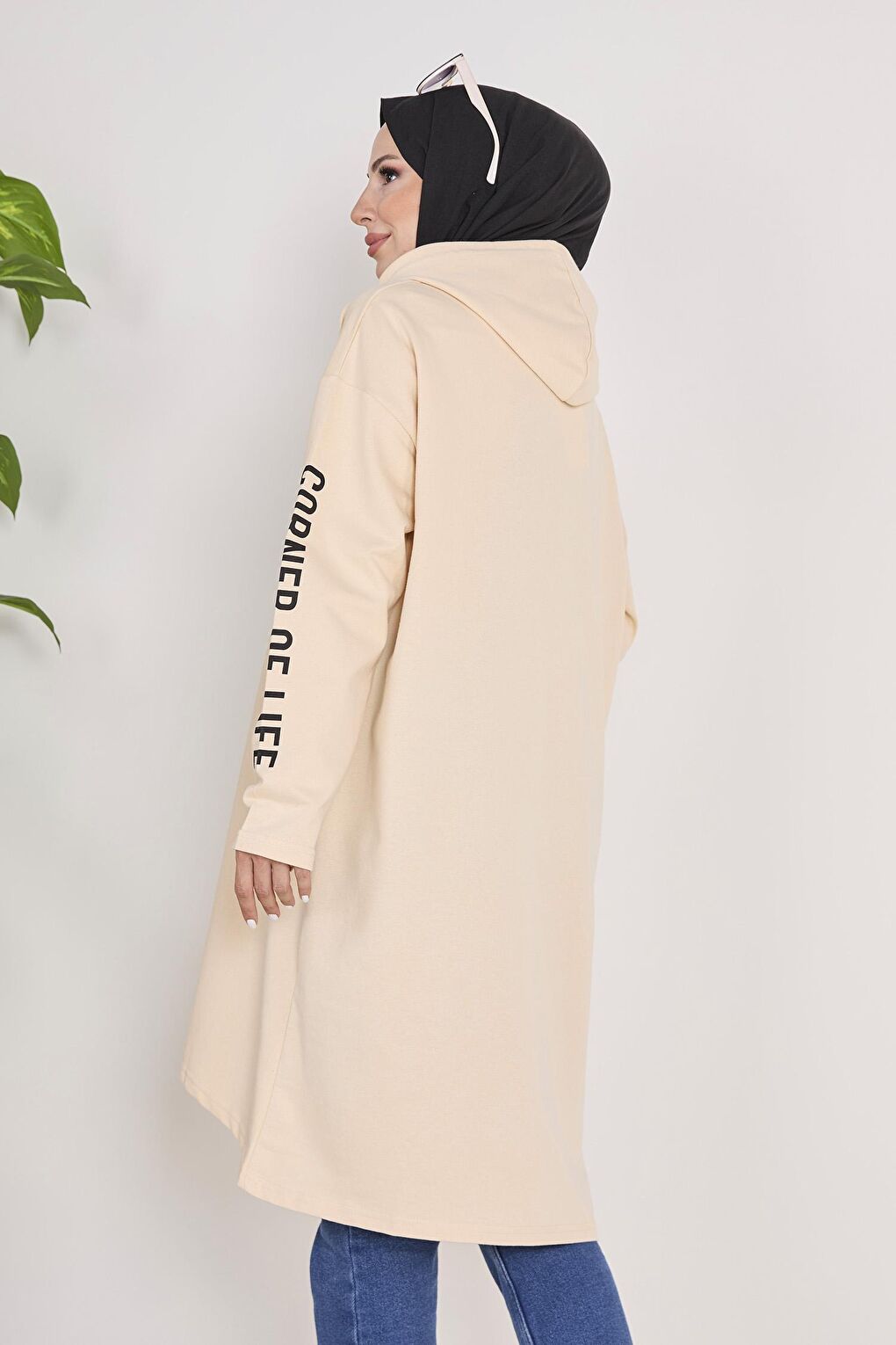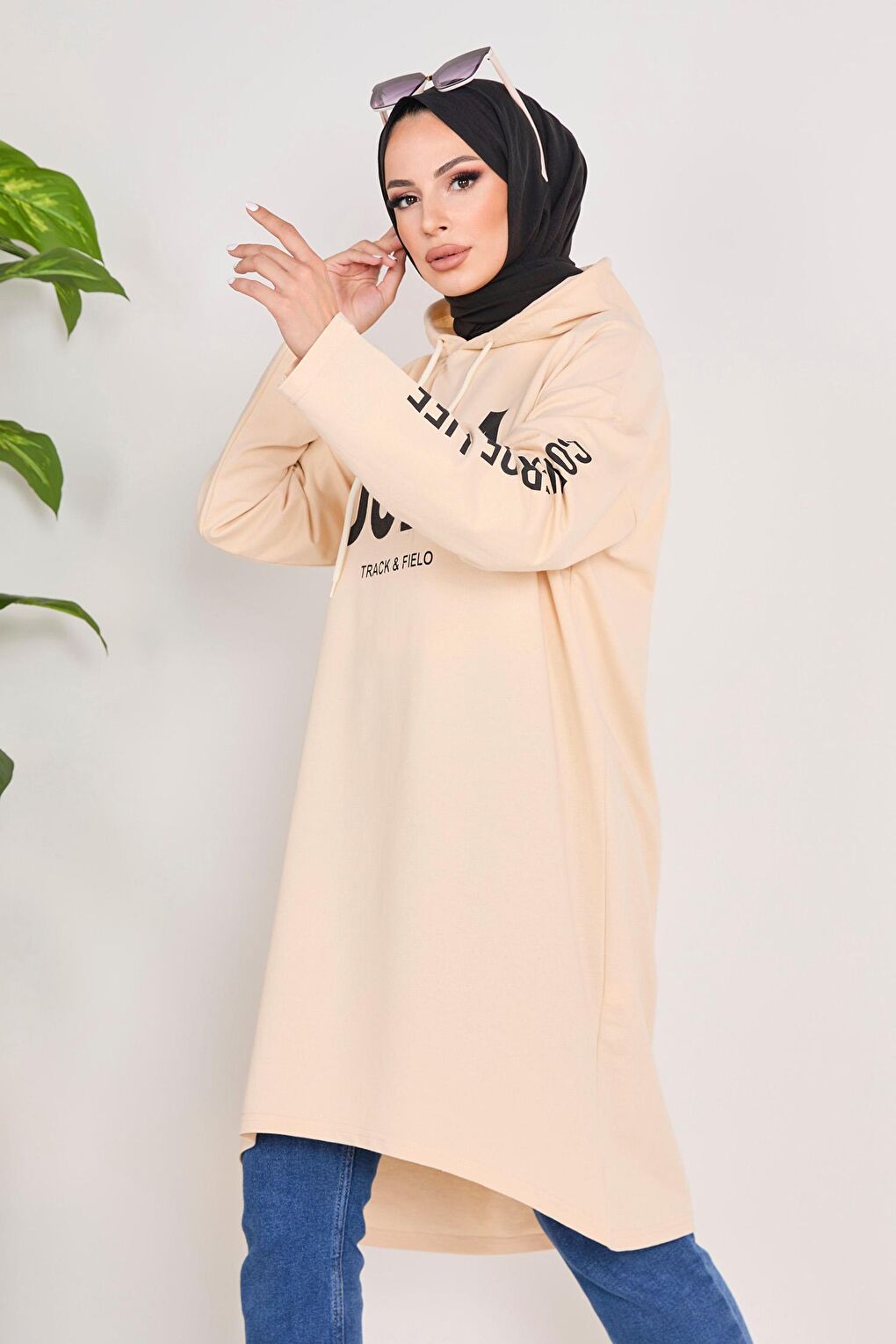 - نام : Düz Kapşonlu Yaka Kadın Bej Kapşonlu Sweat - 23016