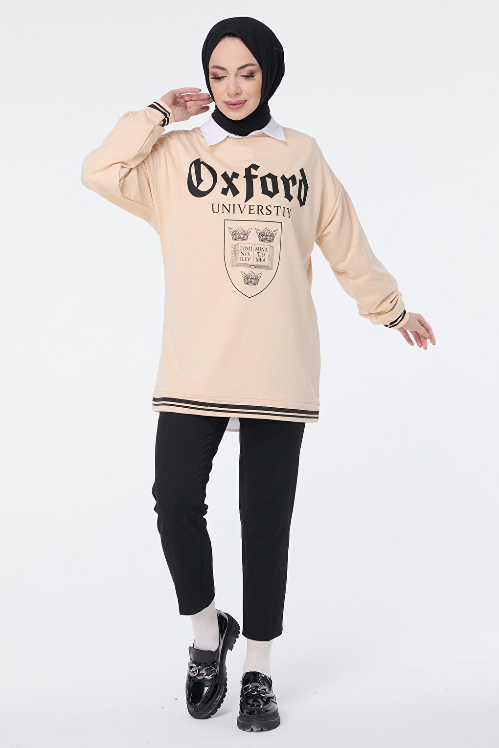 - نام : Düz Bisiklet Yaka Kadın Bej Sweat - 13054