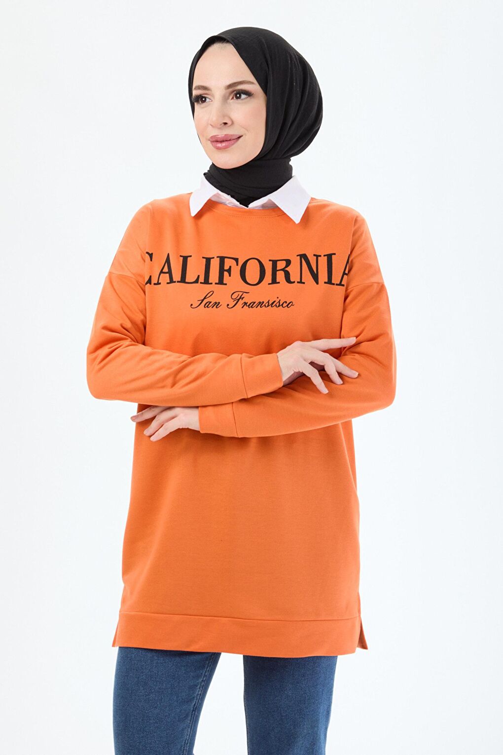 - نام : Düz Bisiklet Yaka Kadın Turuncu Sweat - 23467