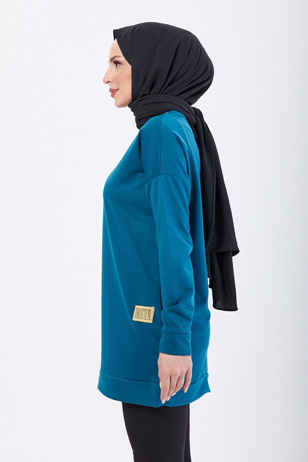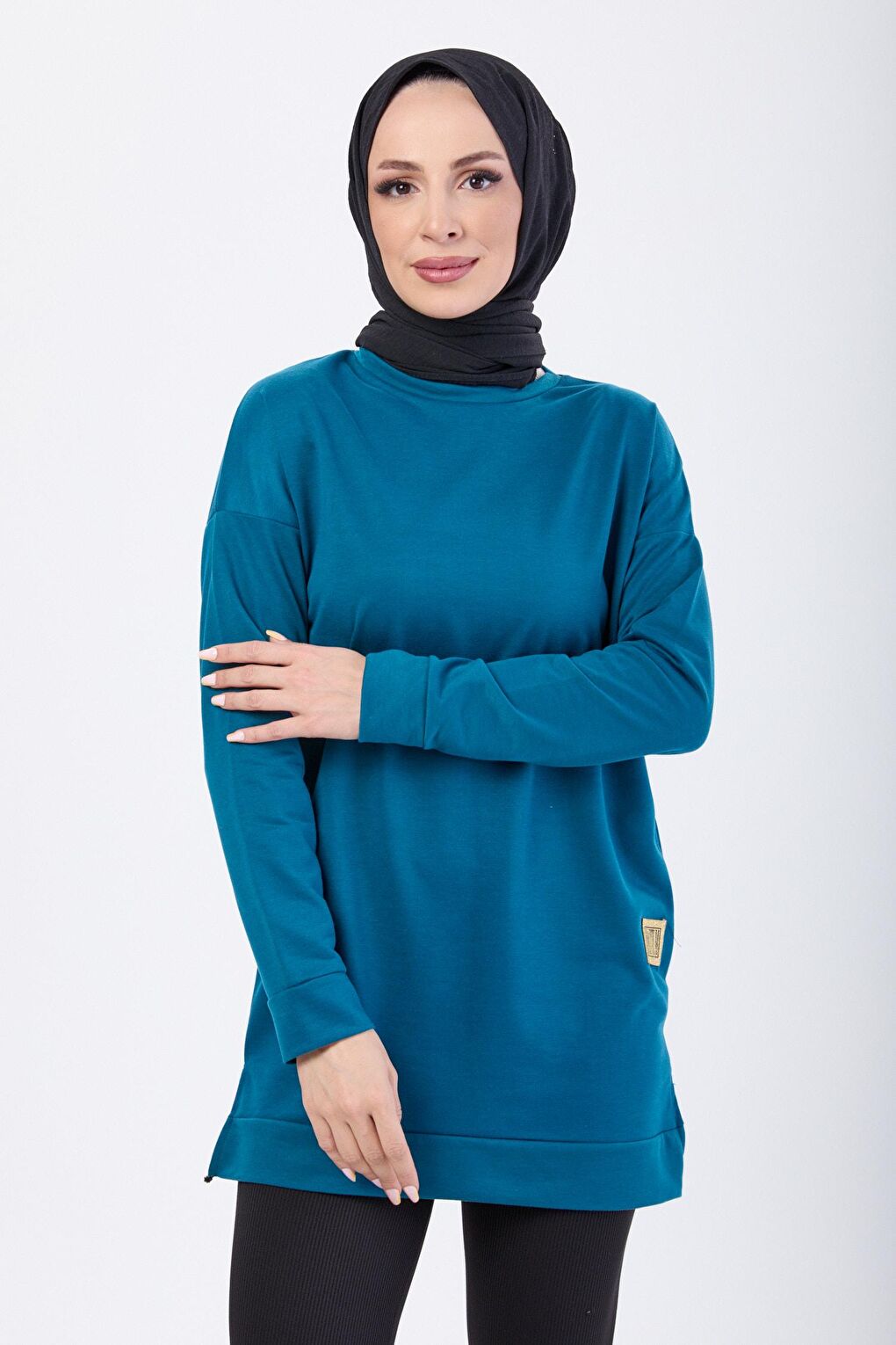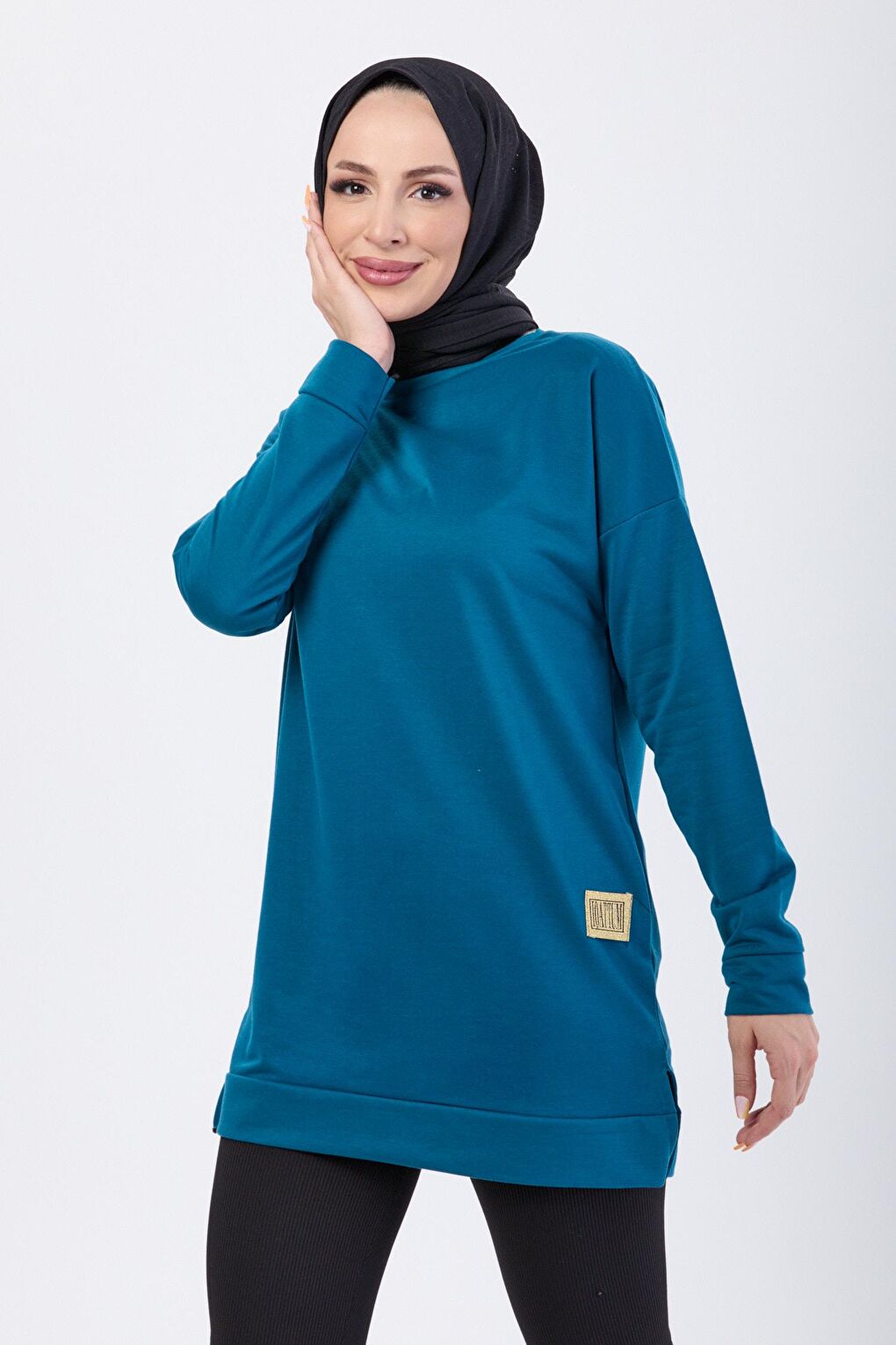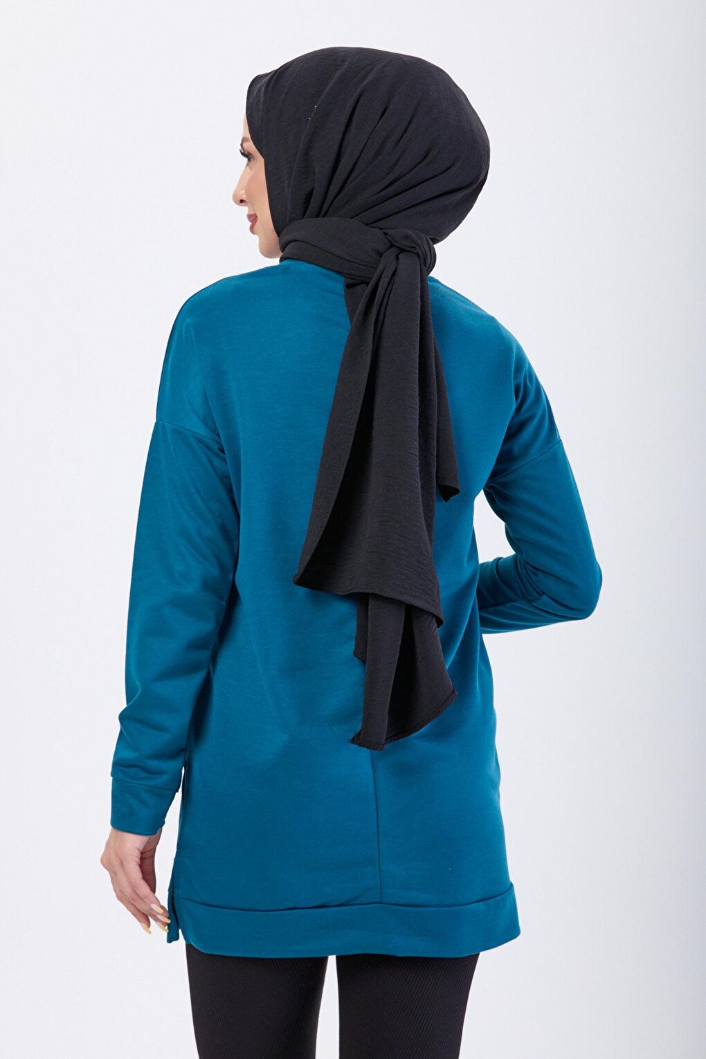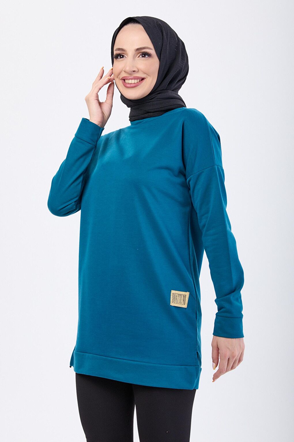 - نام : Düz Bisiklet Yaka Kadın Petrol Sweat - 13094