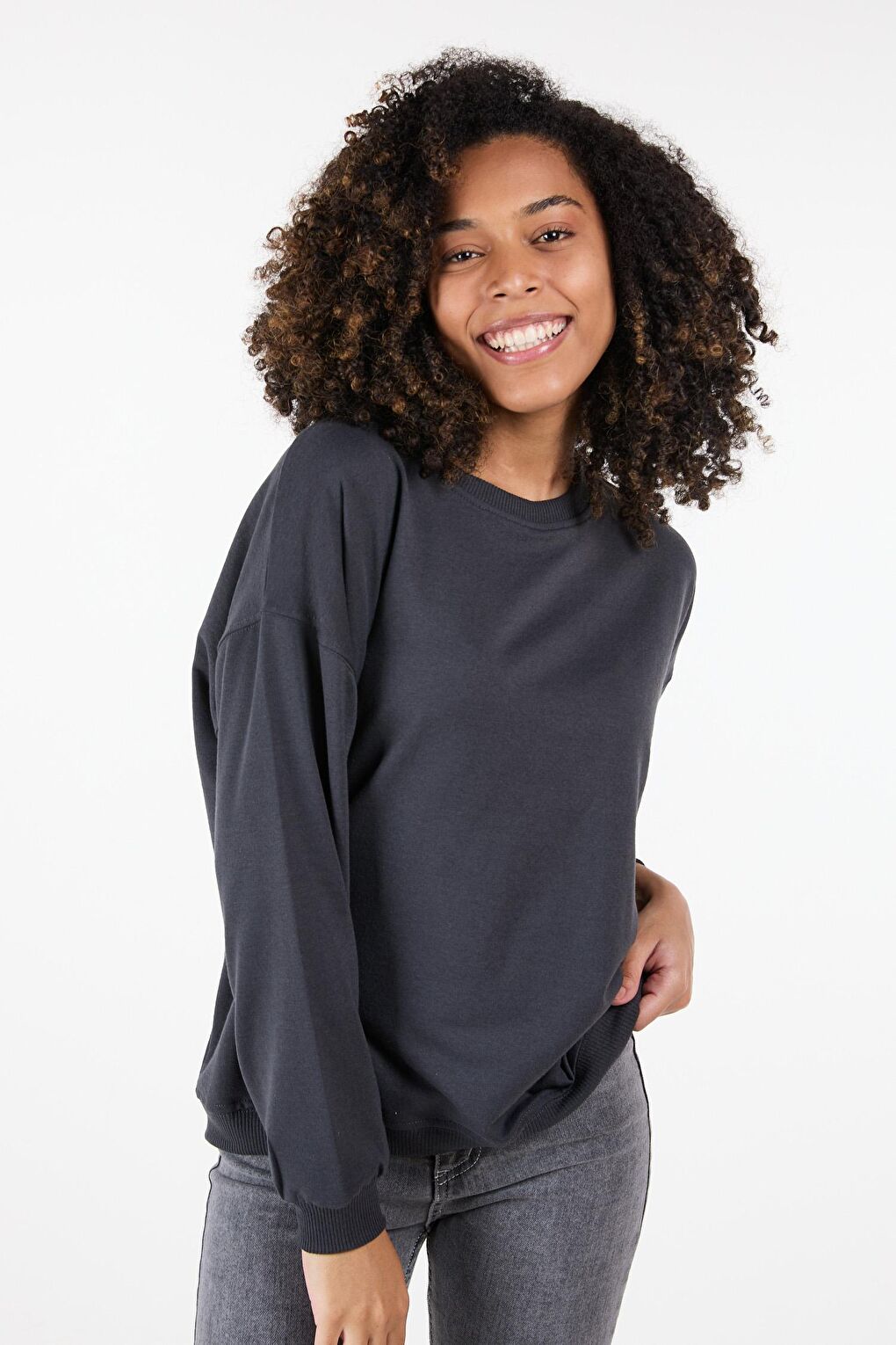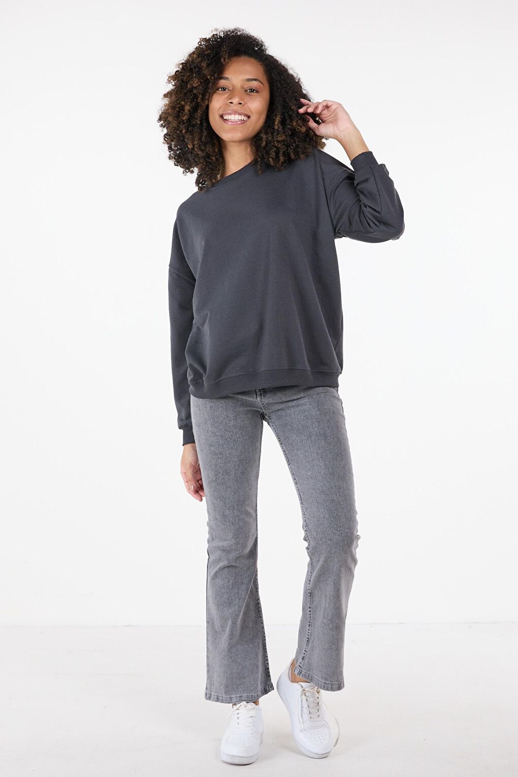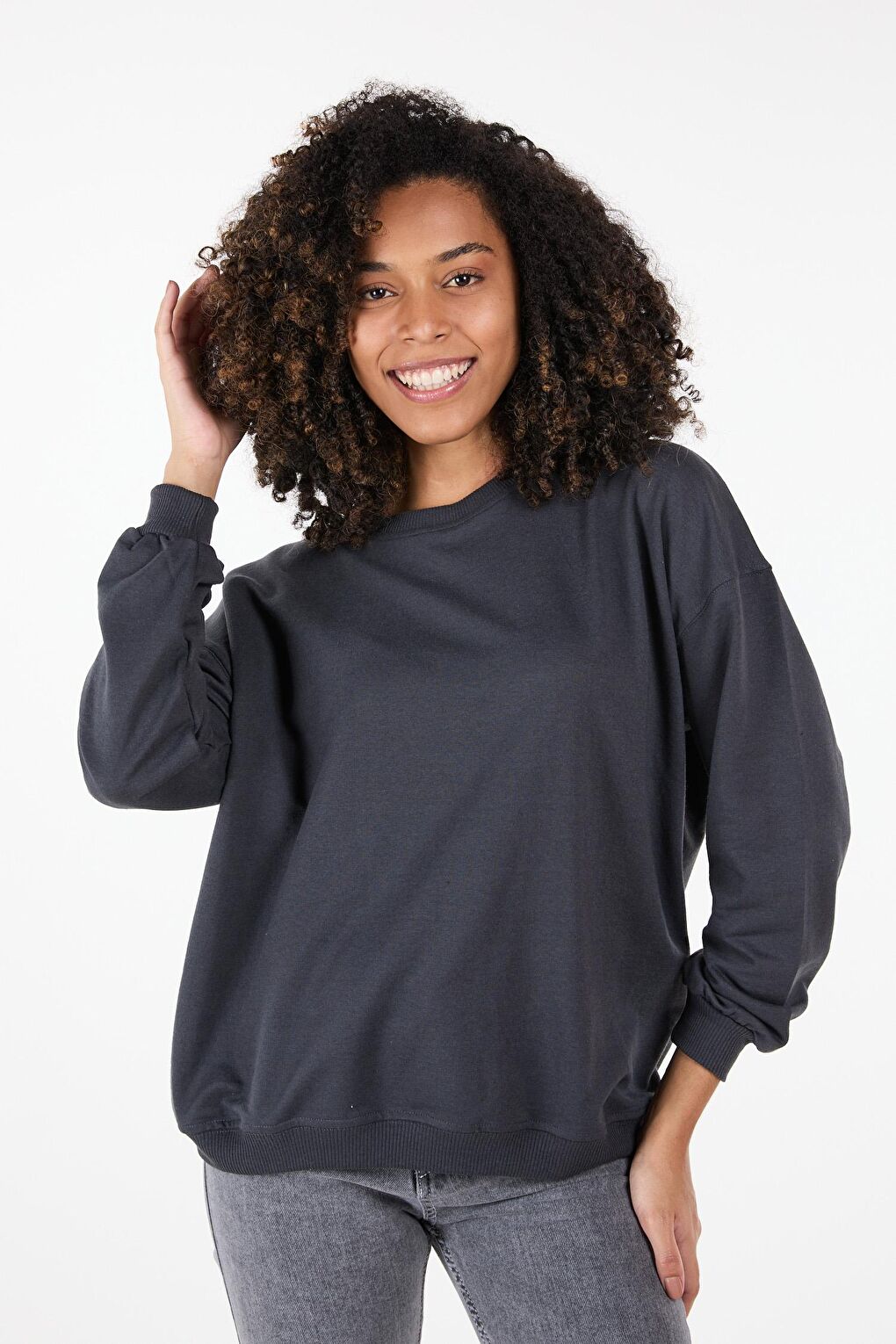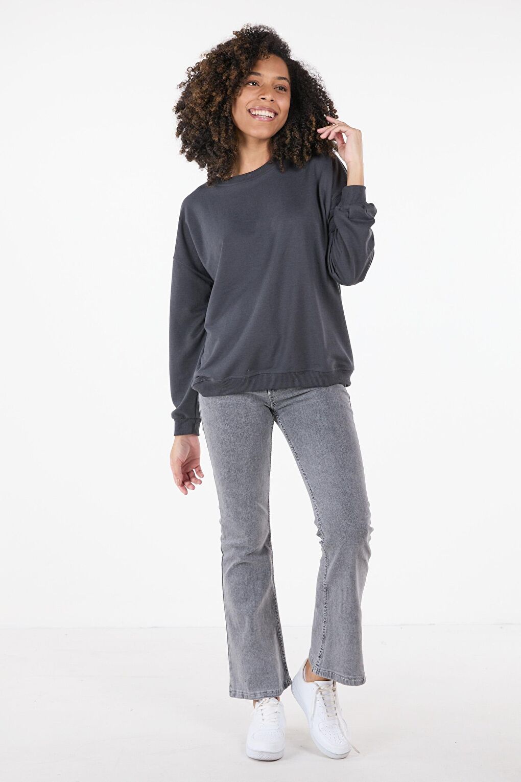 - نام : Düz Bisiklet Yaka Kadın Antrasit Sweat - 23423