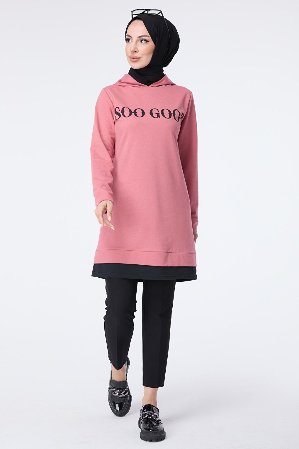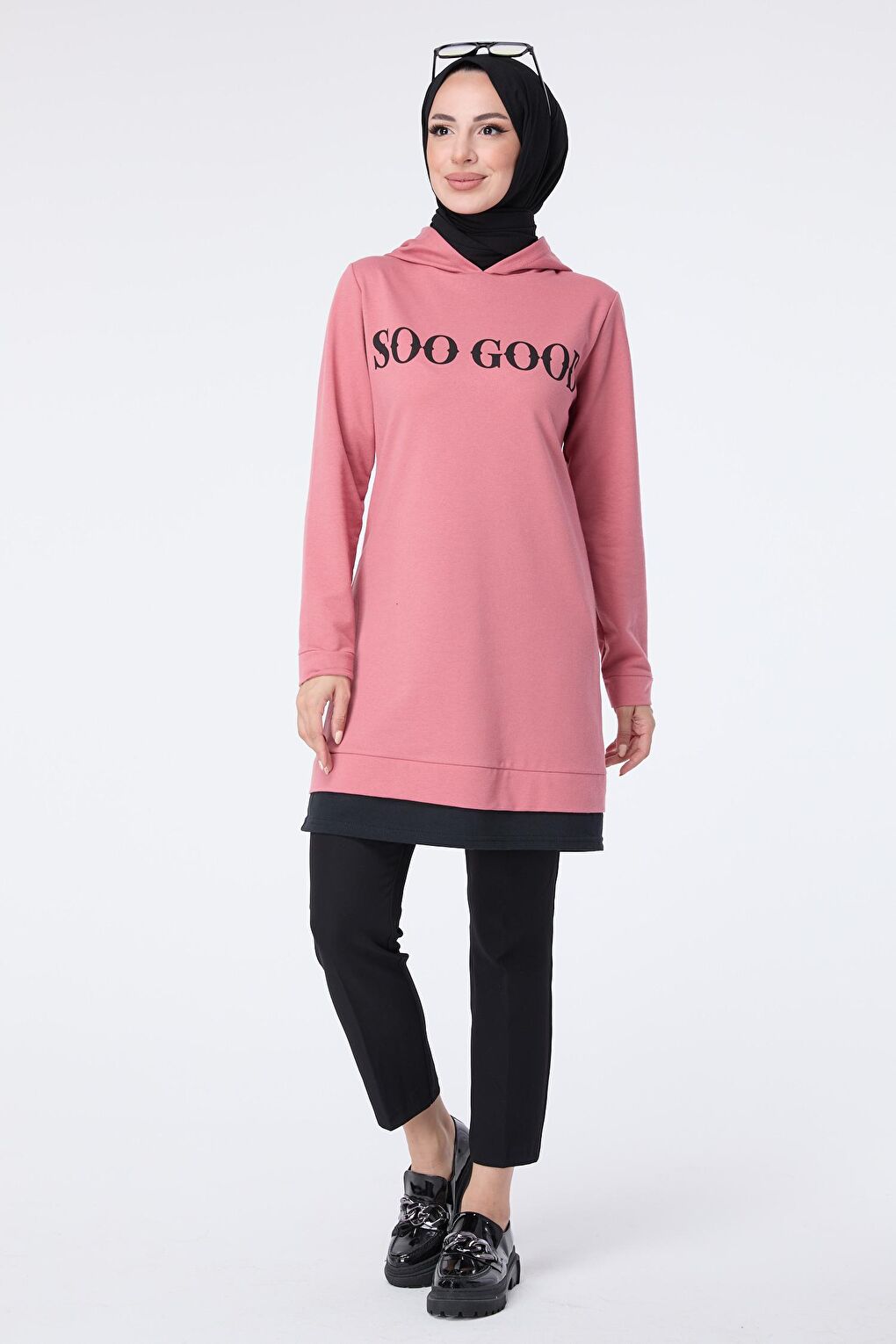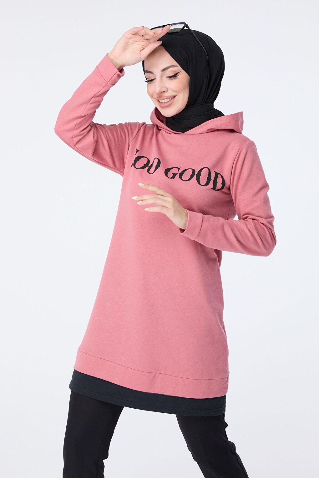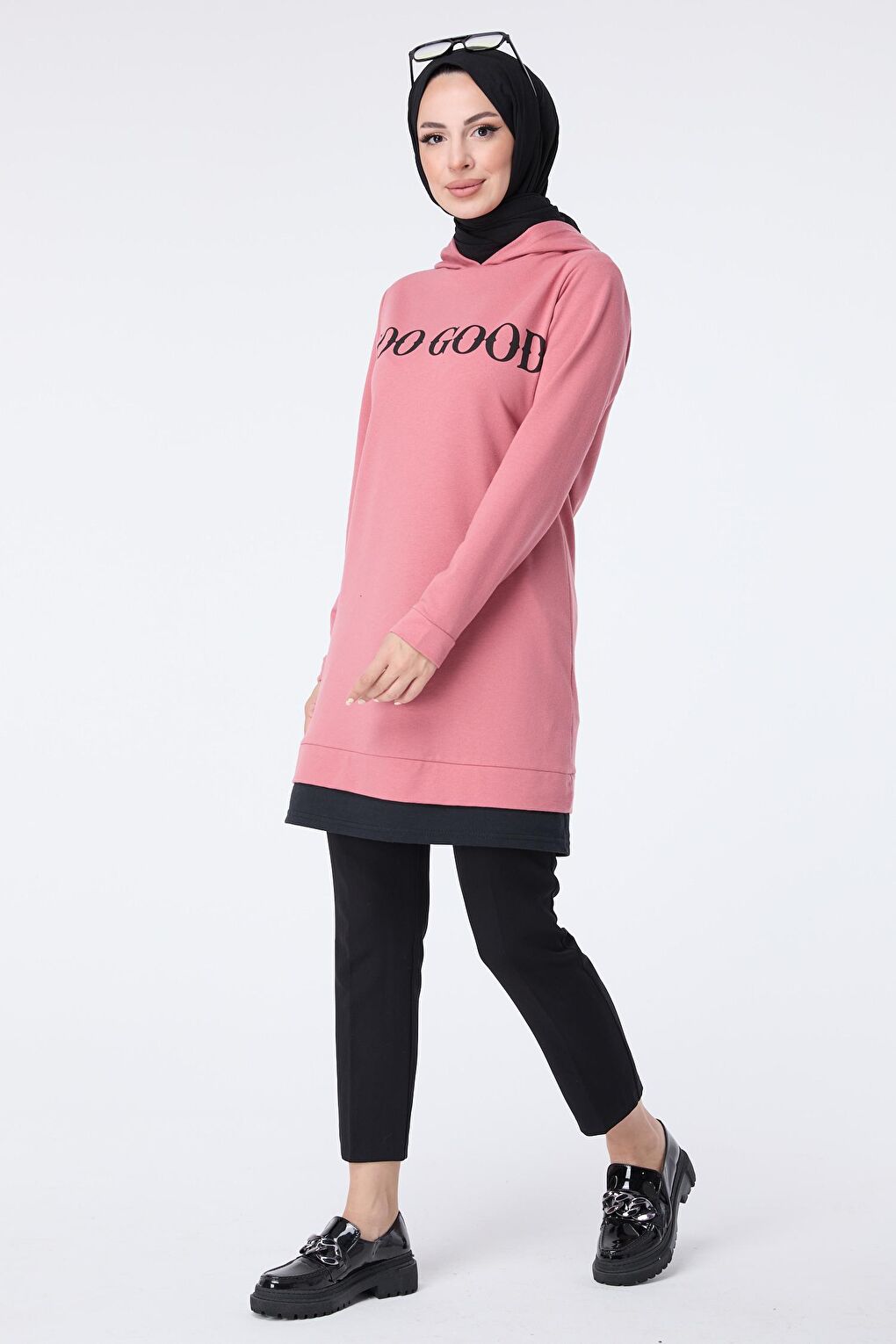 - نام : Düz Kapşonlu Yaka Kadın Pembe Sweat - 13024