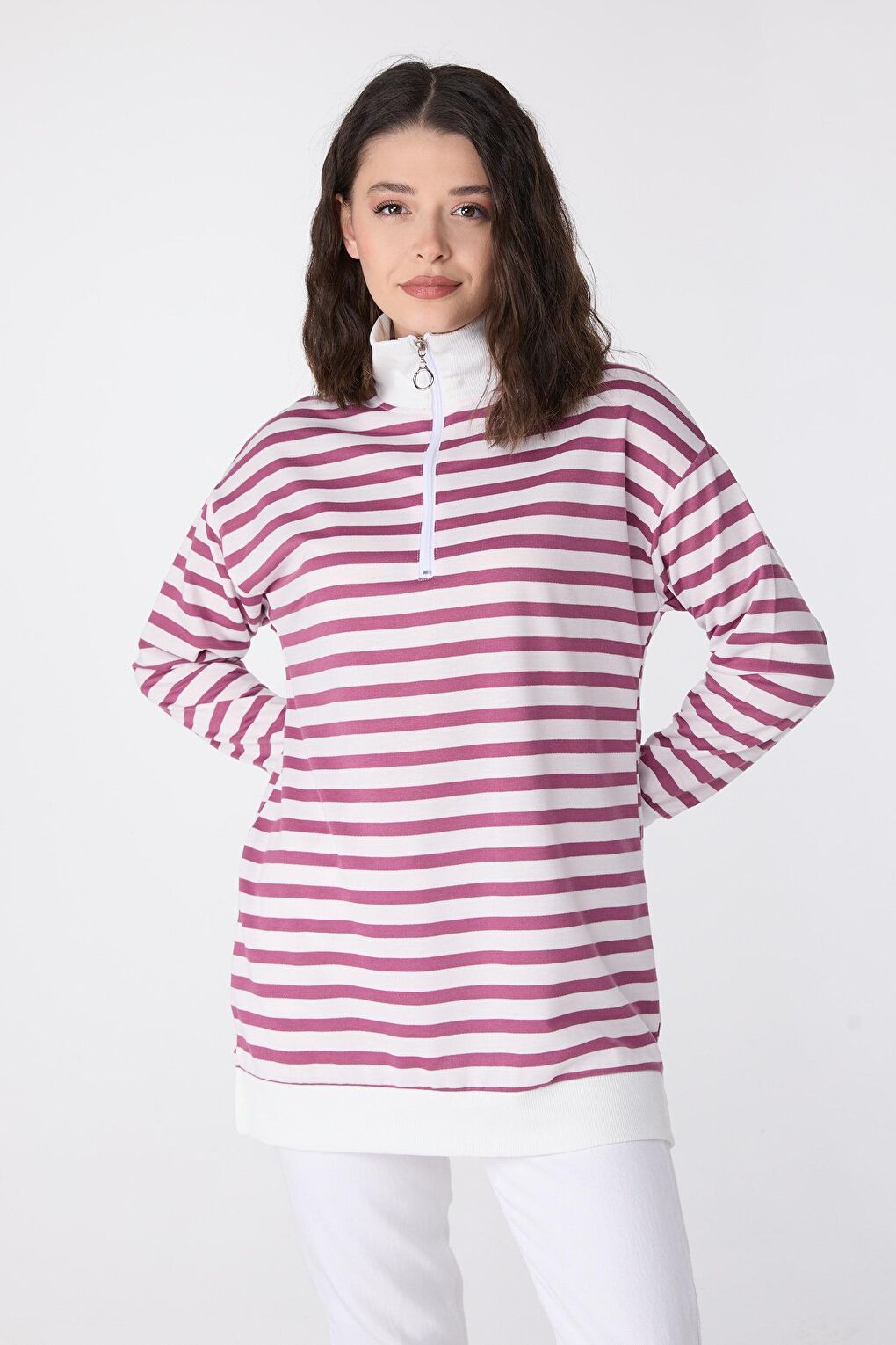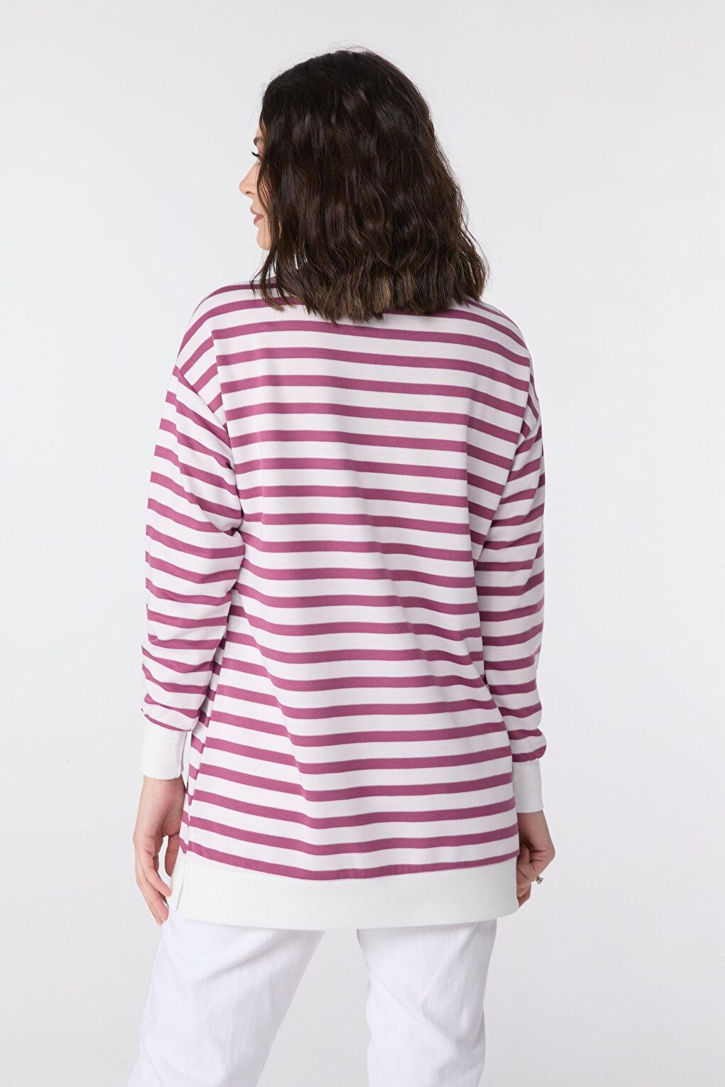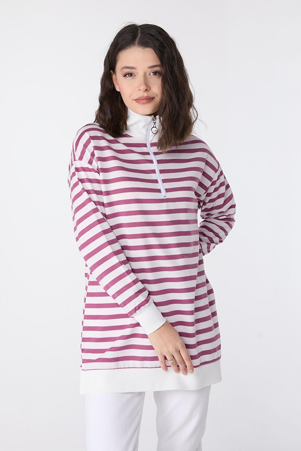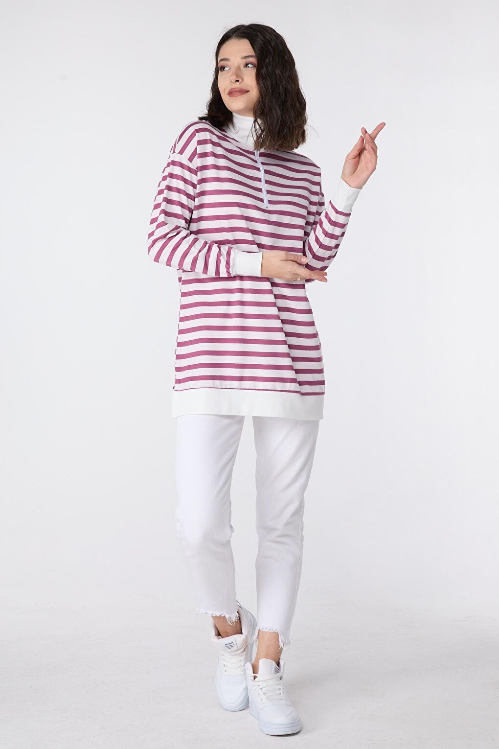 - نام : Düz Yarım Balıkçı Yaka Kadın Lila Çizgili Sweat - 23892