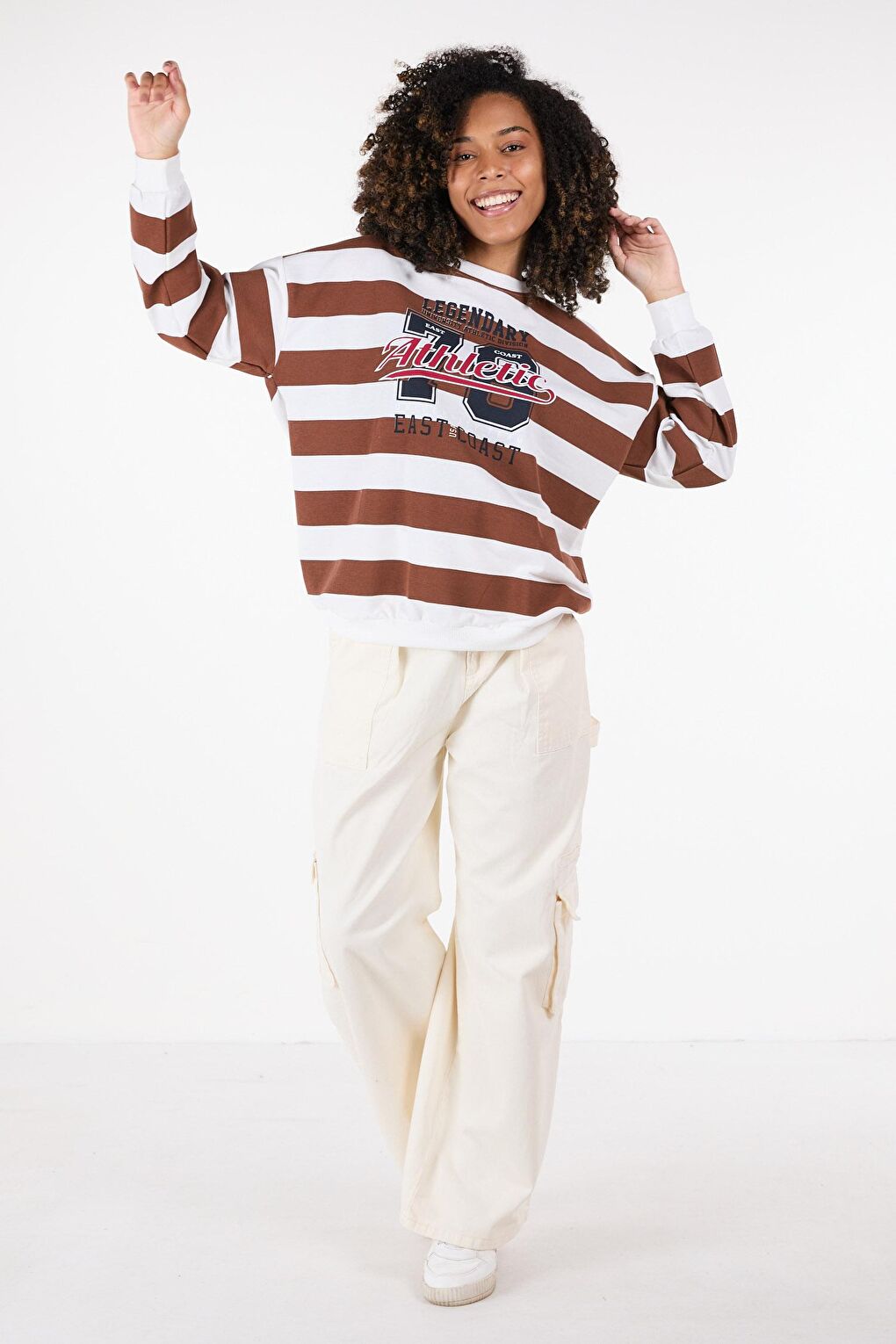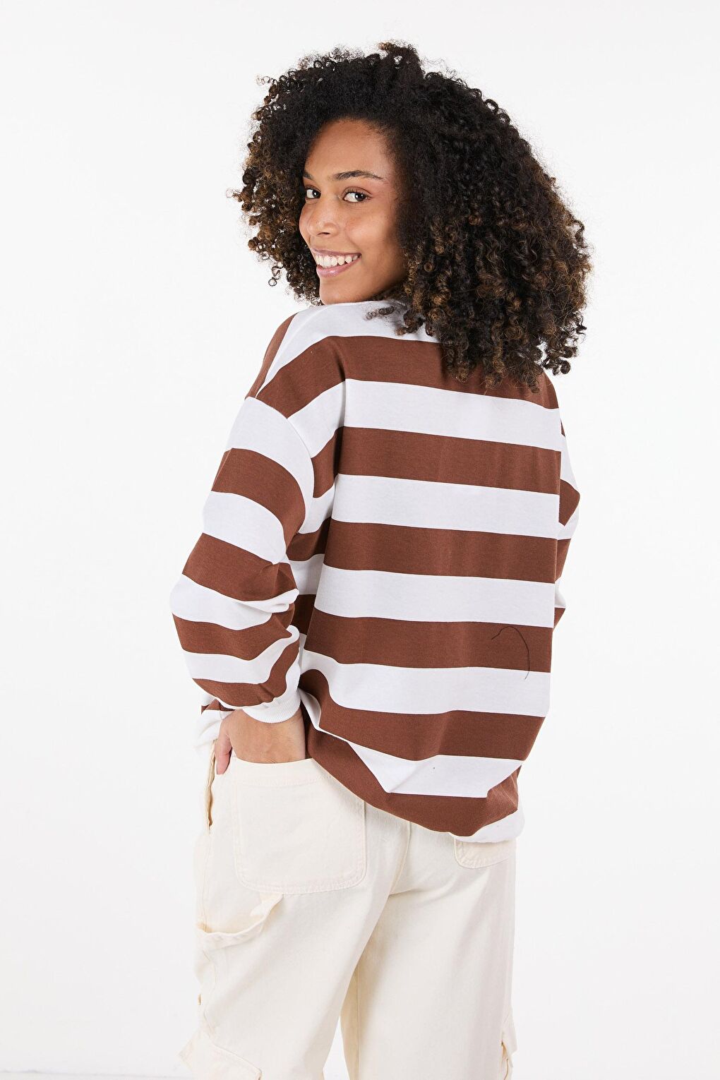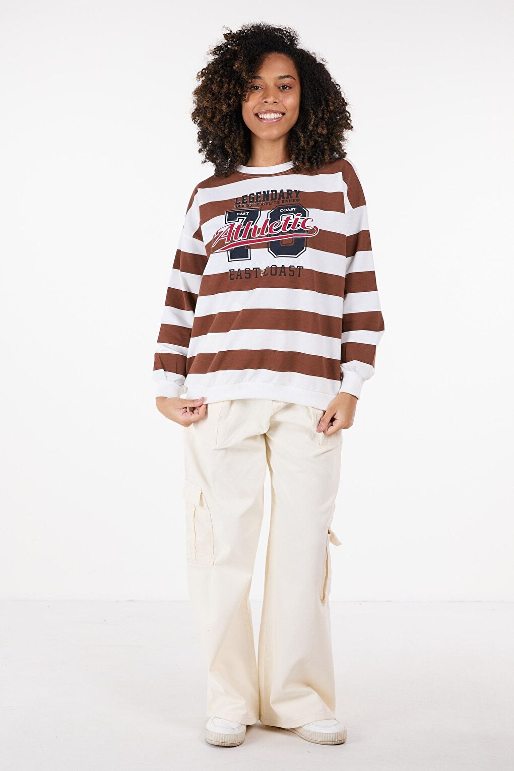 - نام : Düz Bisiklet Yaka Kadın Kahverengi Sweat - 23418
