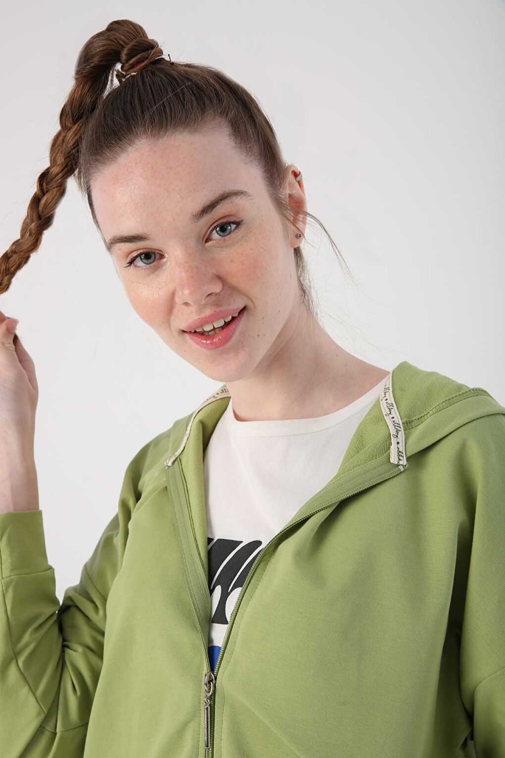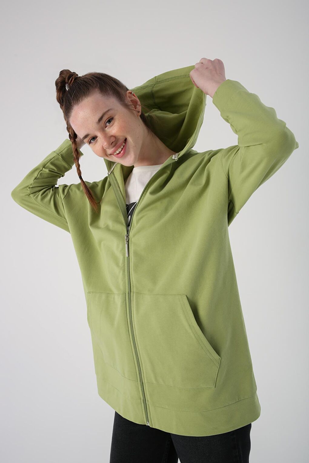 - نام : Açık Yeşil Kapüşonlu Fermuarlı Sweat