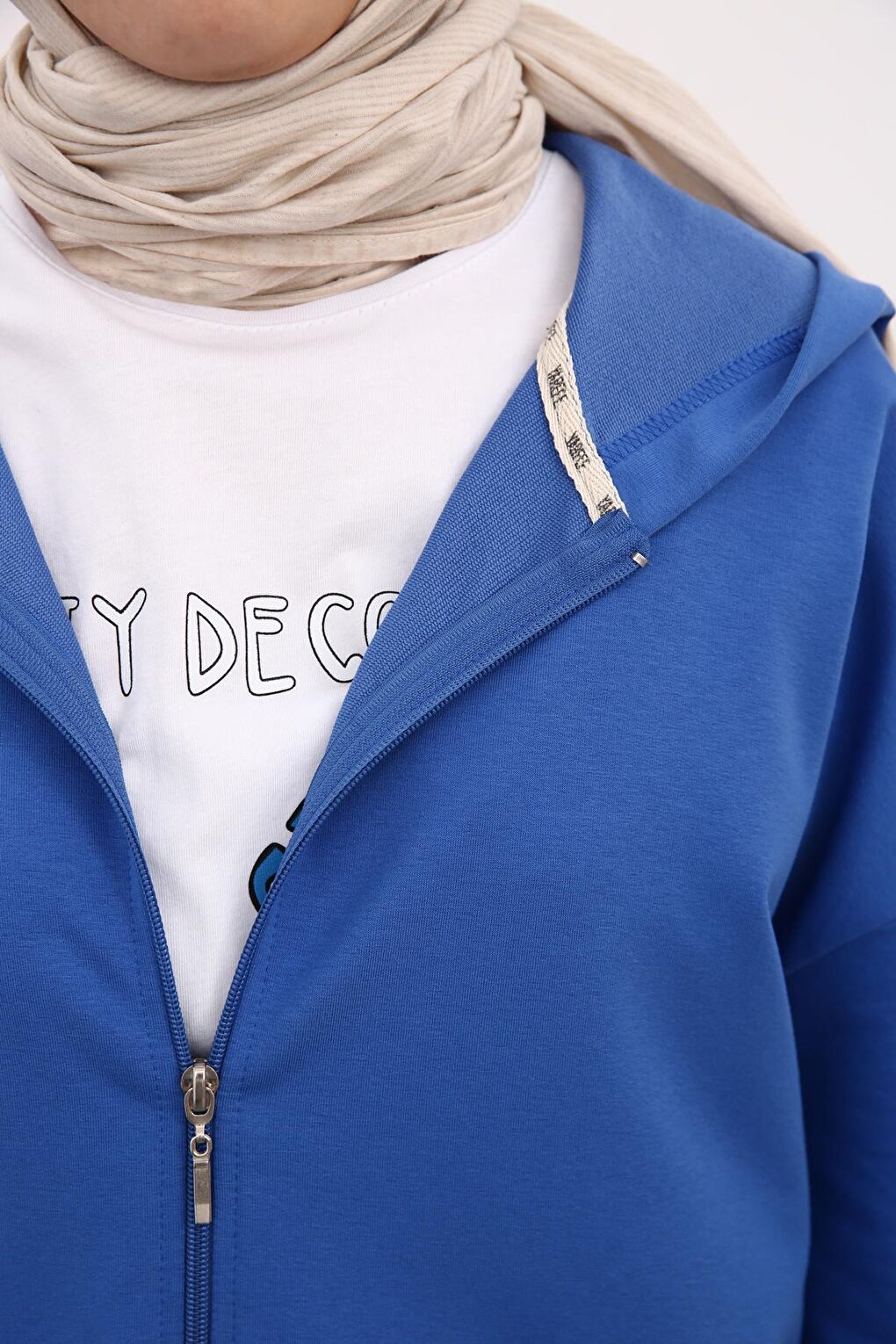 - نام : Çini Mavi Kapüşonlu Fermuarlı Sweat