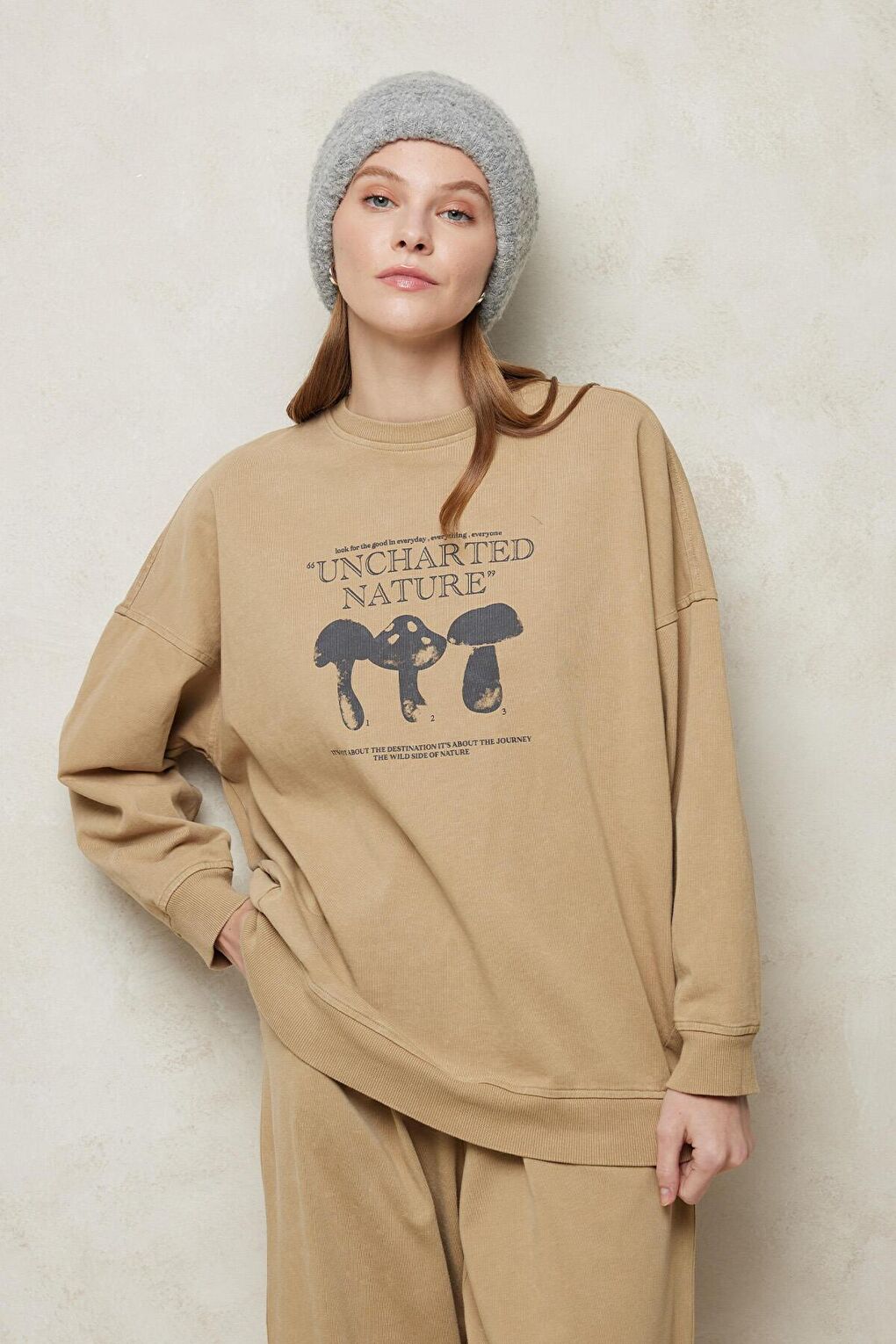 - نام : Soluk Efektli Baskılı Sweatshırt Kum