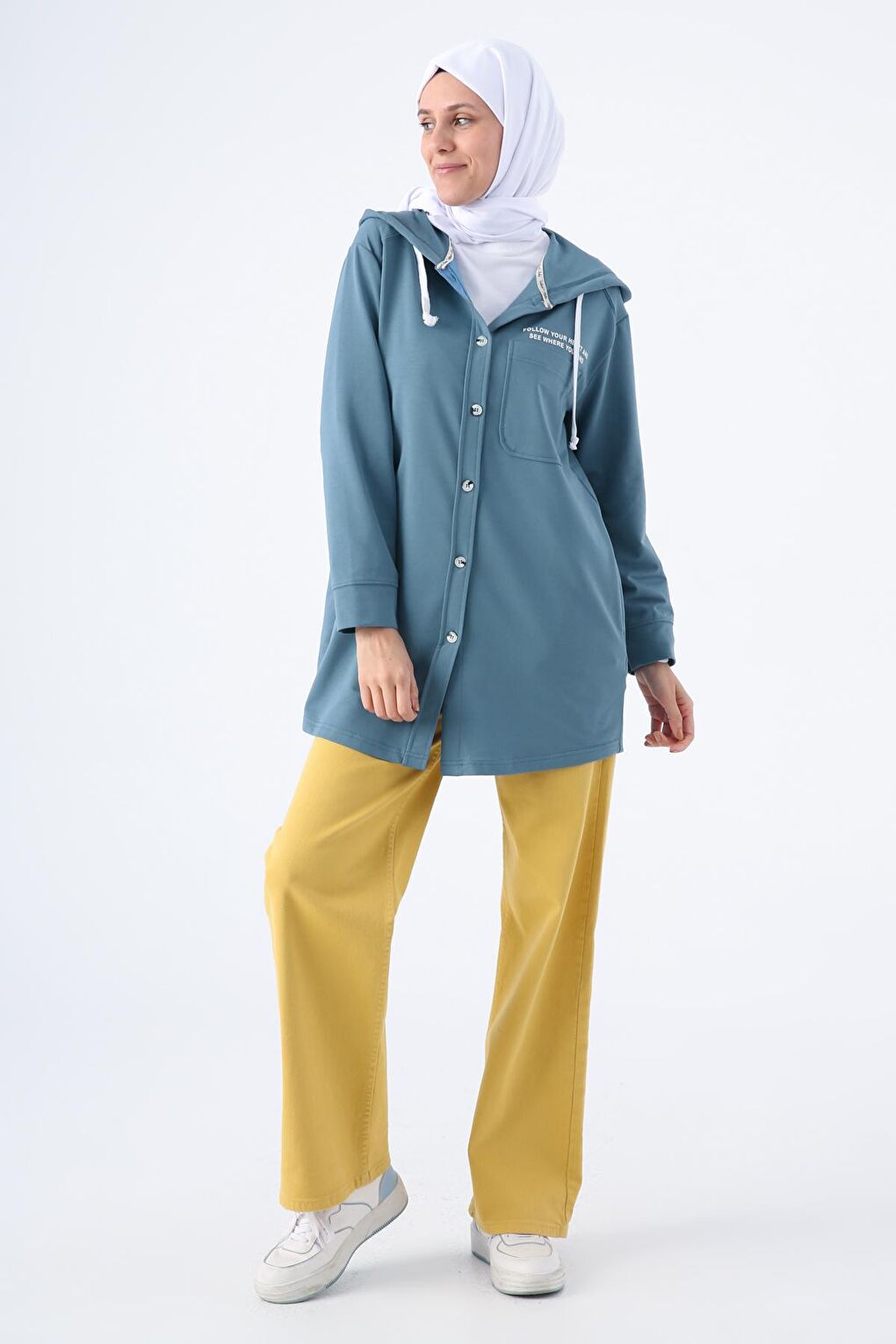 - نام : Koyu Mavi Kapüşonlu Düğmeli Örme Hırka