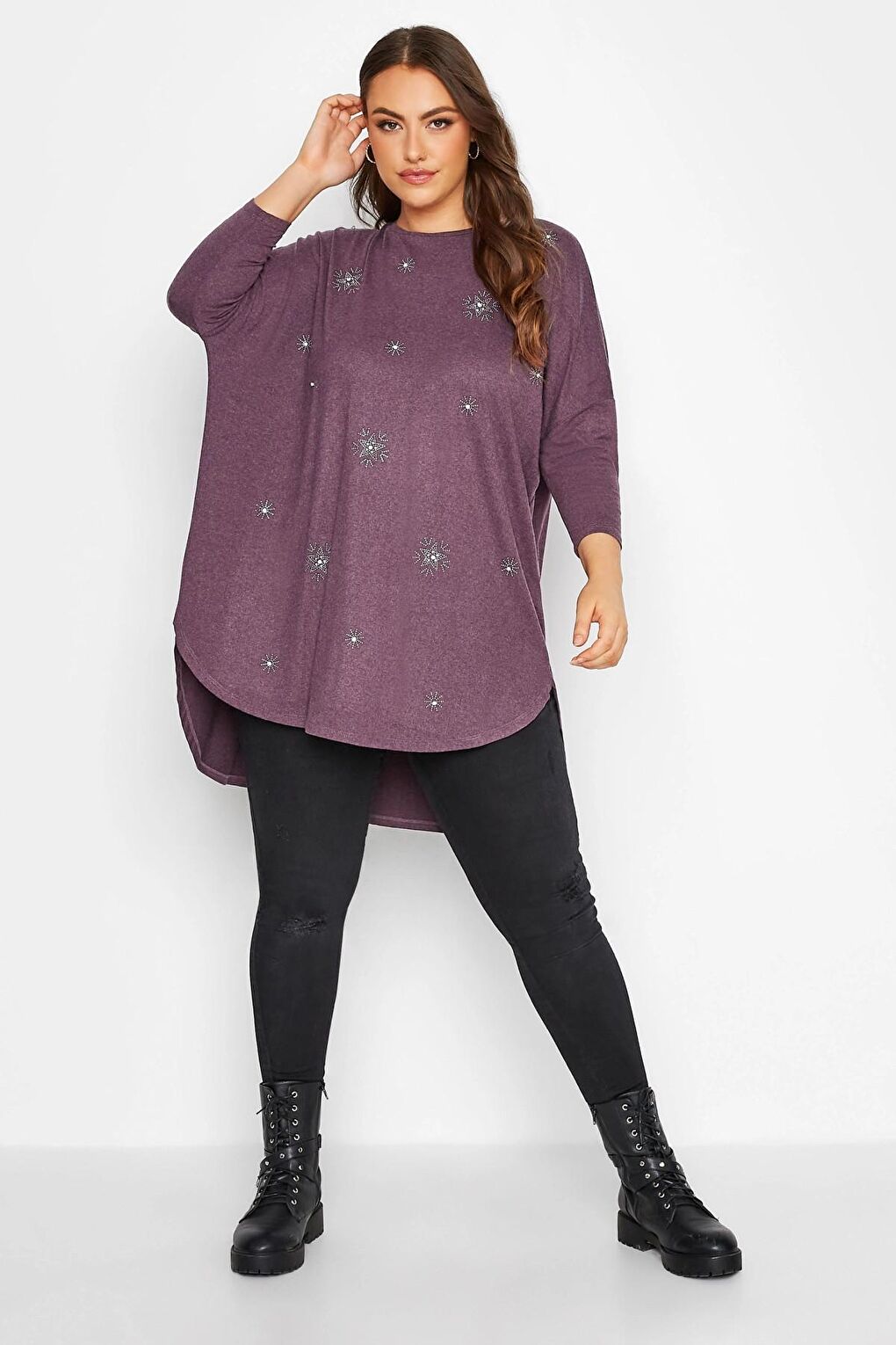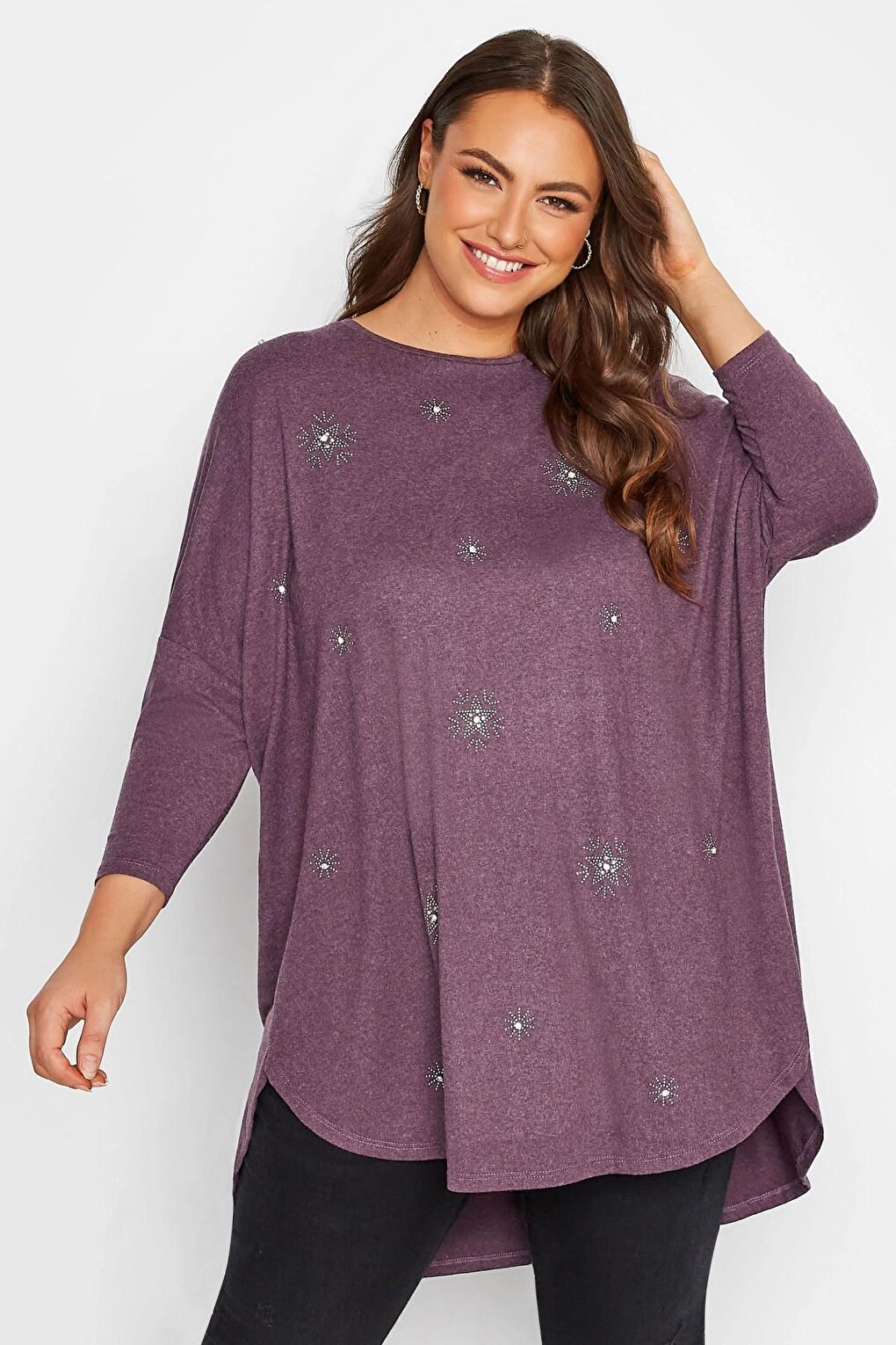 - نام : Büyük Beden Bisiklet Yaka Uzun Yollu Taş Detaylı Bluz 300223
