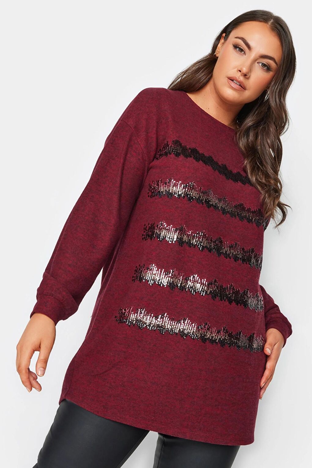- نام : Büyük Beden Bisiklet Yaka Payet İşlemeli Yarım Kol Bluz 285021