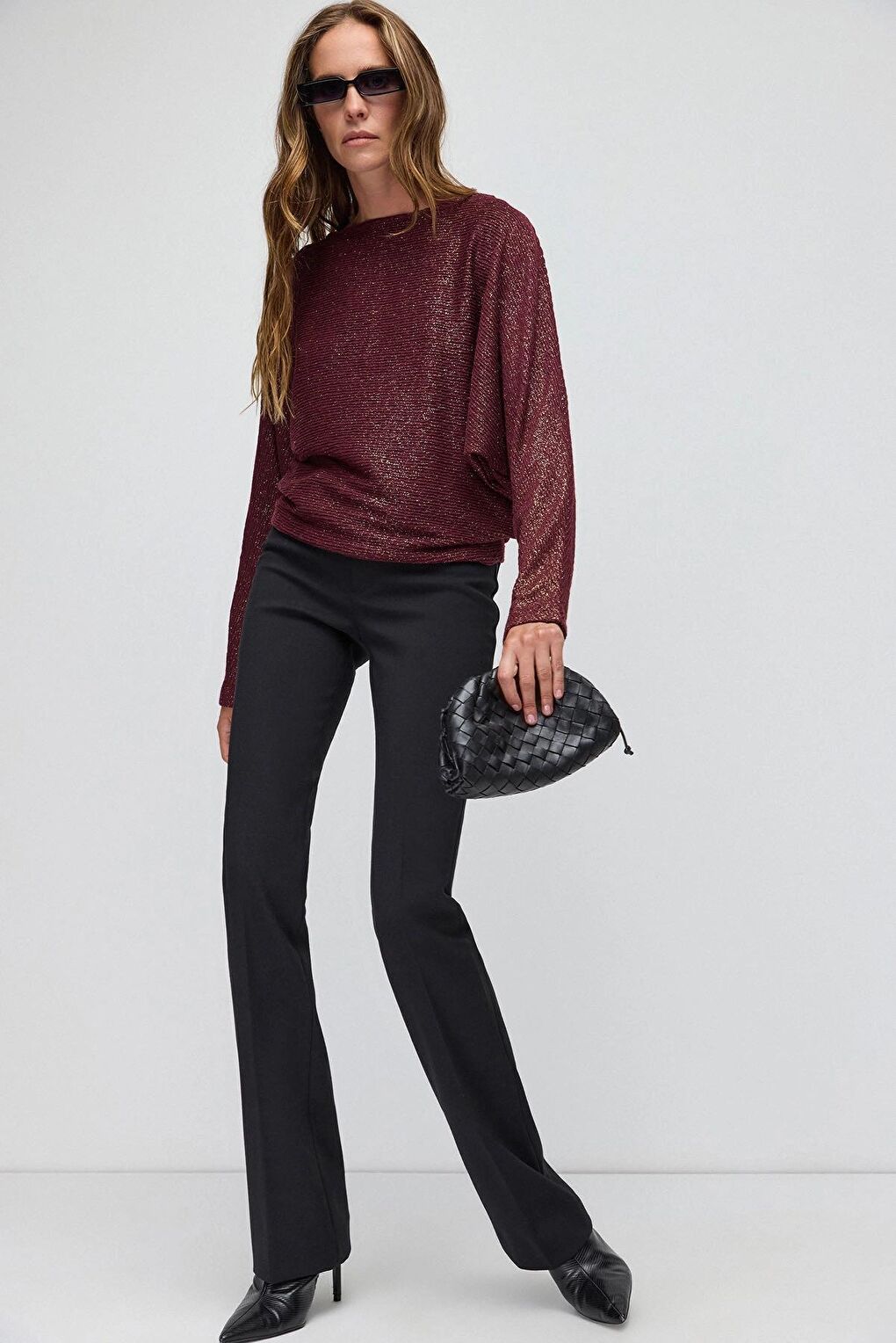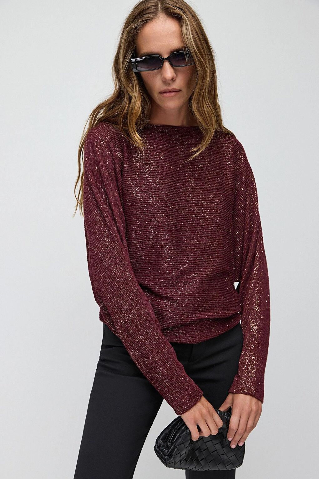 - نام : Geniş Bisiklet Yaka Yarasa Kol Sim Detaylı Uzun Kollu Bluz 12402708
