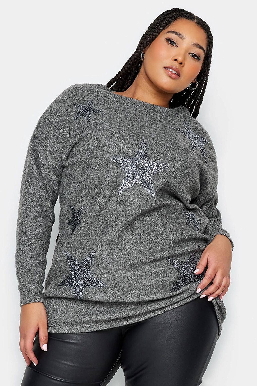 - نام : Büyük Beden Bisiklet Yaka Uzun Kollu Yumuşak Dokulu Payetli Bluz 302731