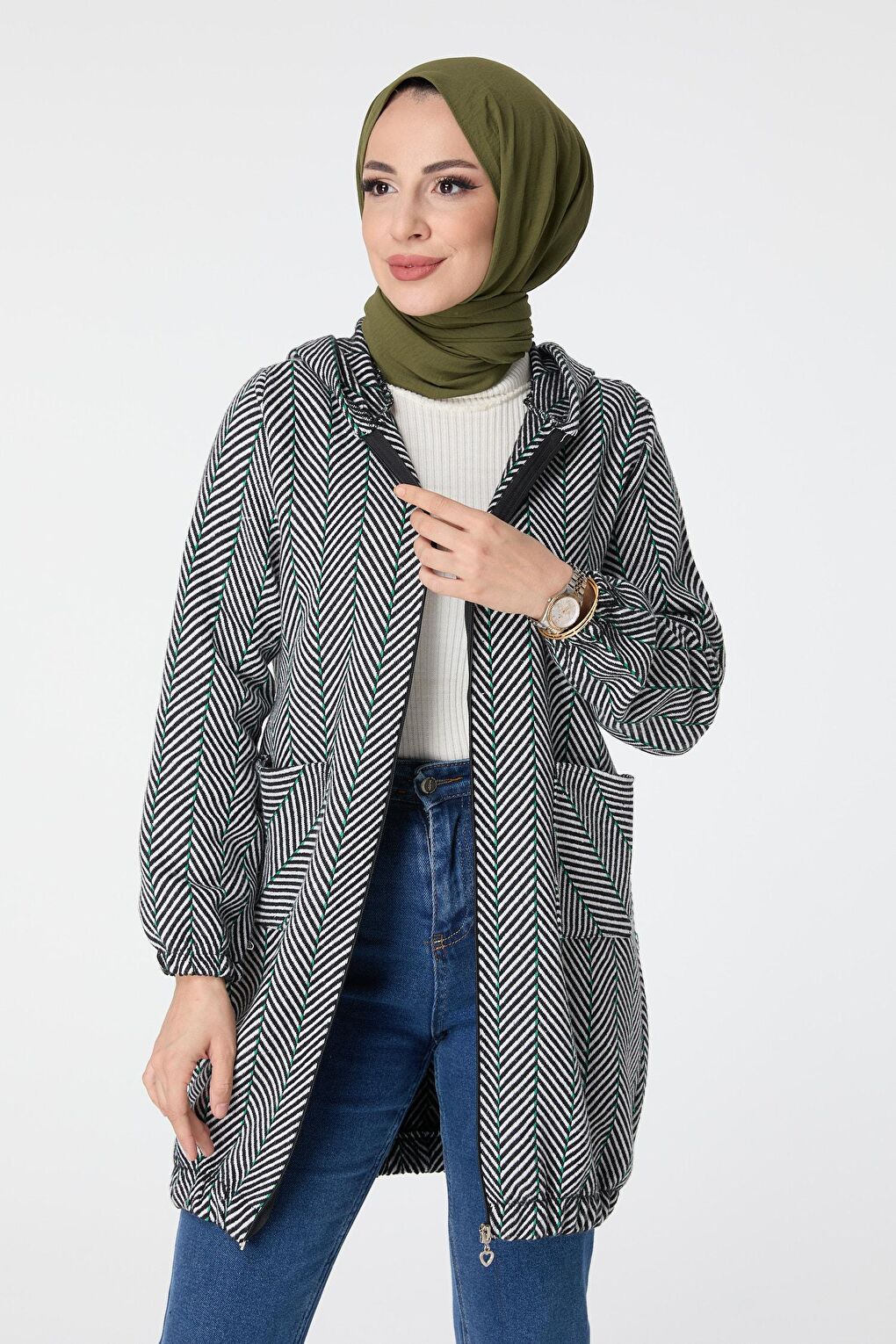 - نام : Düz Kapşonlu Yaka Kadın Yeşil Trenç Kap - 13035