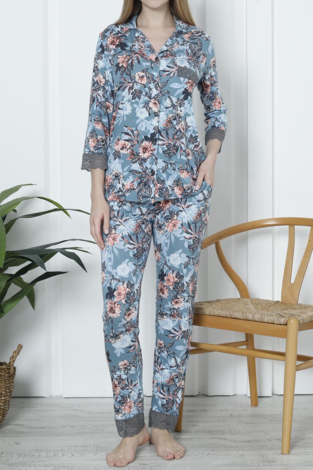 - نام : Kadın Pijama Takımı Cepli Düğmeli Likralı Dantelli