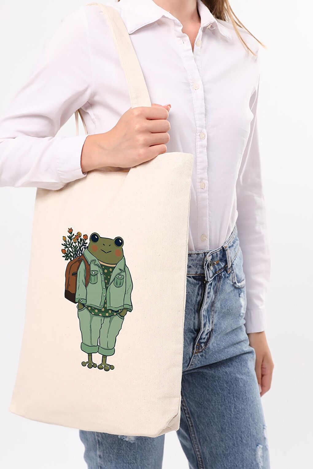 - نام : Lady Frog Baskılı Kanvas Omuz Çantası