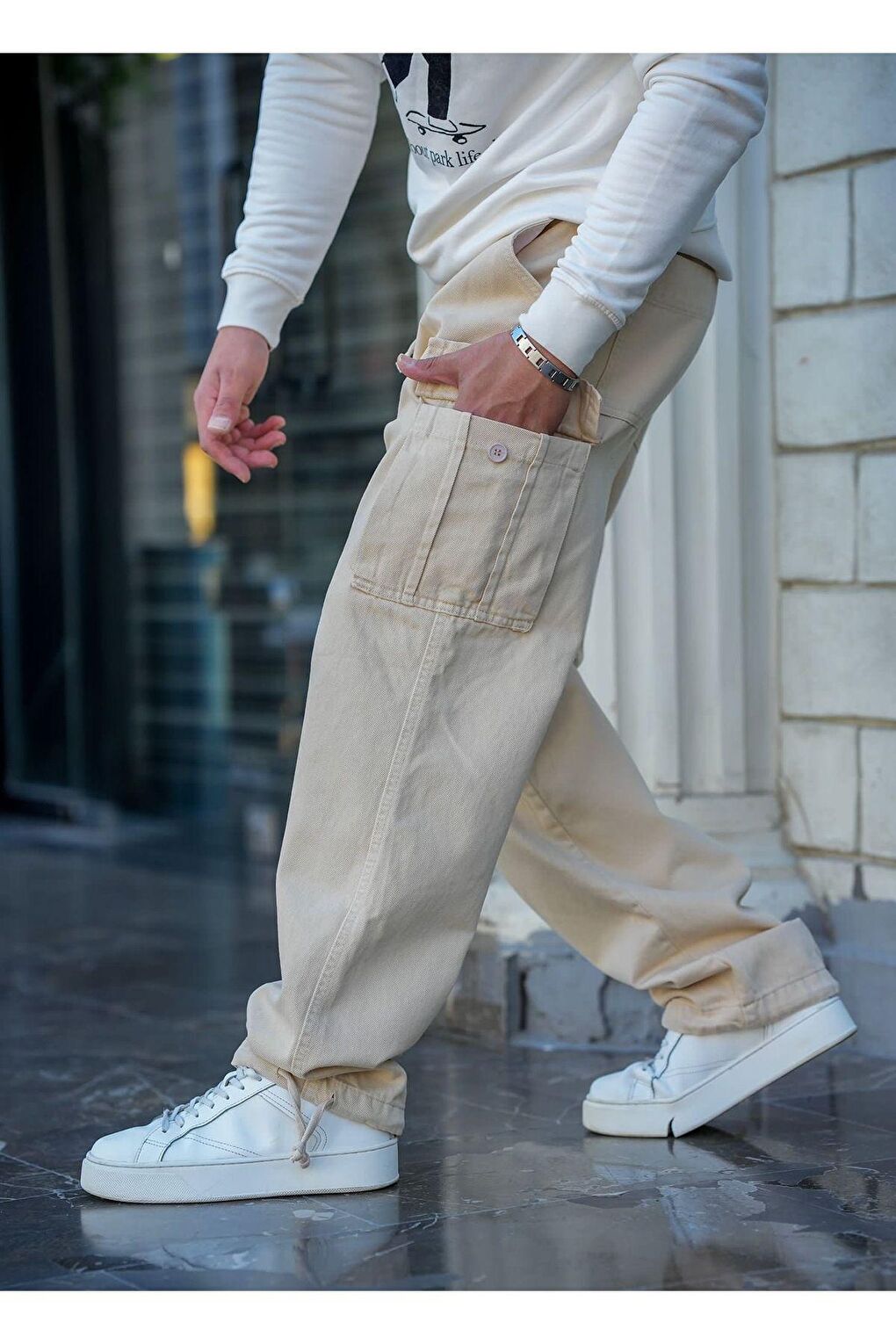 - نام : Erkek Gri Bagcıklı Kargo Cepli Baggy Denim Pantolon