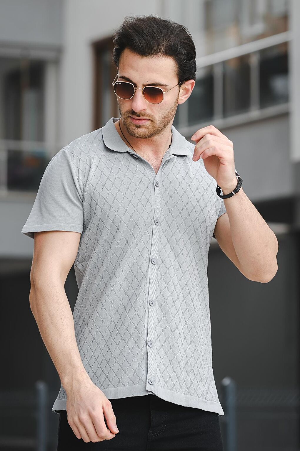 - نام : Ht 340015 Polo Yaka Desenli Slim Fit Kısa Kol Triko Erkek Gömlek