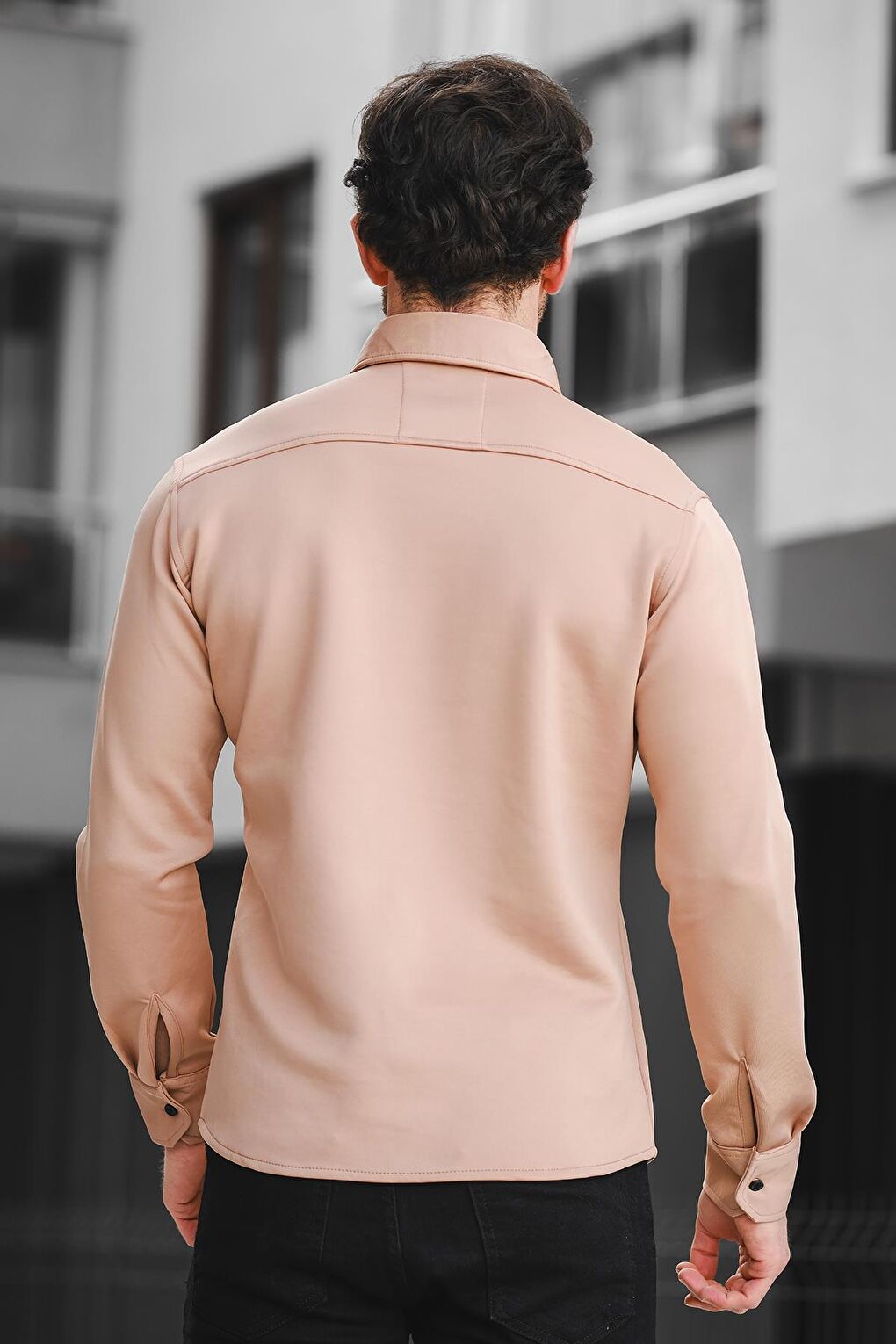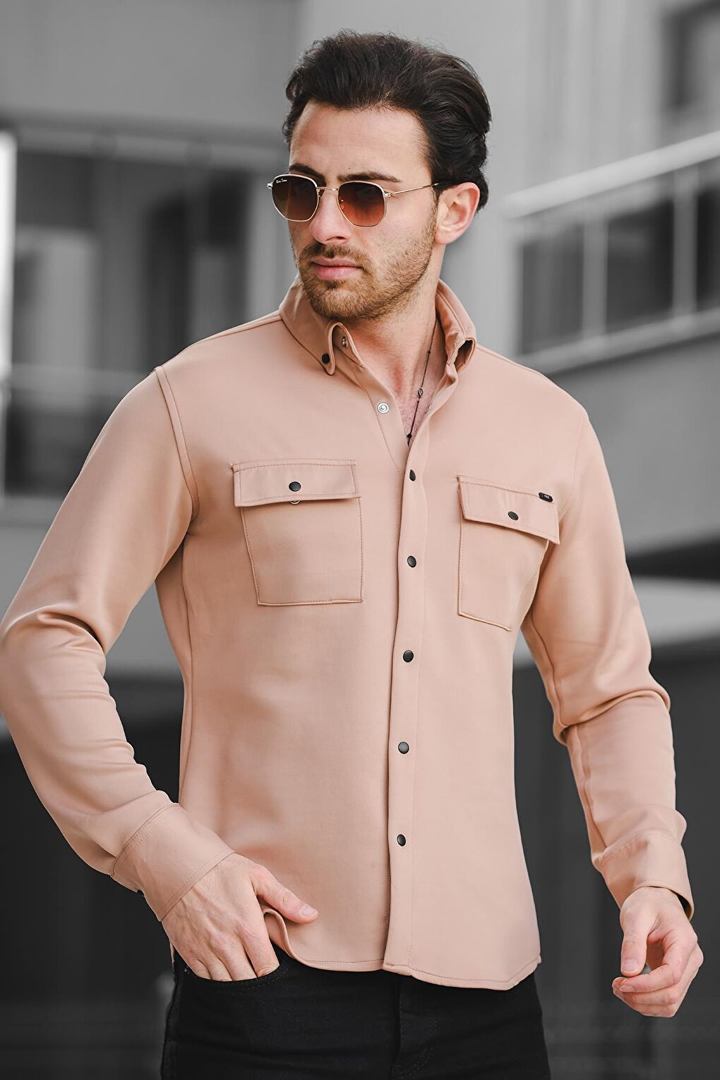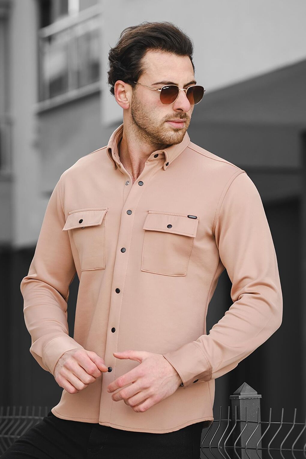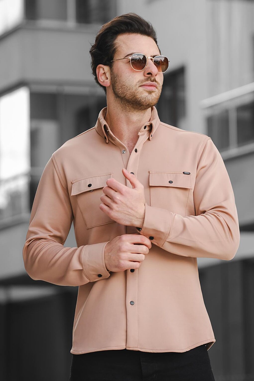 - نام : Yx 16703 Çift Cep Kapaklı Çıt Çıtlı Likralı Scuba Kumaş Erkek Gömlek