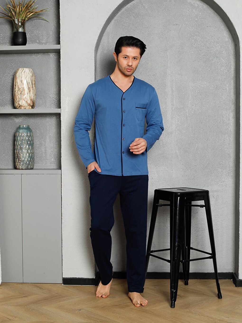 - نام : Erkek Pijama Takımı Uzun Kollu Süprem Boydan Düğmeli Üst Cepli Pamuklu M58262315