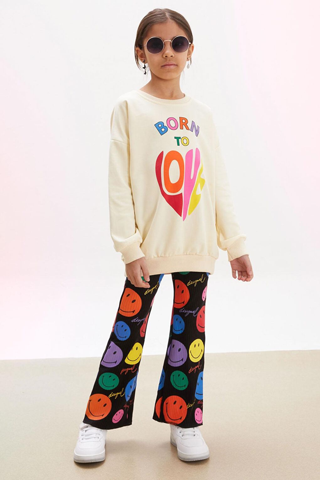 - نام : Krem Uzun Kollu Gülen Yüz İspanyol Paça Pantolonlu Takım 17929
