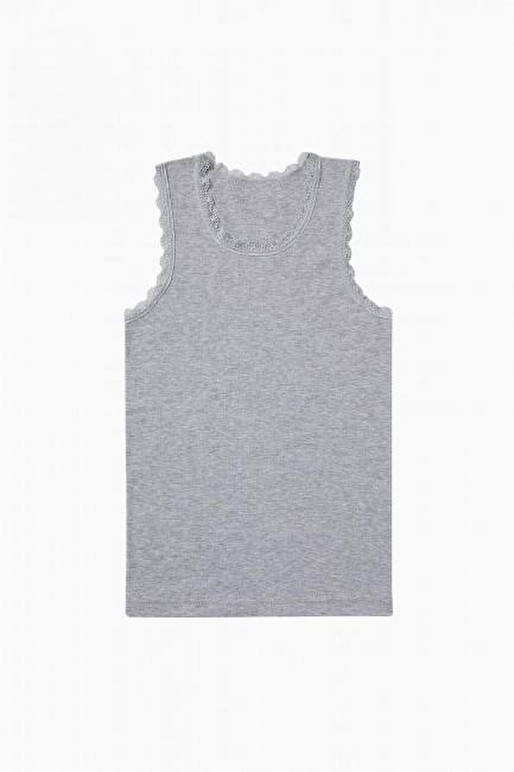 - نام : Geniş Askılı Pamuk Dantelli Çocuk Atlet Gri TEKLI