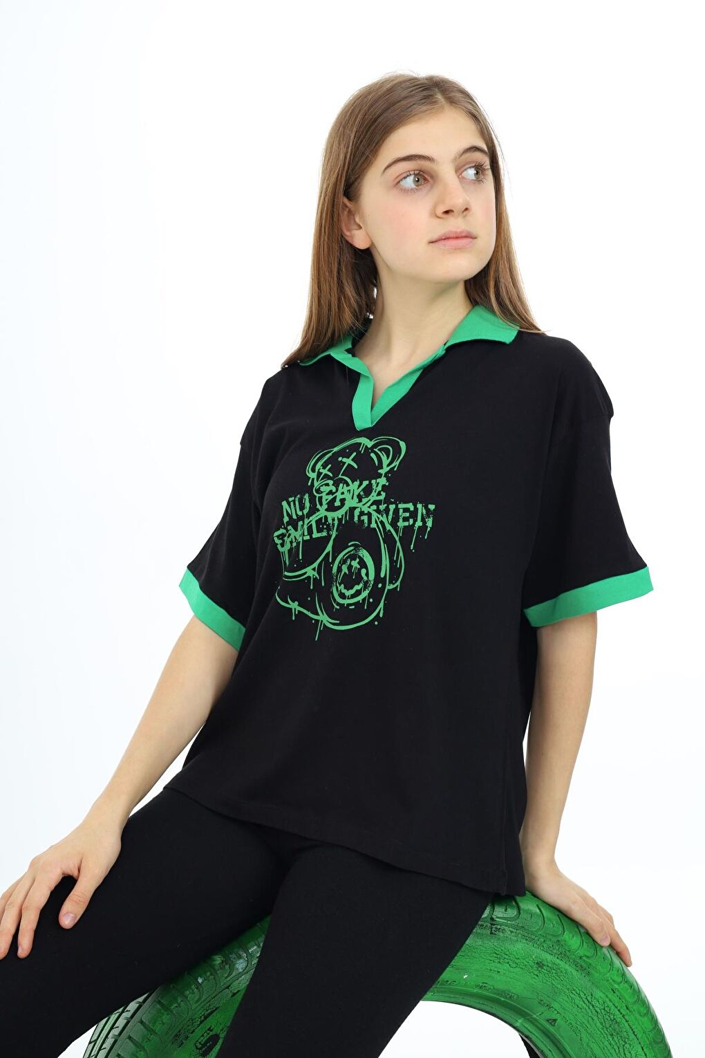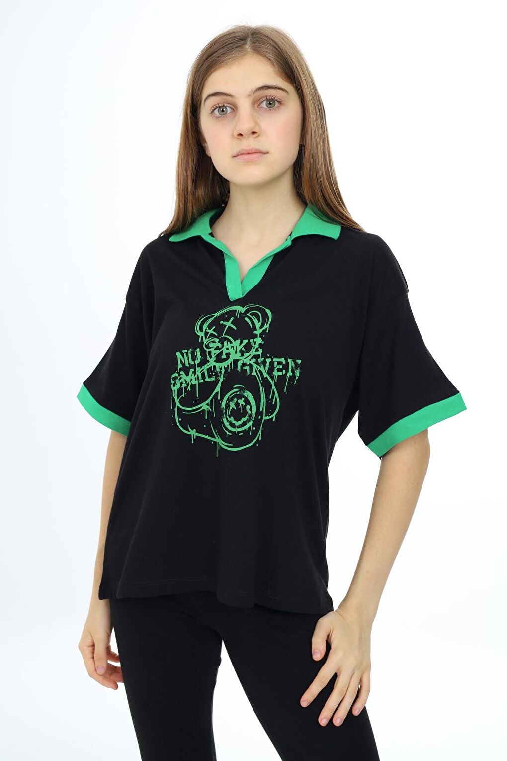- نام : Kız Çocuk Polo Yaka Garnili T-Shirt 9-14 Yaş Lx018