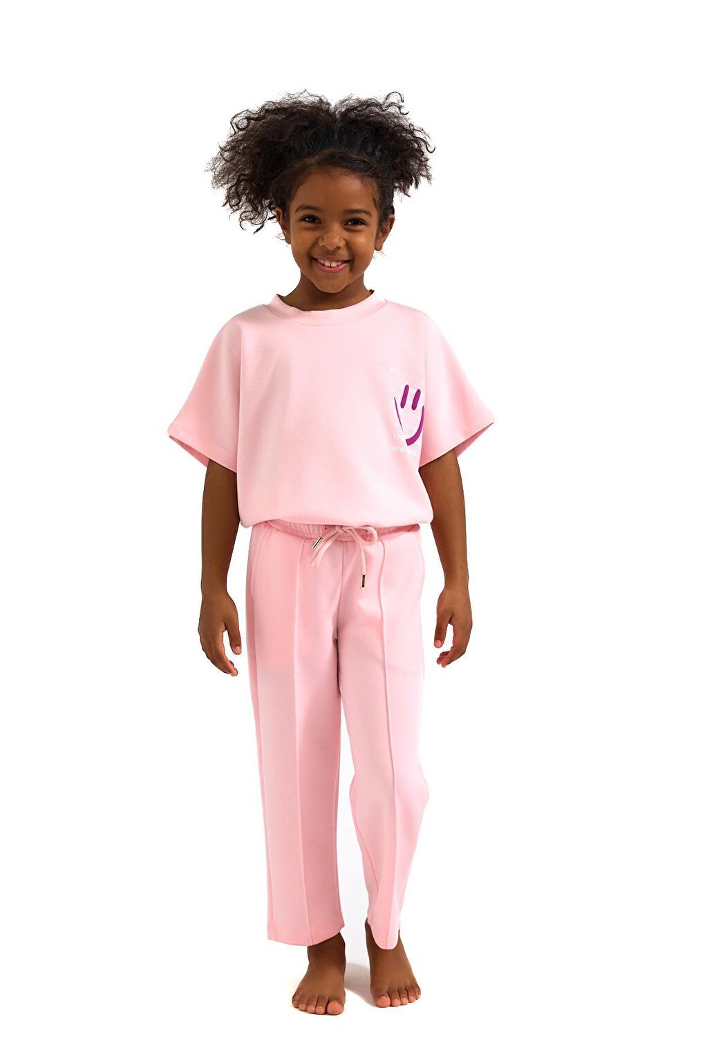 - نام : Kız Çocuk Pembe Renkli Gülen Yüz Baskılı Tişört