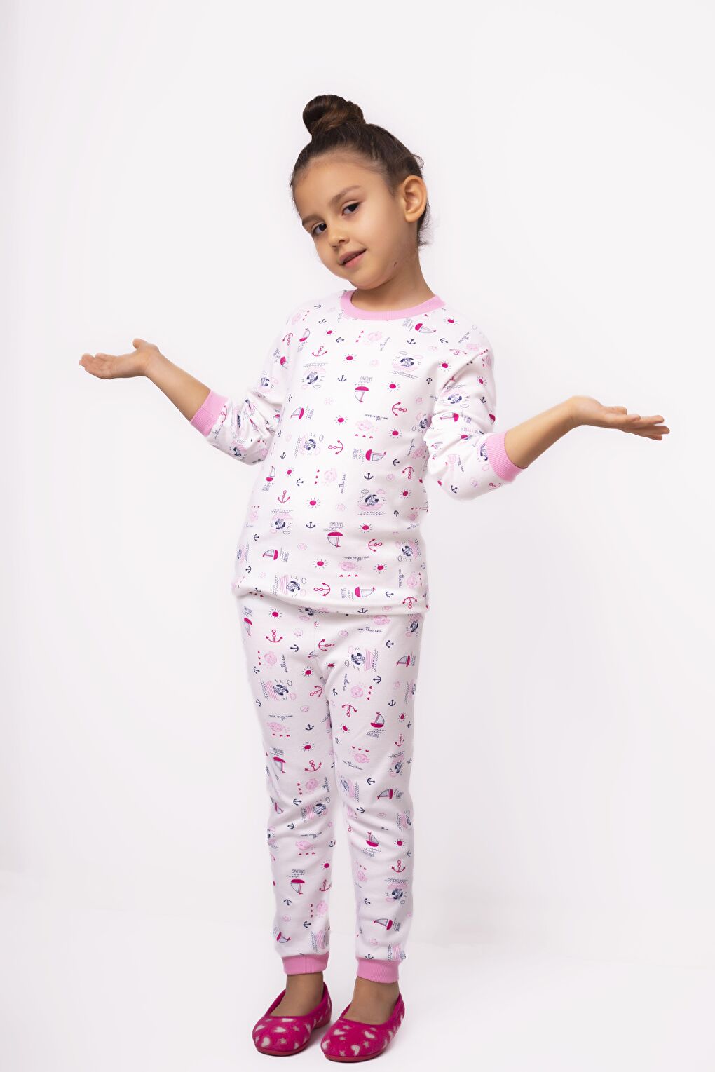 - نام : Kız Çocuk Interlok Kumaş Örme Basic Baskılı Pijama Takımı