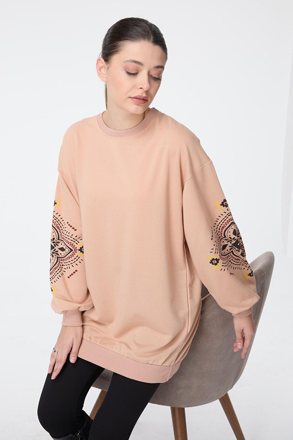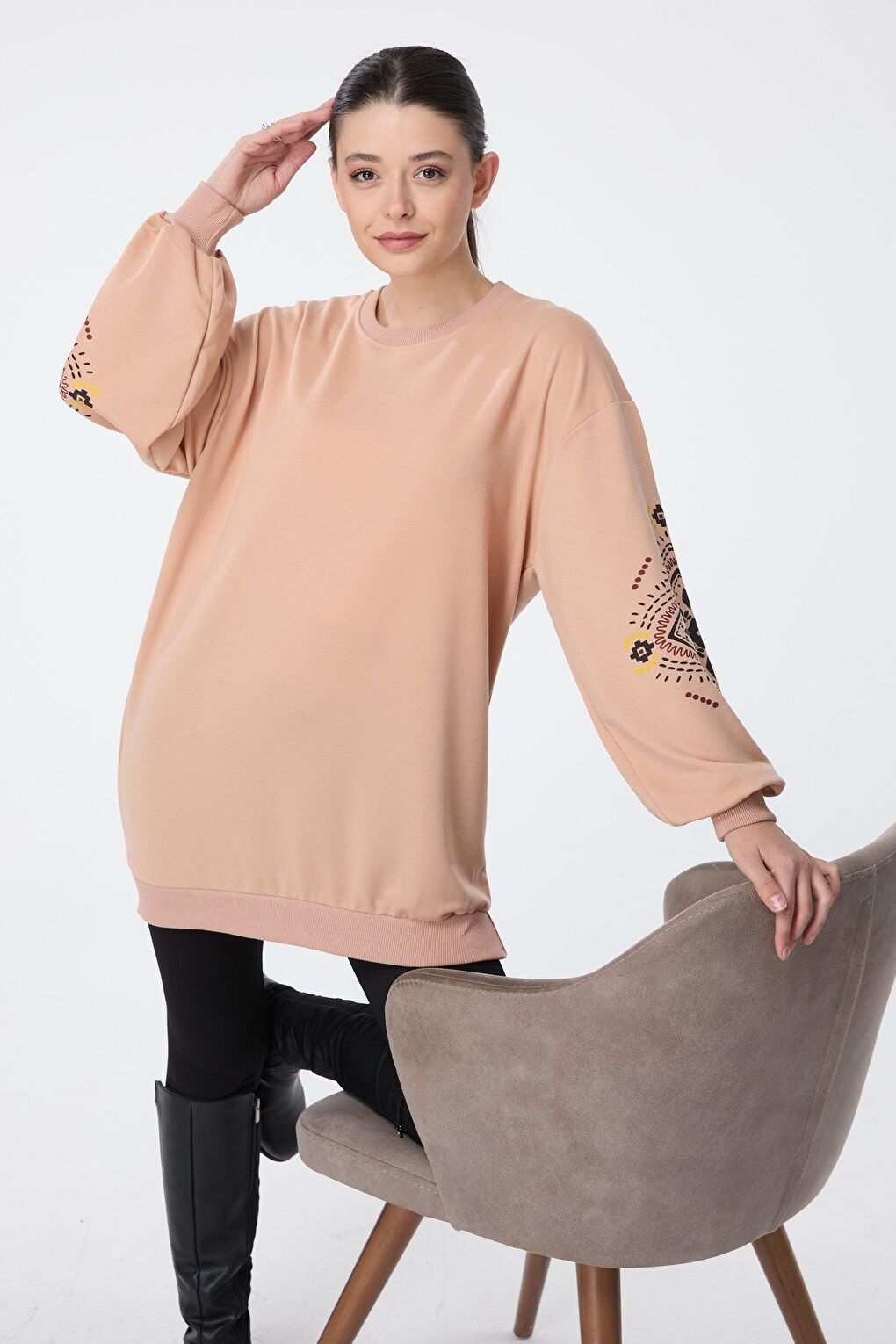 - نام : Düz Bisiklet Yaka Kadın Vizon Sweat - 23129