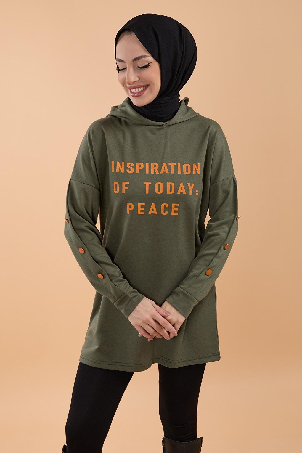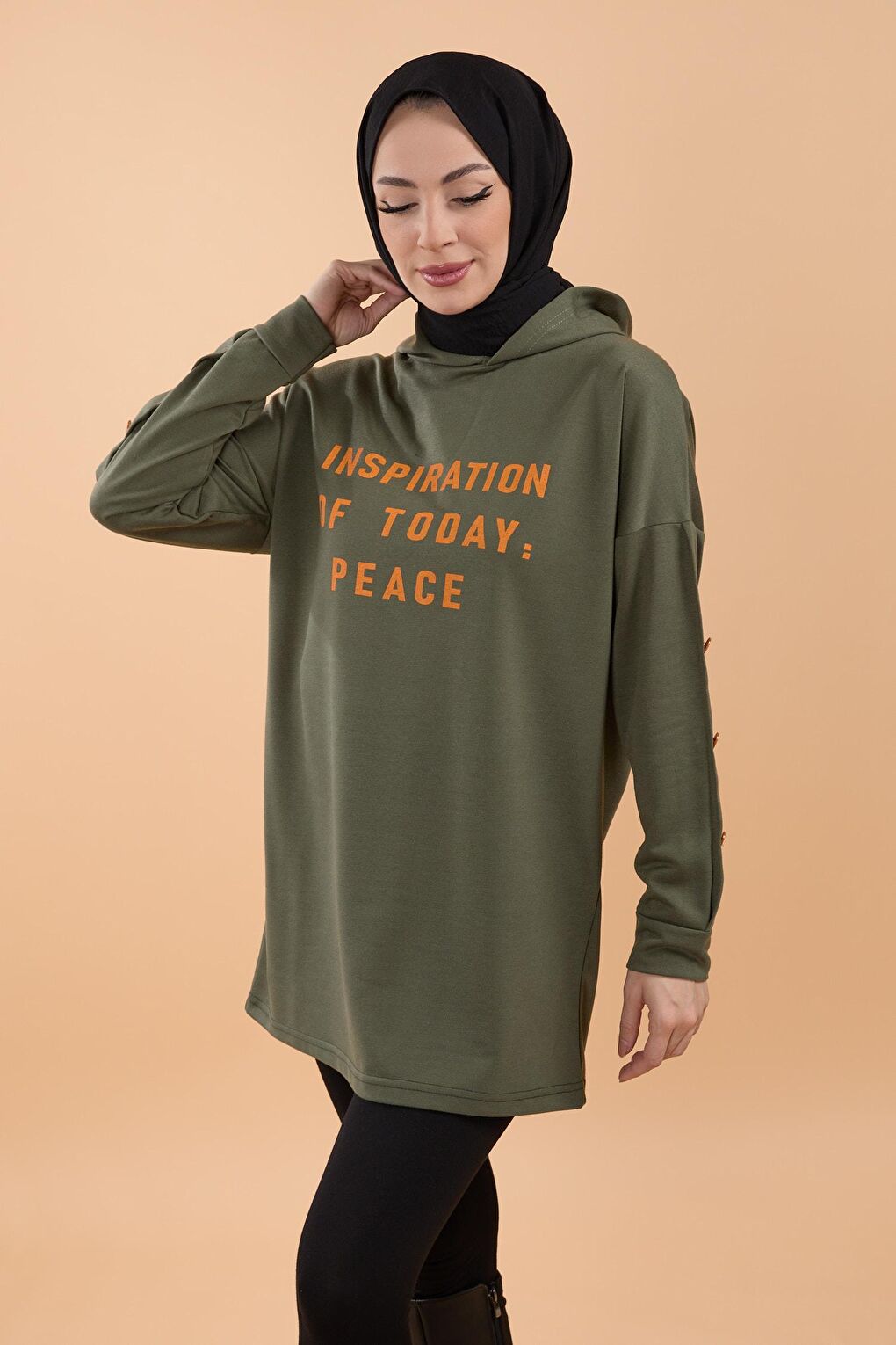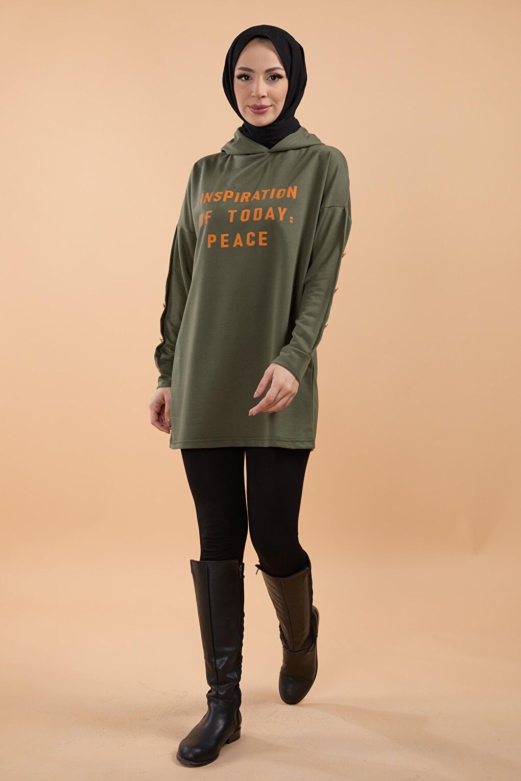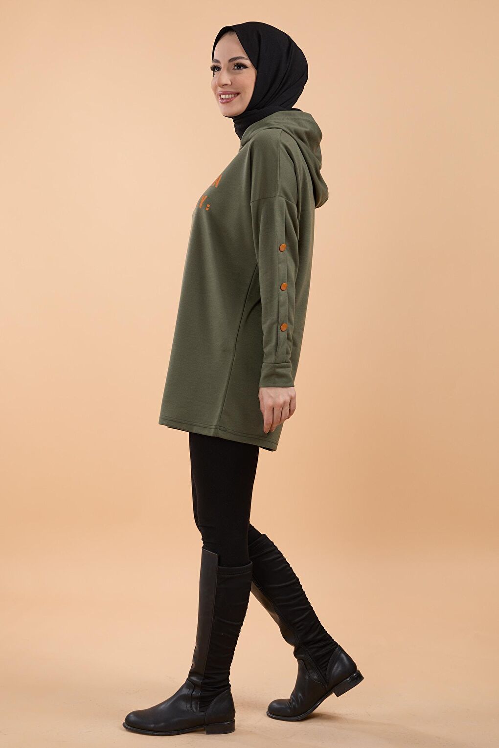 - نام : Düz Bisiklet Yaka Kadın Haki Sweat - 13067