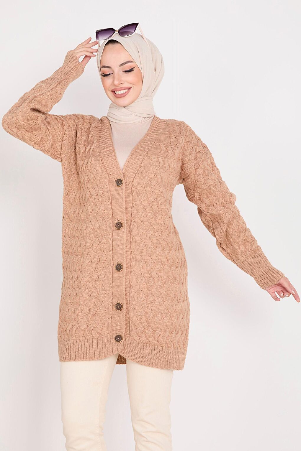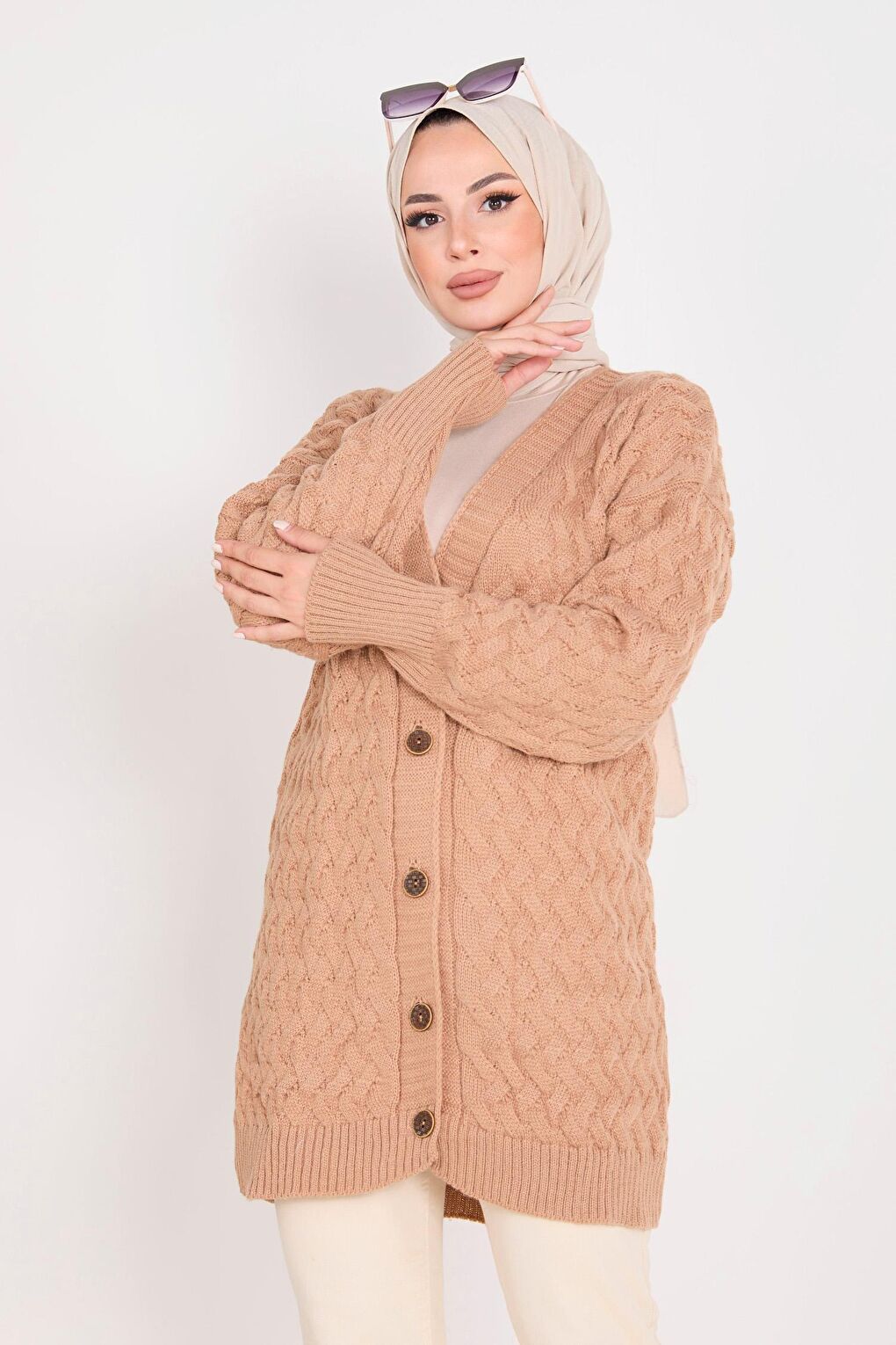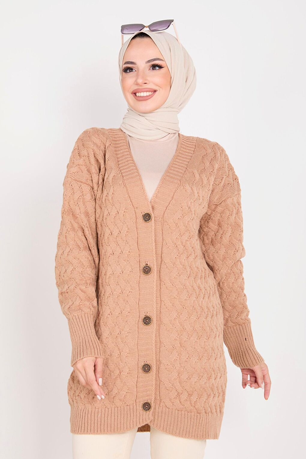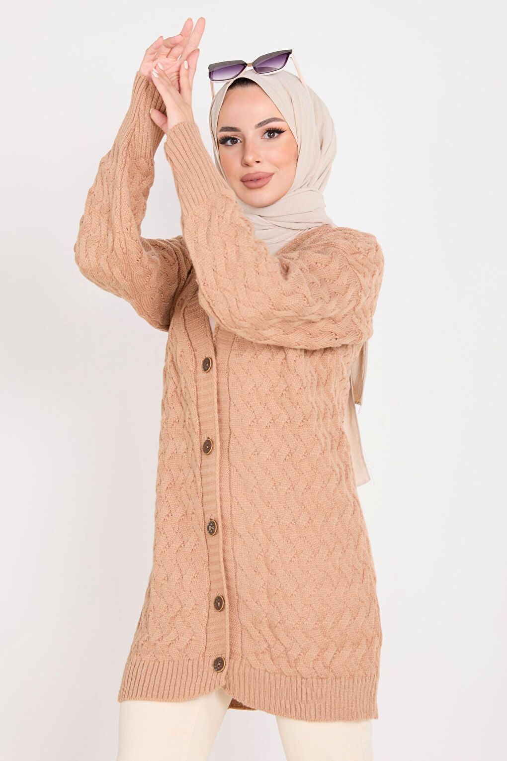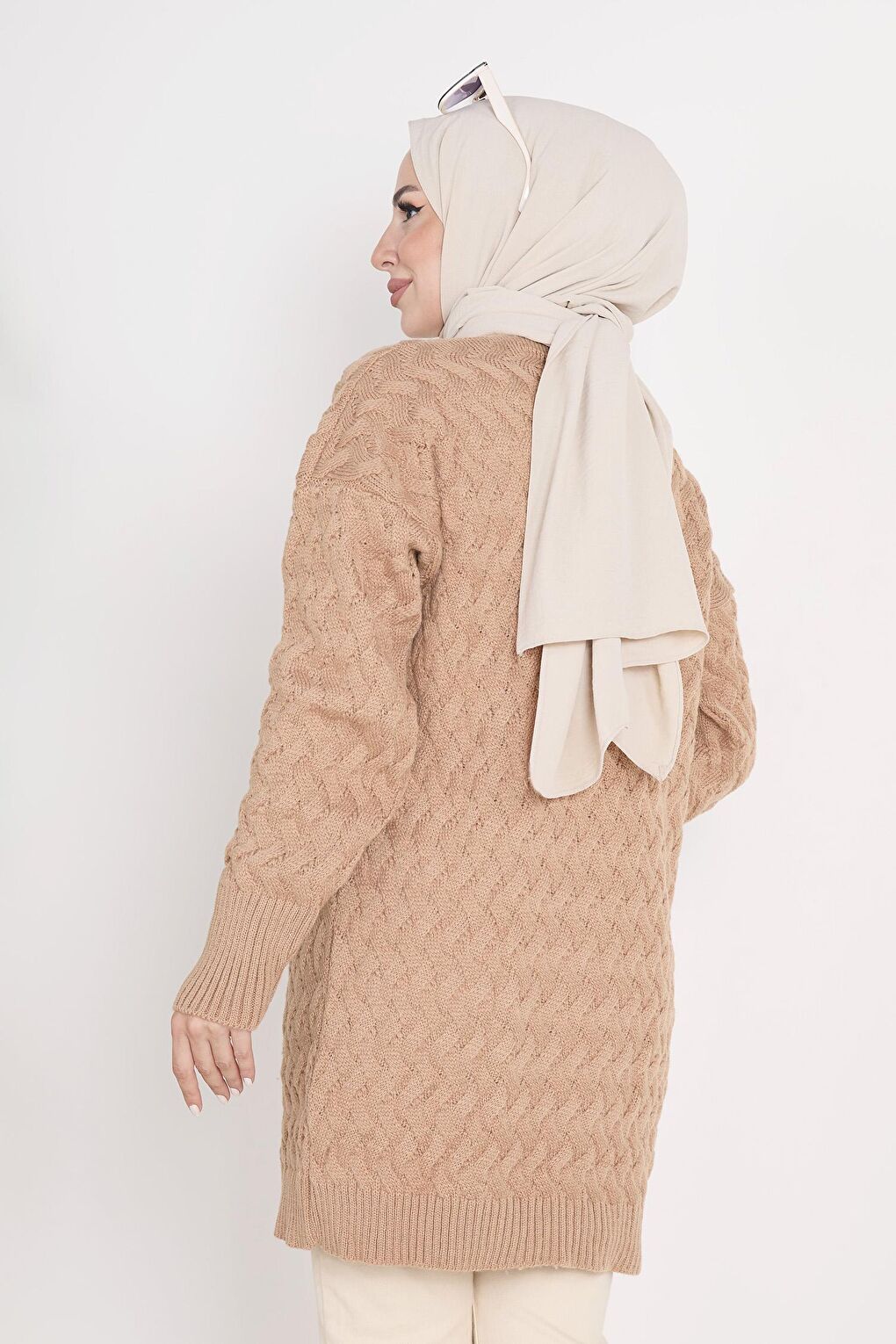 - نام : Düz Ceket Yaka Kadın Vizon Triko Hırka - 23099