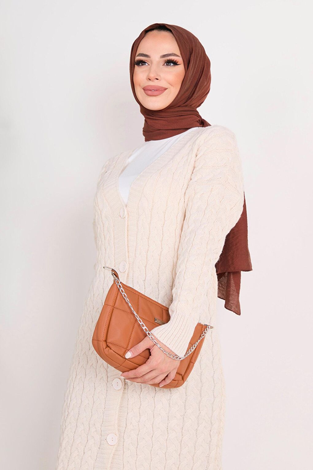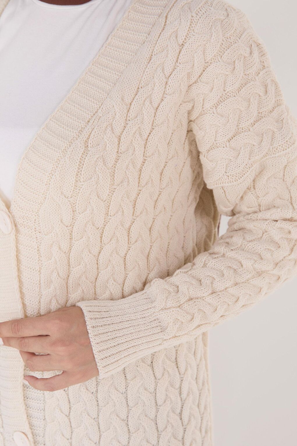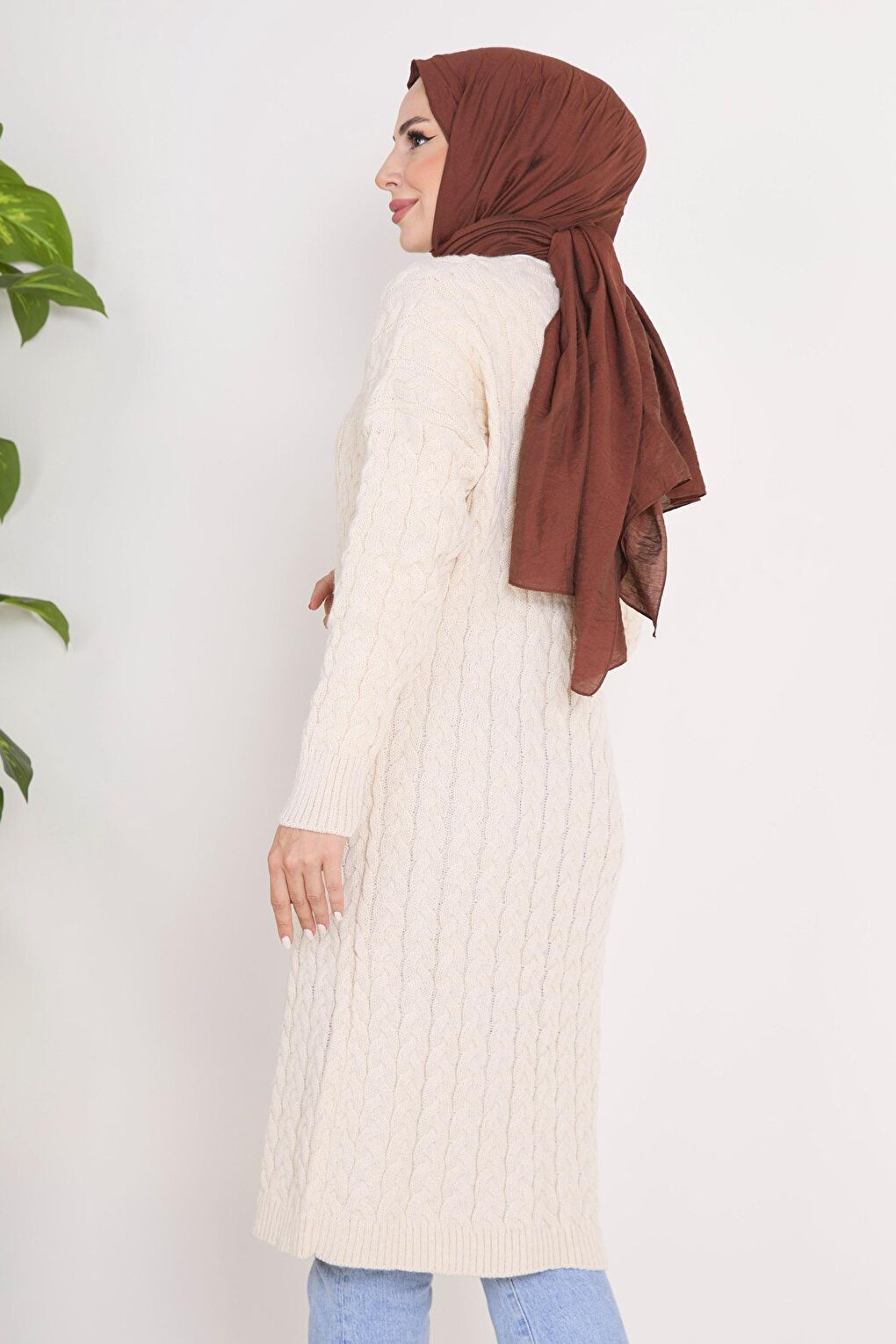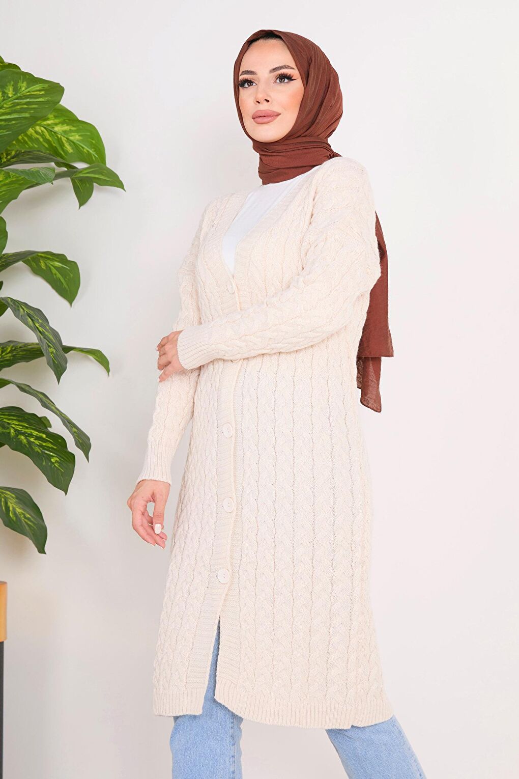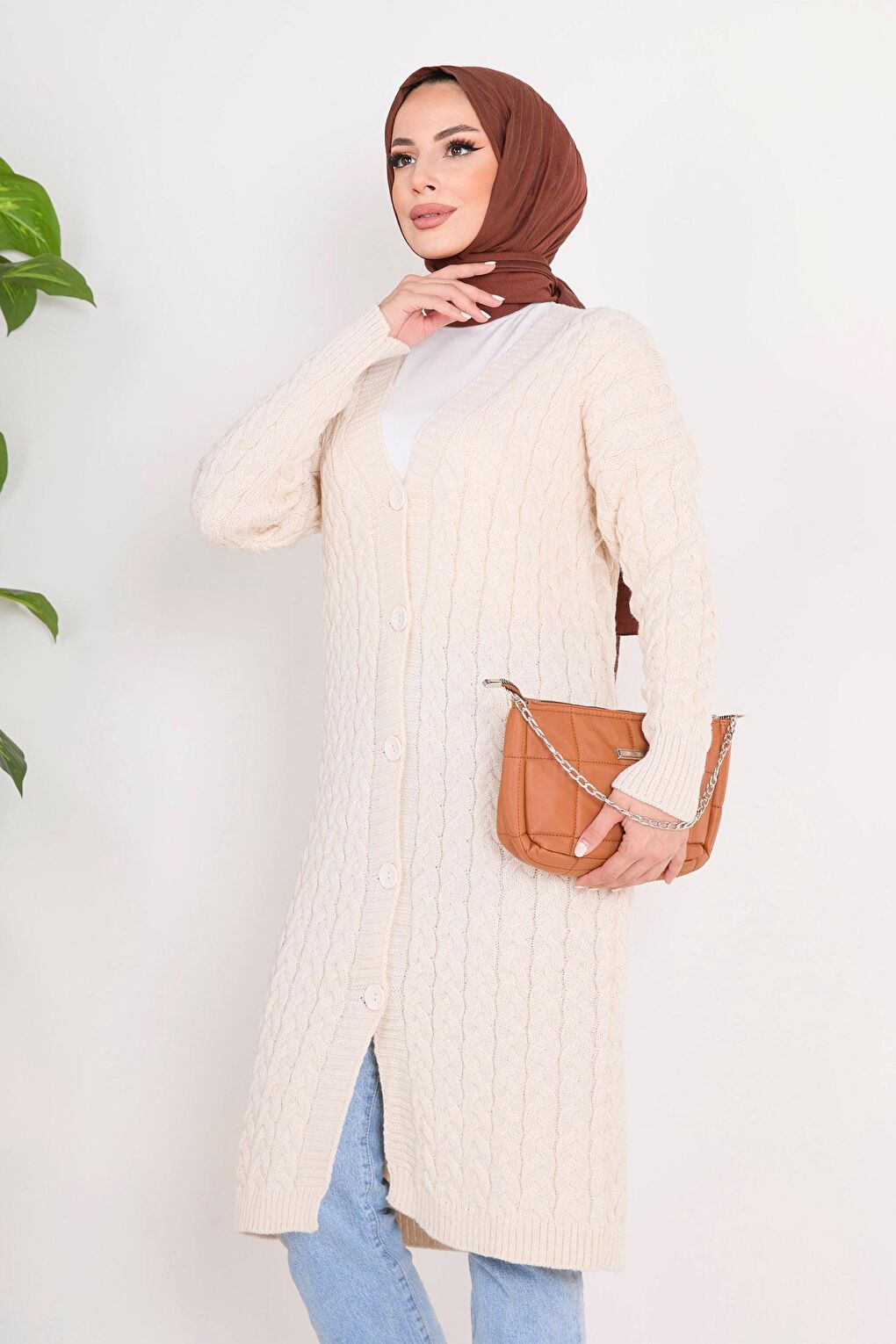 - نام : Düz Ceket Yaka Kadın Bej Triko Hırka - 23106