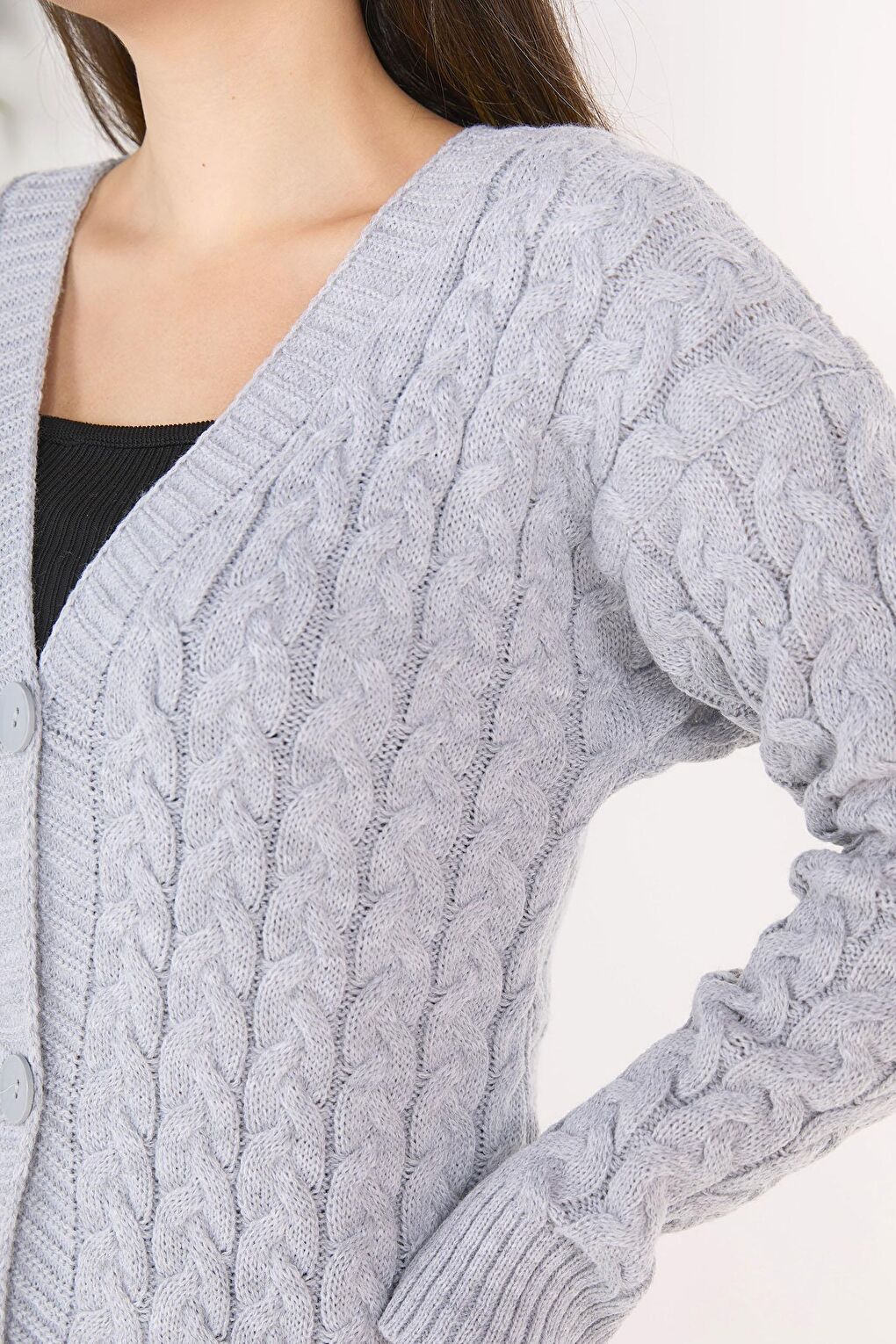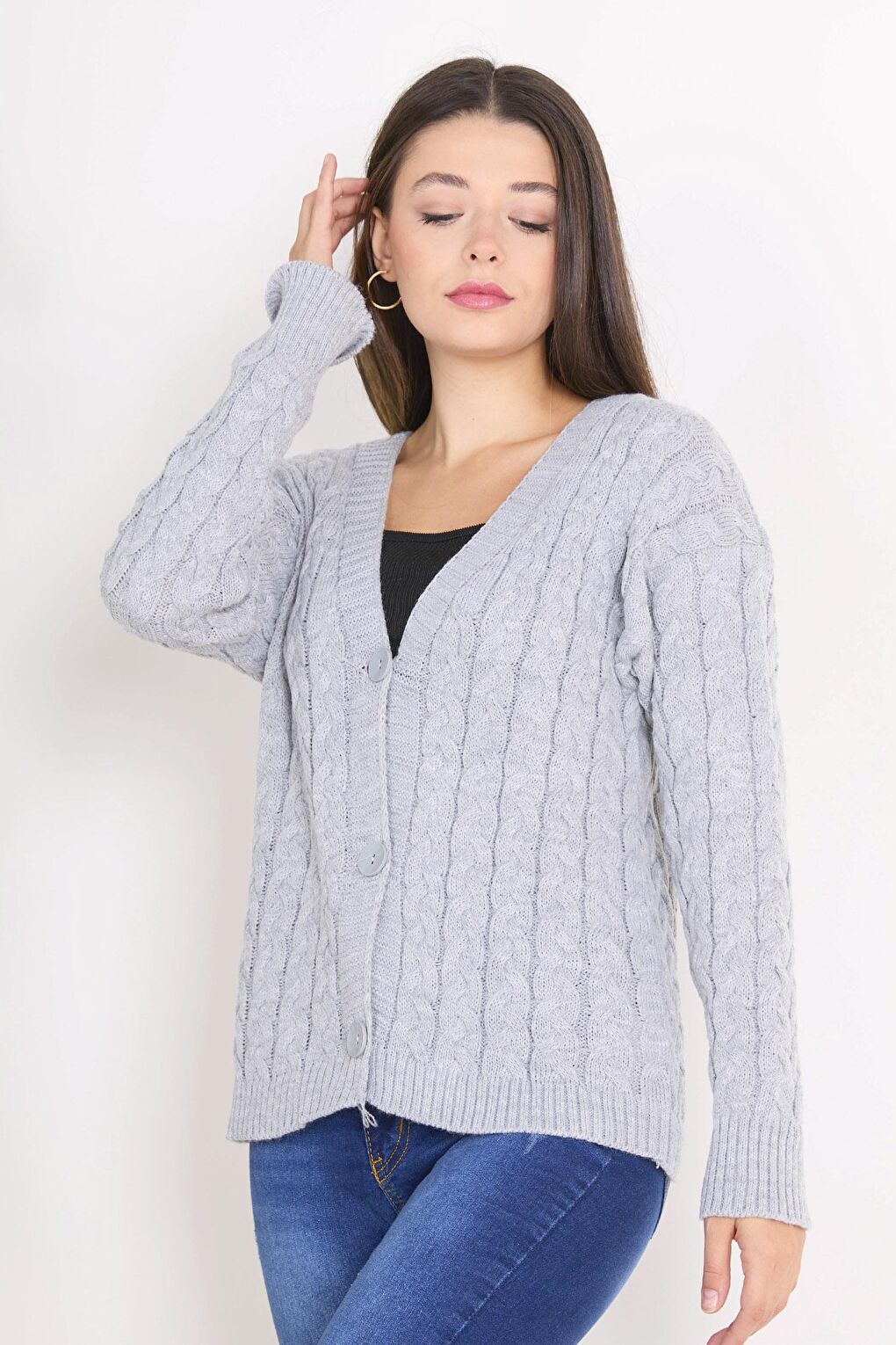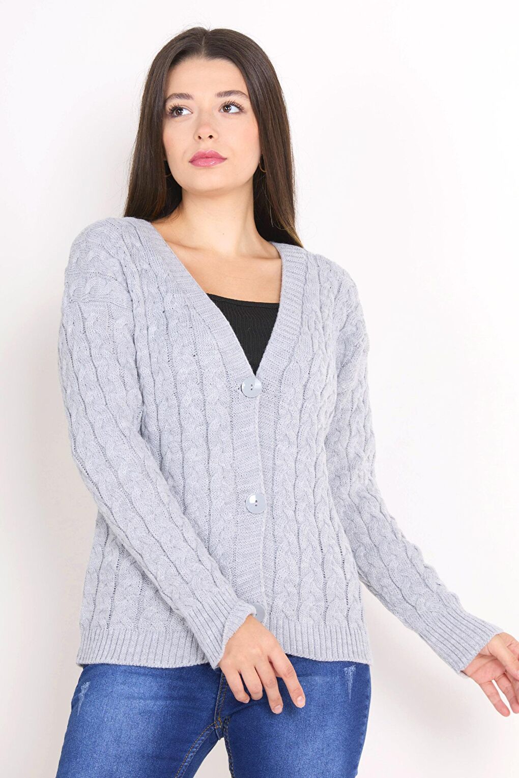- نام : Düz Ceket Yaka Kadın Gri Triko Hırka - 23091