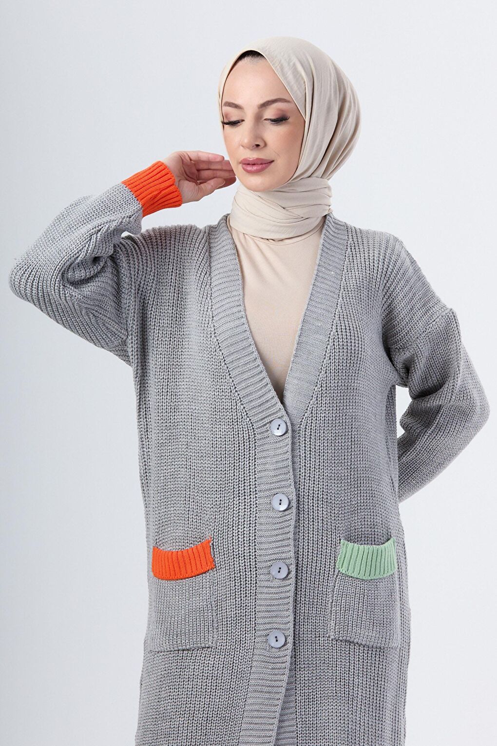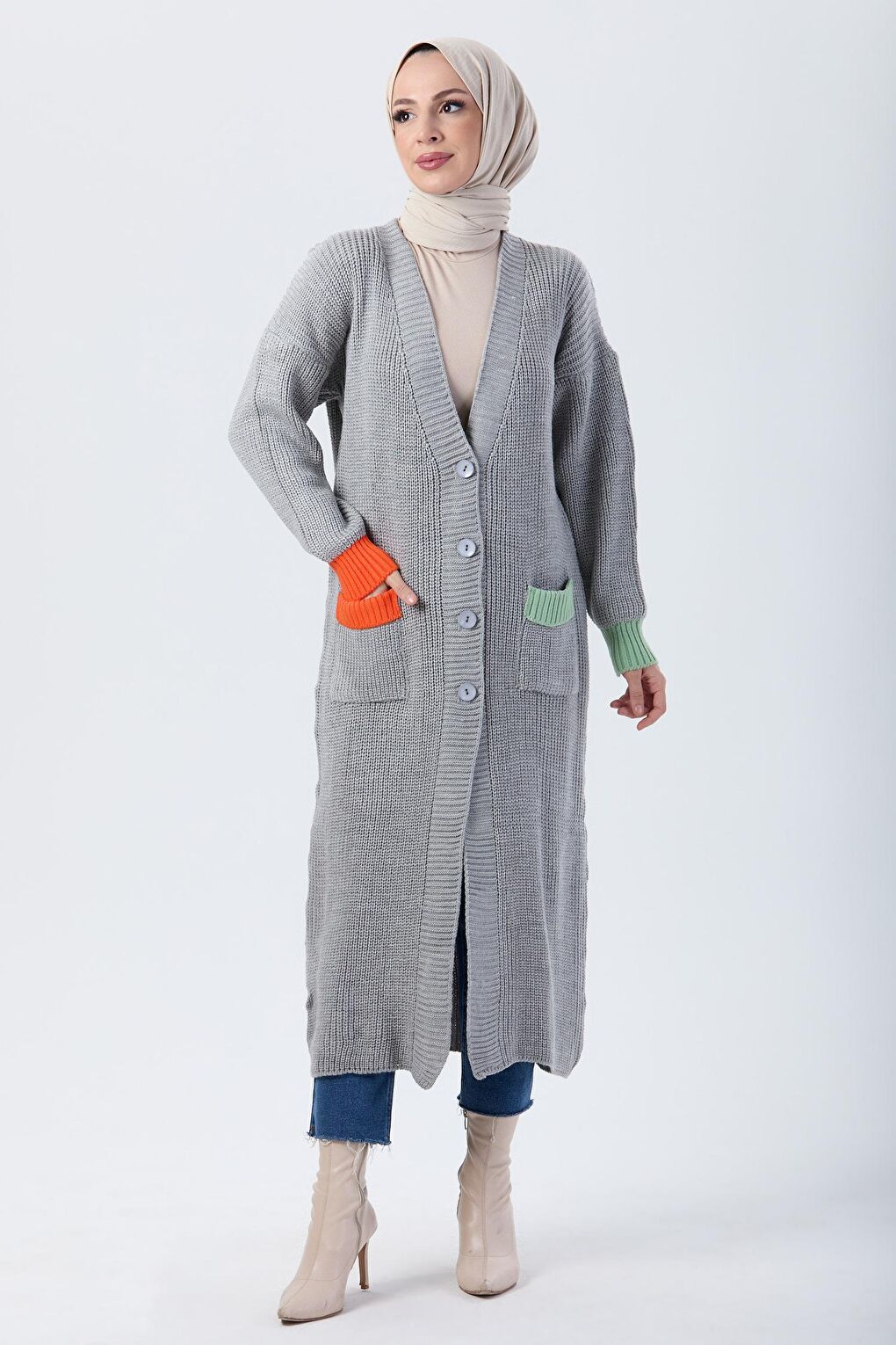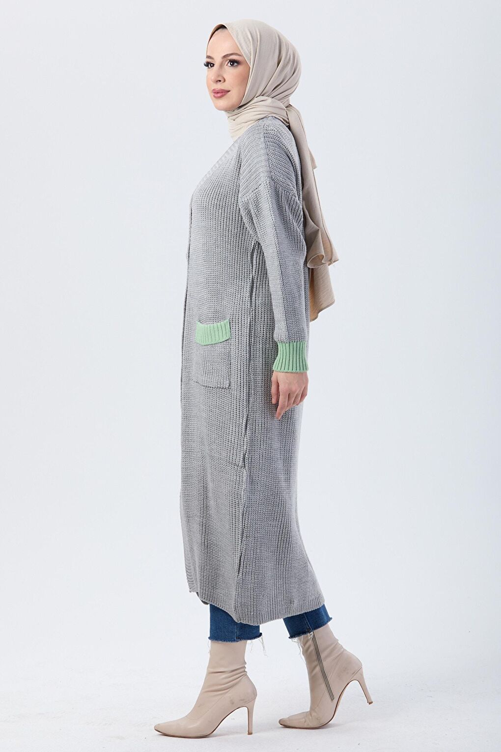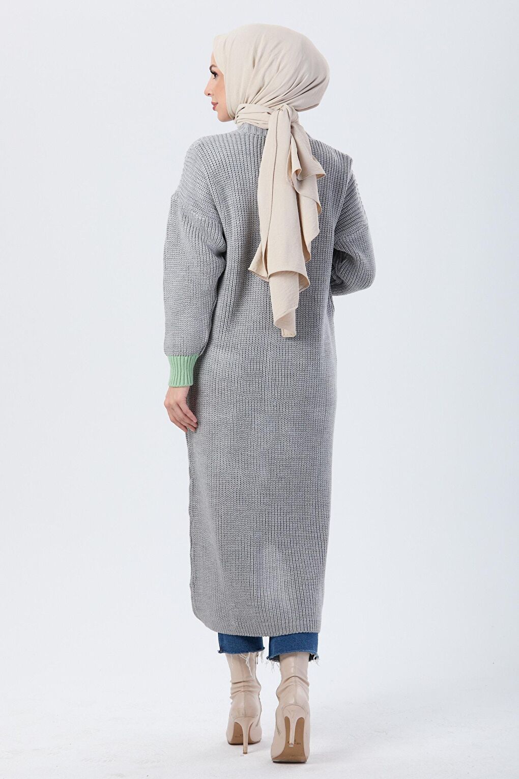 - نام : Düz Ceket Yaka Kadın Gri Triko Hırka - 24006