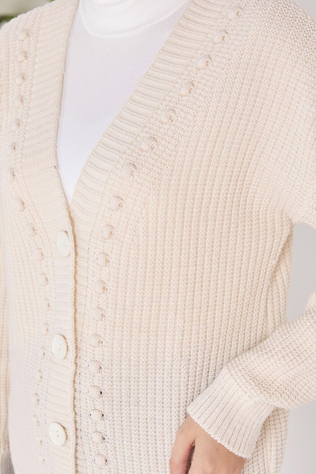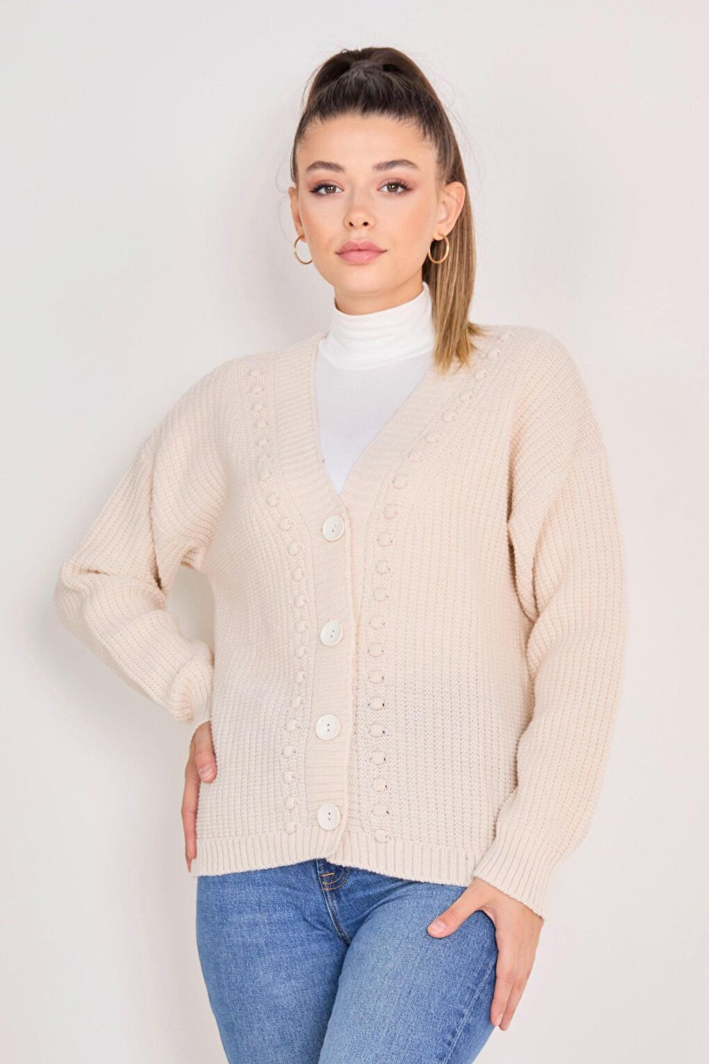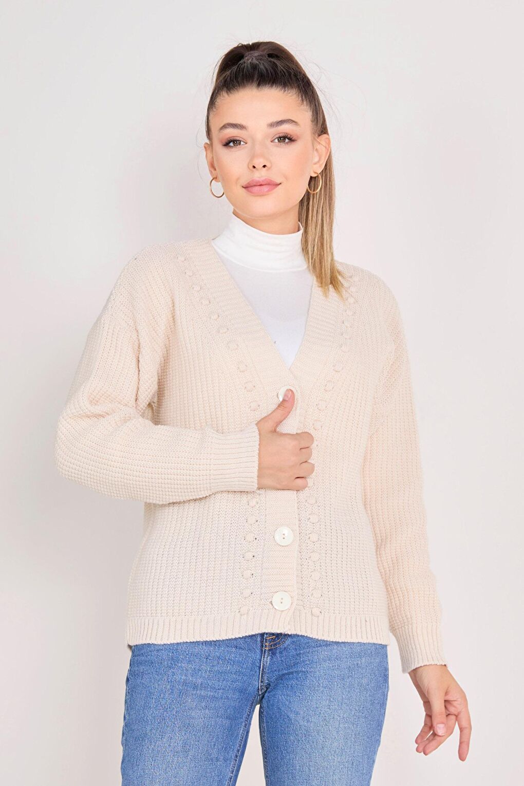 - نام : Düz Ceket Yaka Kadın Bej Triko Hırka - 23100