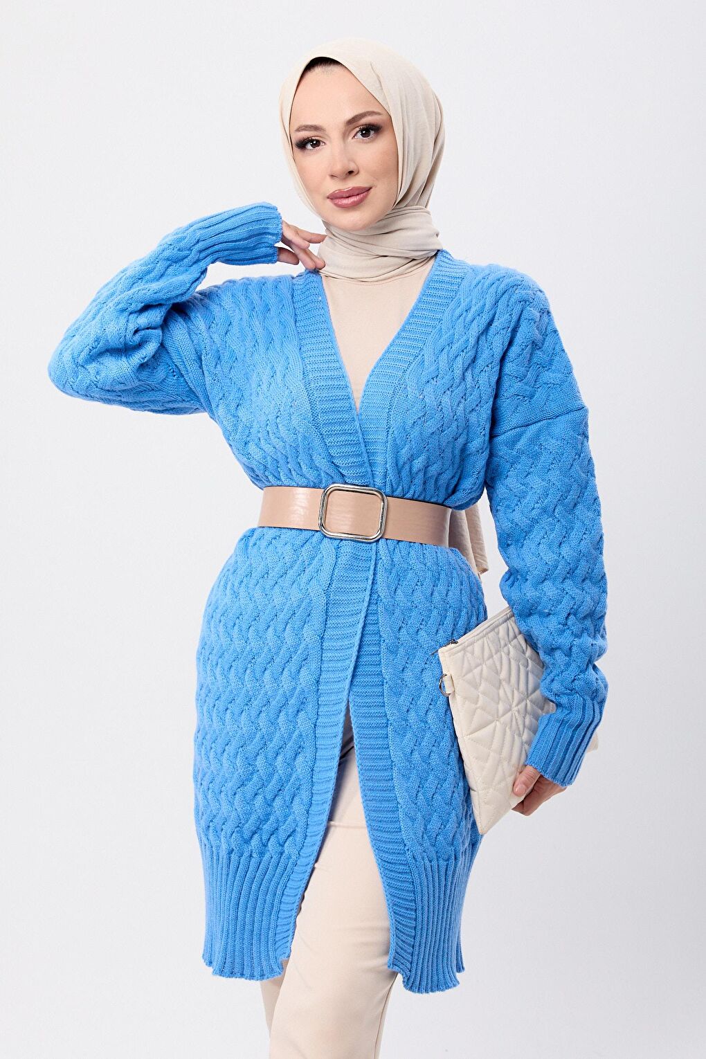 - نام : Düz Ceket Yaka Kadın Mavi Triko Hırka - 23104